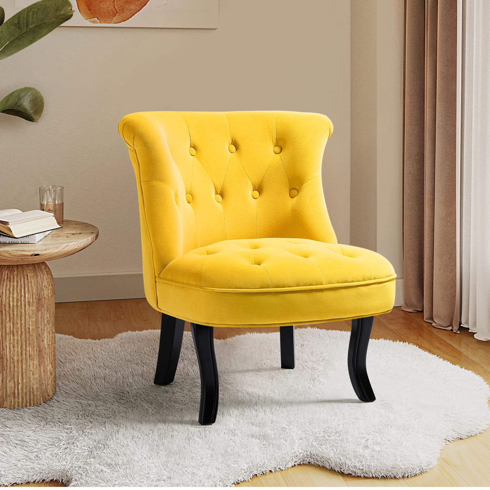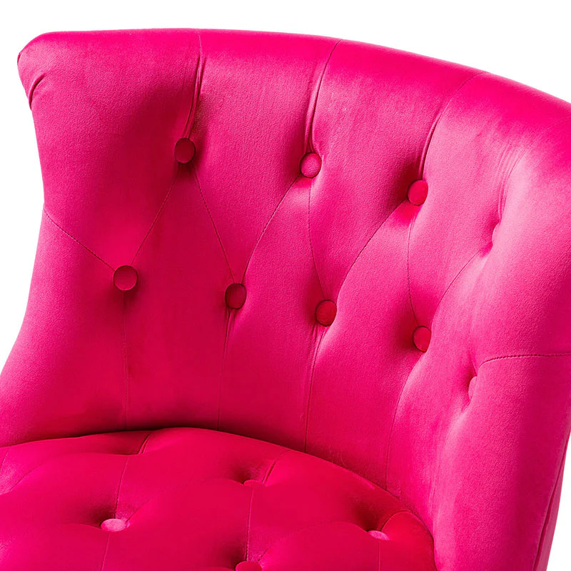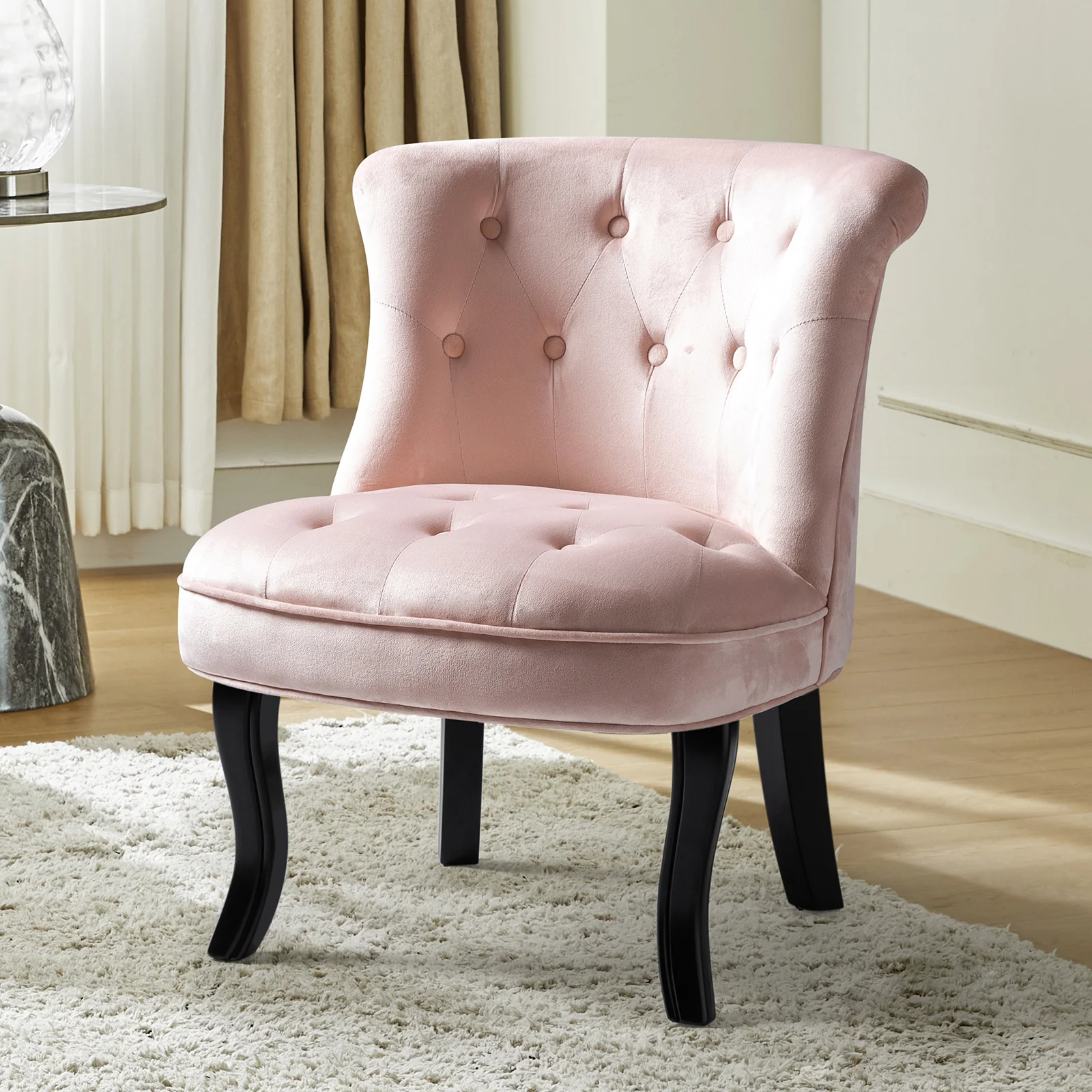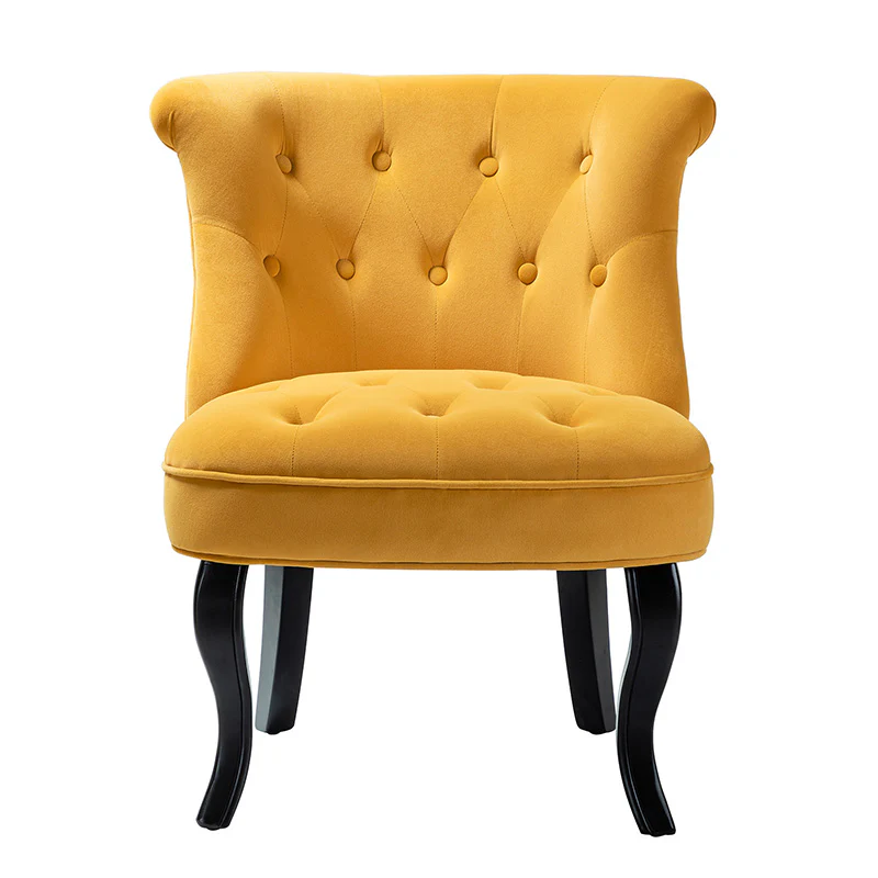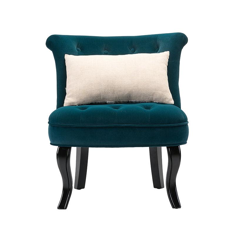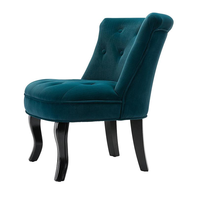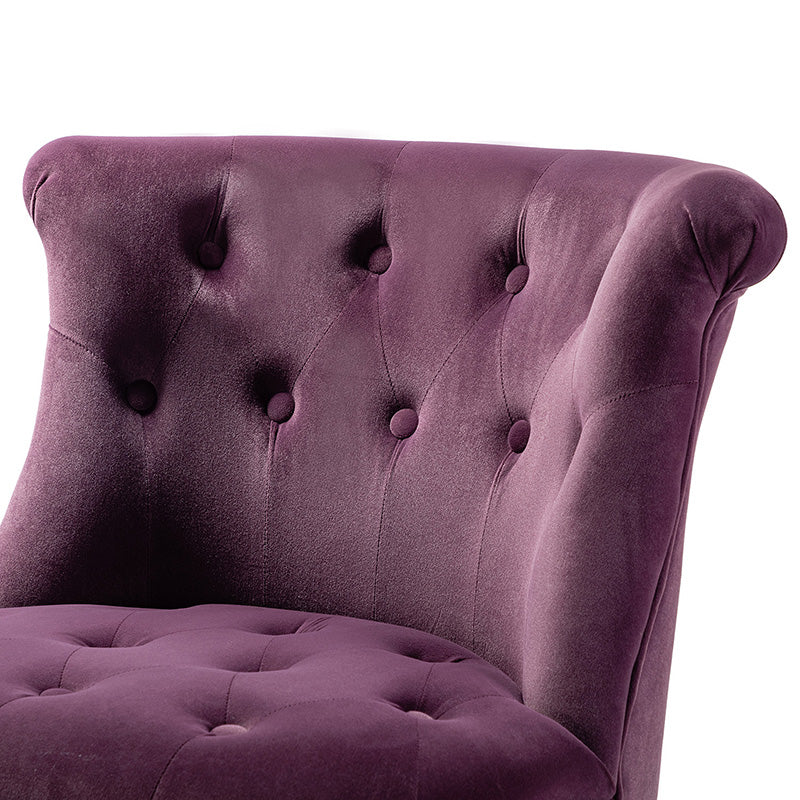 Add a pop of color with this side chair. Sitting atop briarwood legs, the velvet upholstered chair is functional and decorative. This small accent chair features a lovely tufted fabric on the seat and back, perfect for any design aesthetic. This chair can be placed in any room or office space.