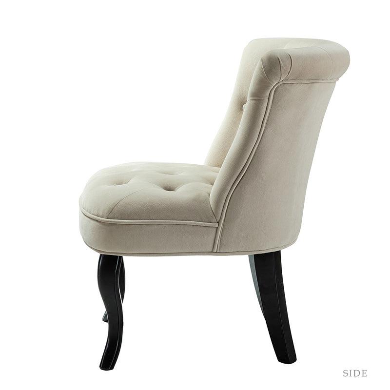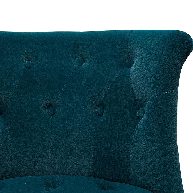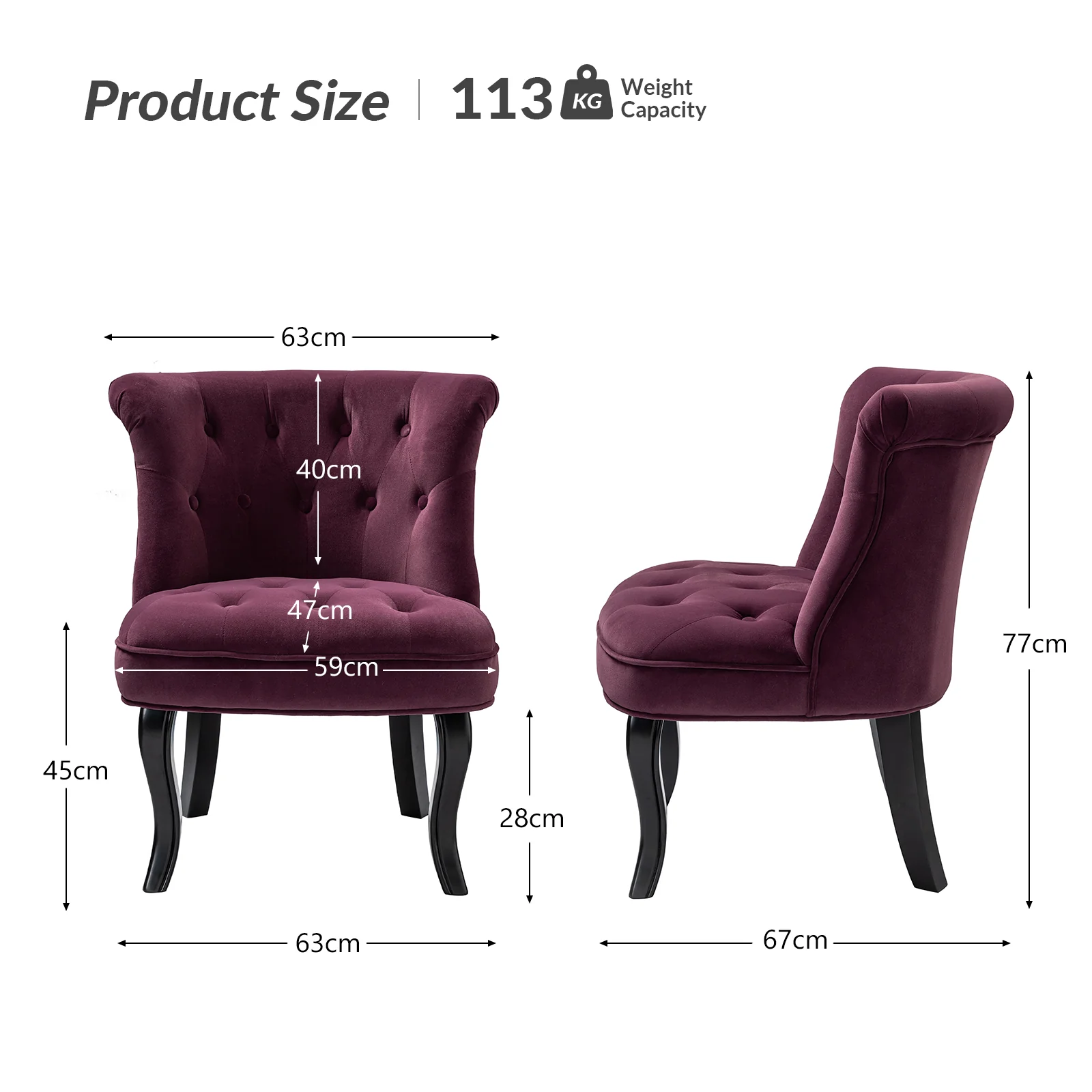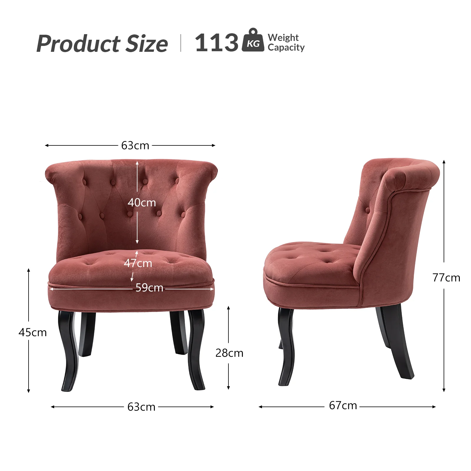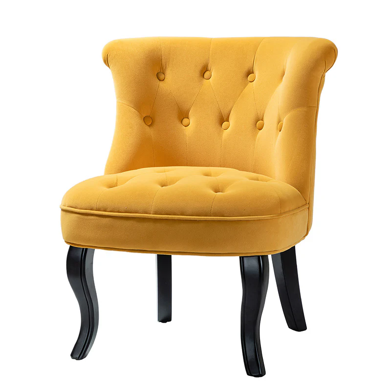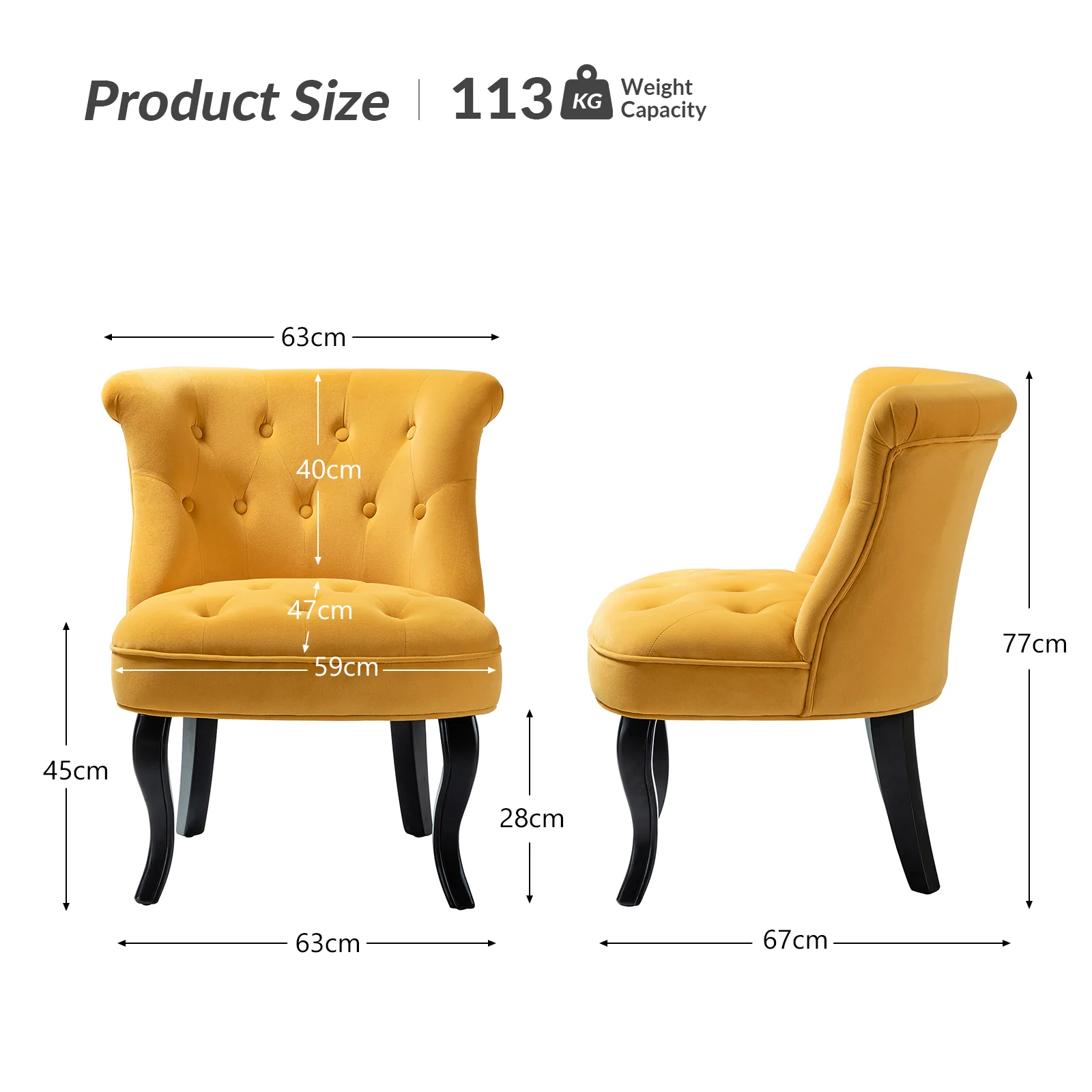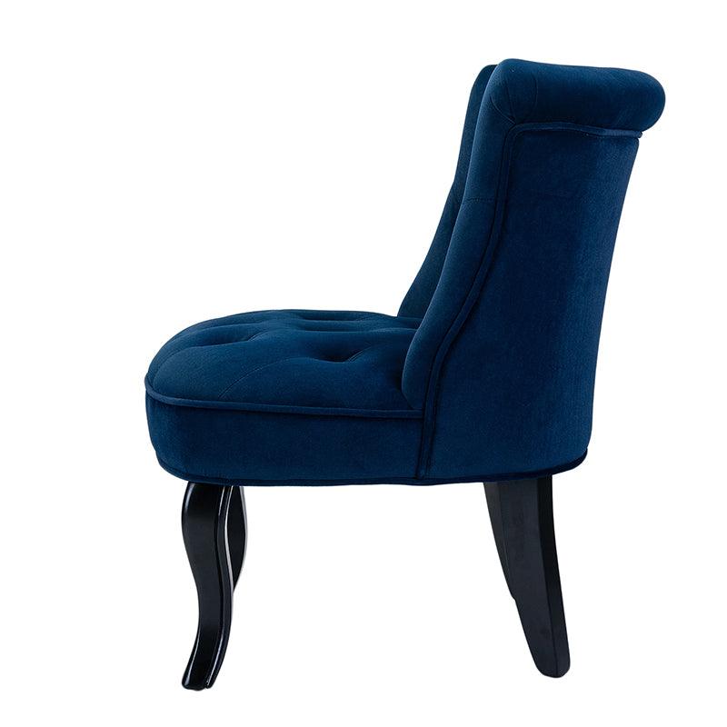 Add a pop of color with this side chair. Sitting atop briarwood legs, the velvet upholstered chair is functional and decorative. This small accent chair features a lovely tufted fabric on the seat and back, perfect for any design aesthetic. This chair can be placed in any room or office space.