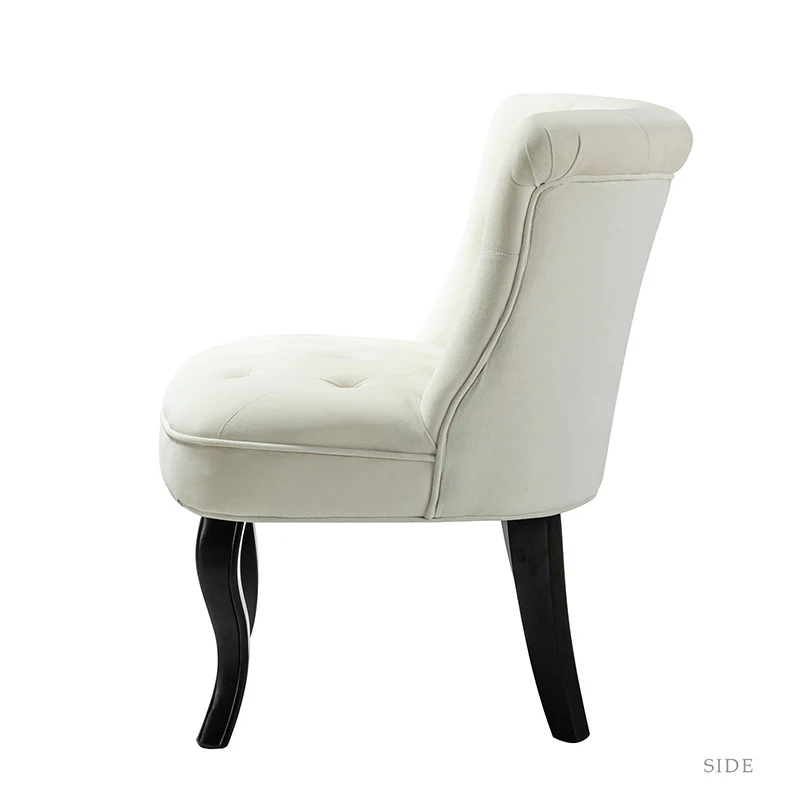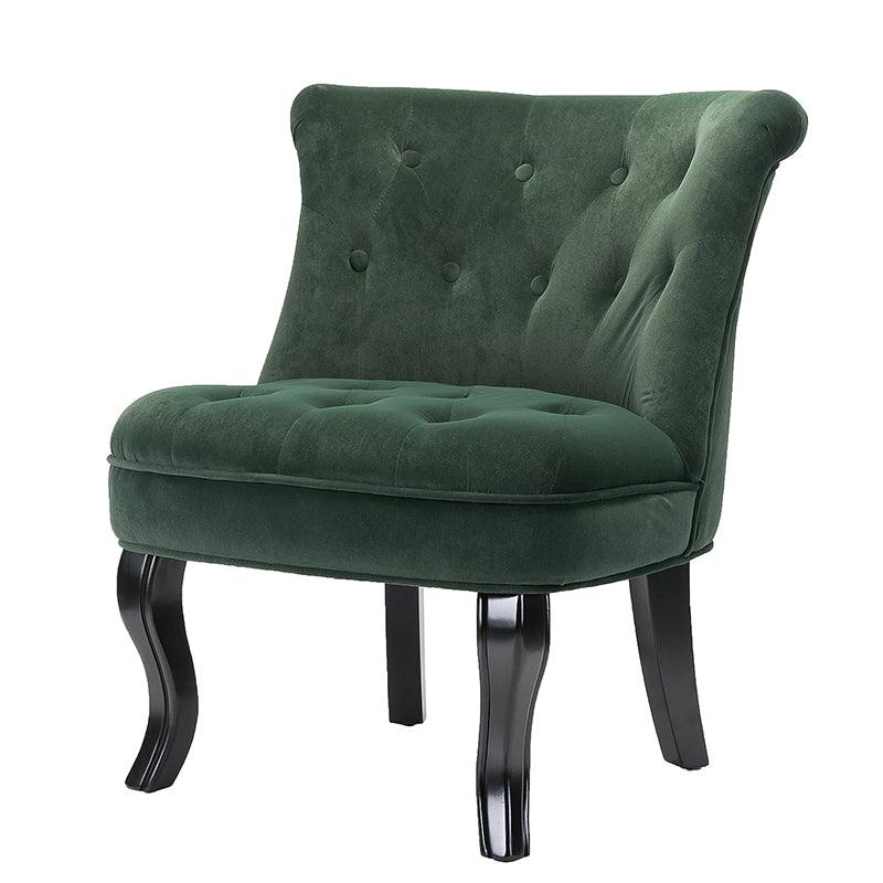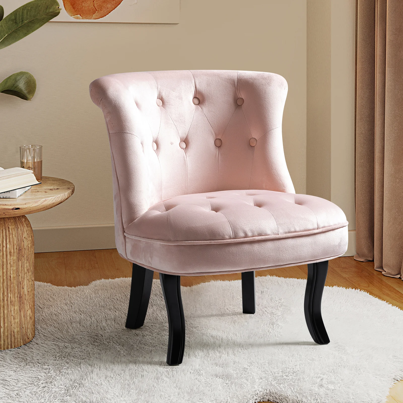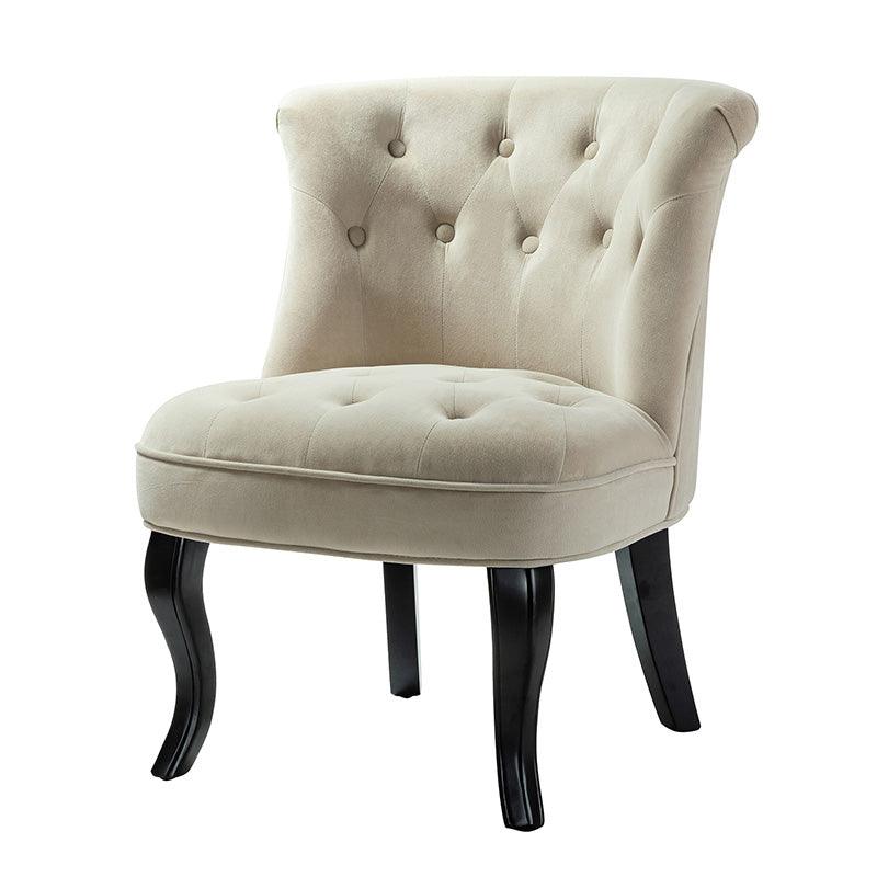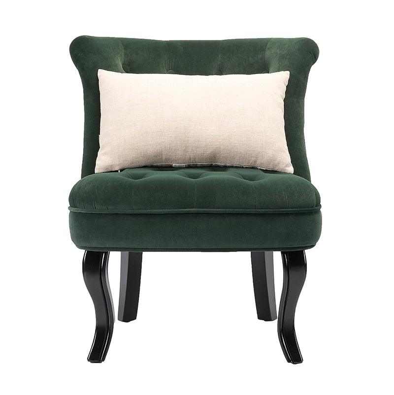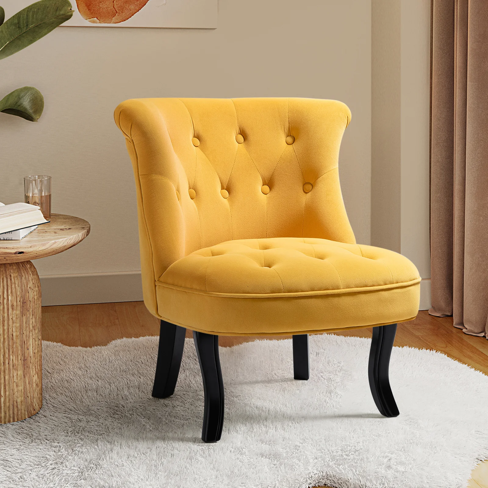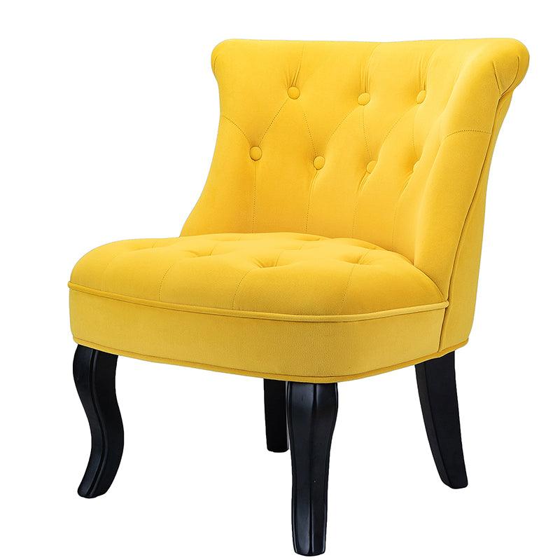 Add a pop of color with this side chair. Sitting atop briarwood legs, the velvet upholstered chair is functional and decorative. This small accent chair features a lovely tufted fabric on the seat and back, perfect for any design aesthetic. This chair can be placed in any room or office space.