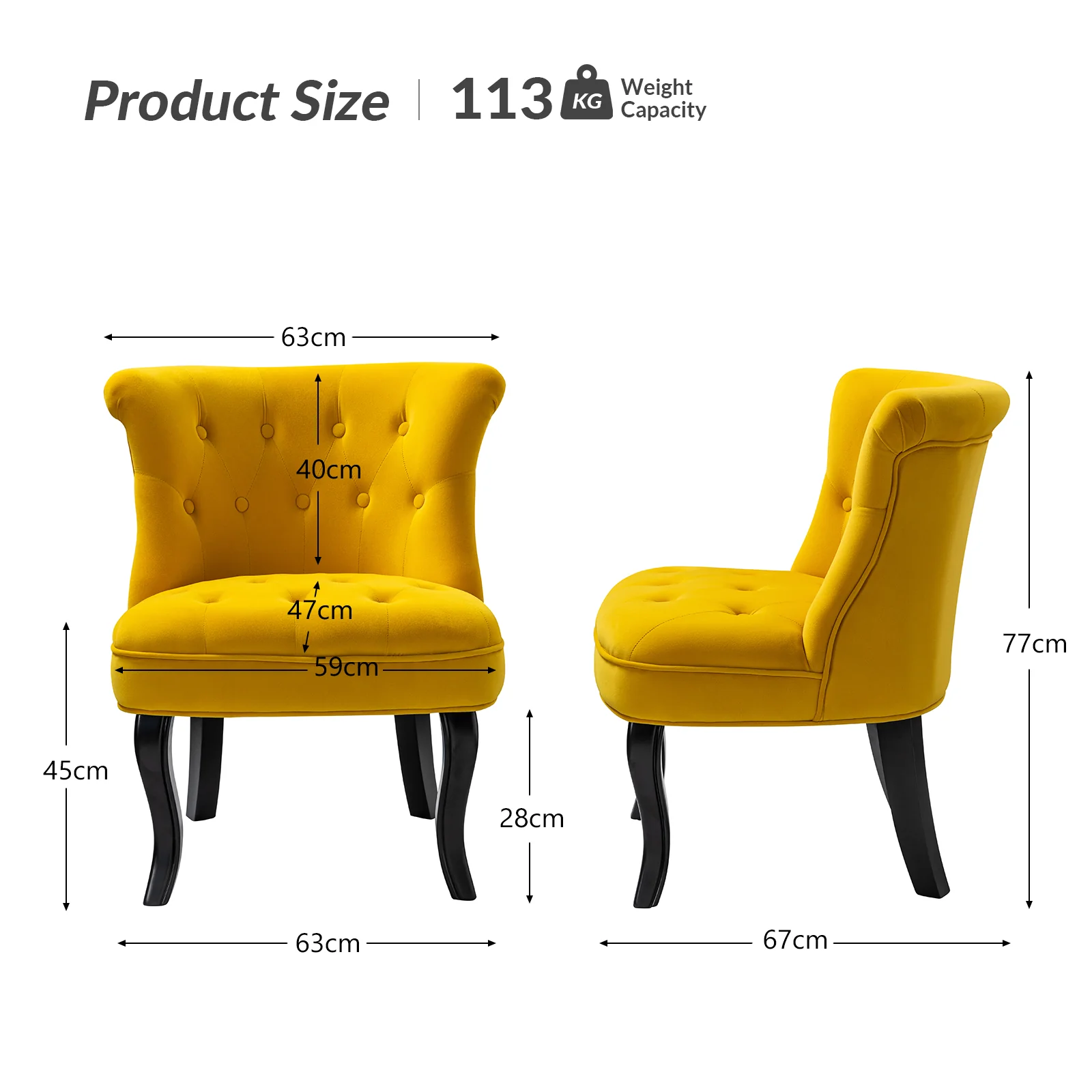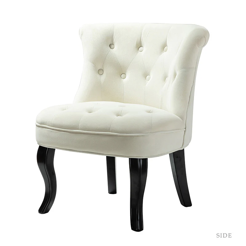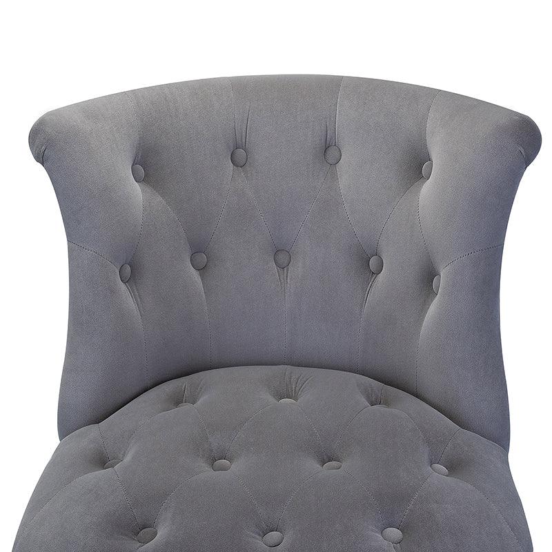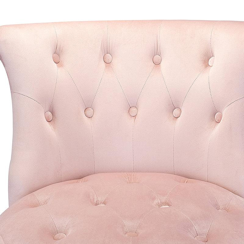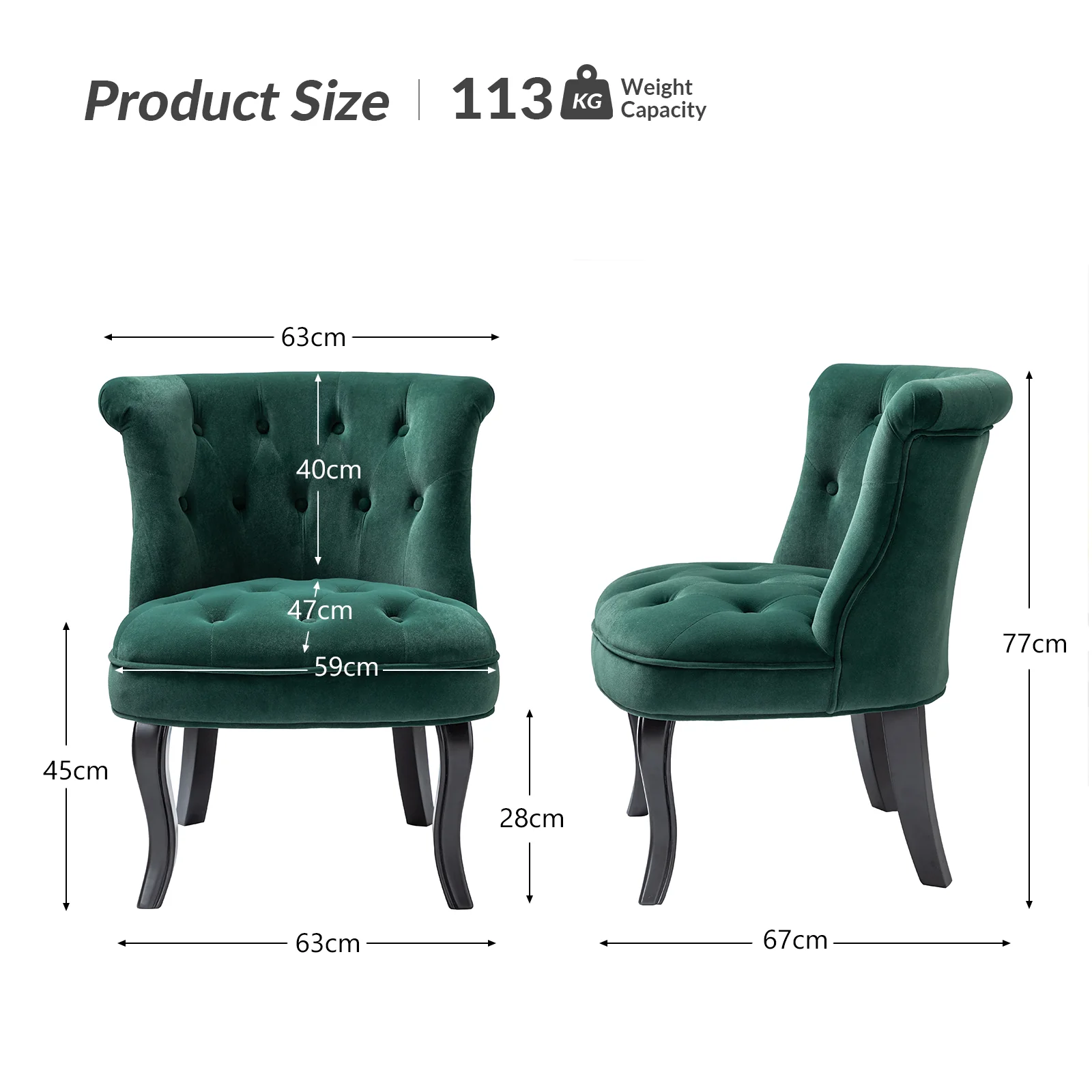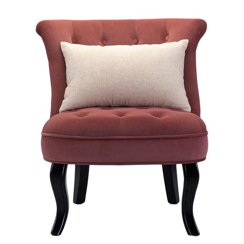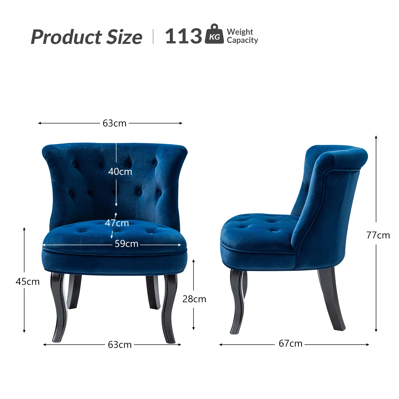 Add a pop of color with this side chair. Sitting atop briarwood legs, the velvet upholstered chair is functional and decorative. This small accent chair features a lovely tufted fabric on the seat and back, perfect for any design aesthetic. This chair can be placed in any room or office space.
