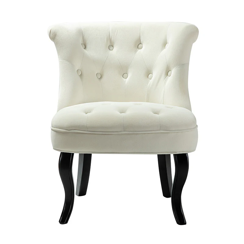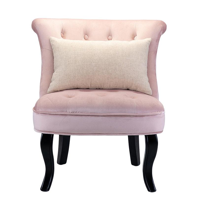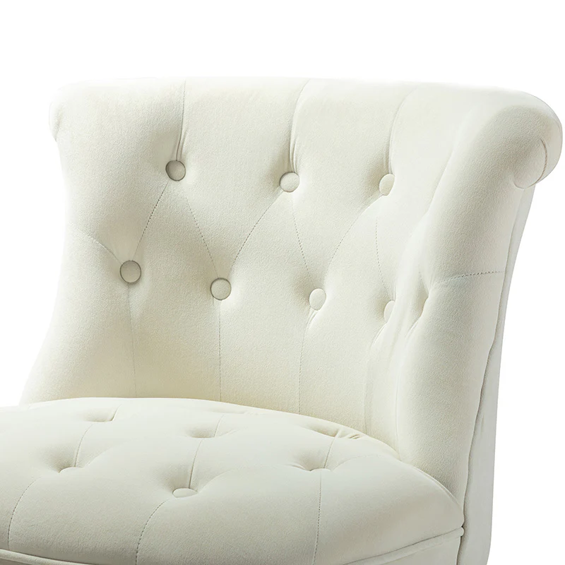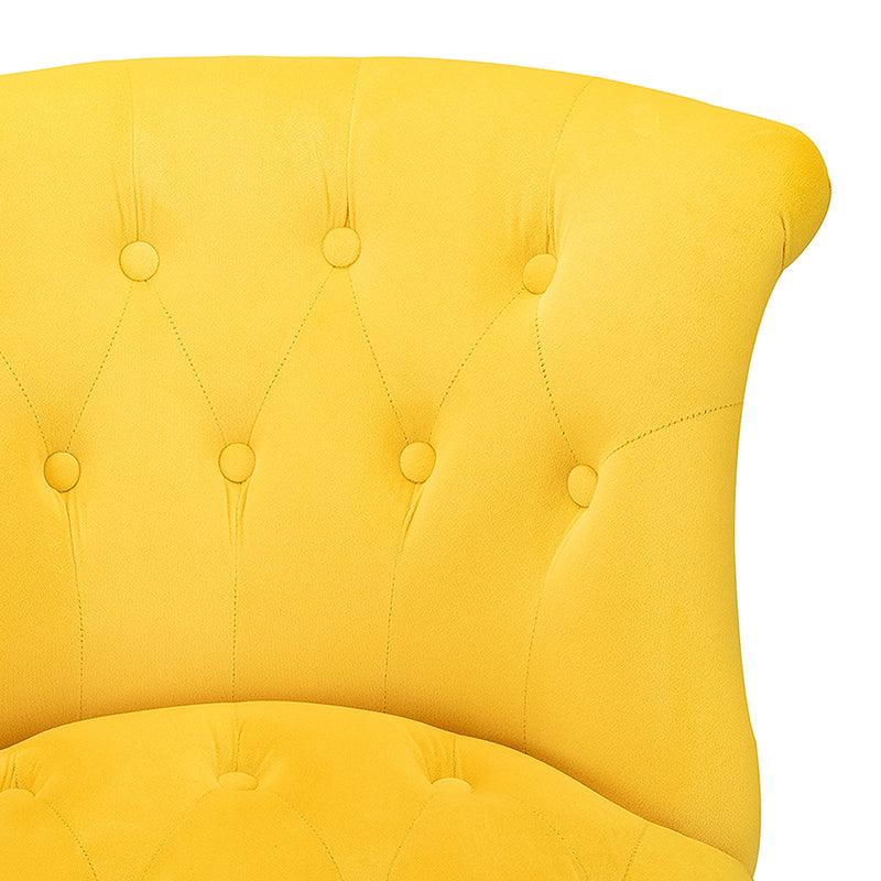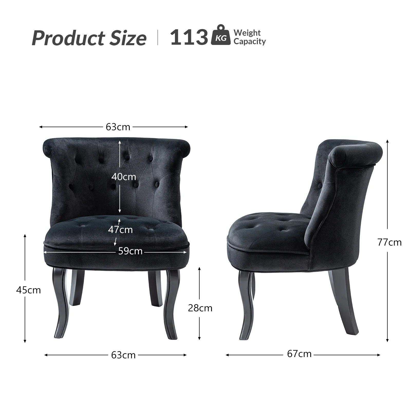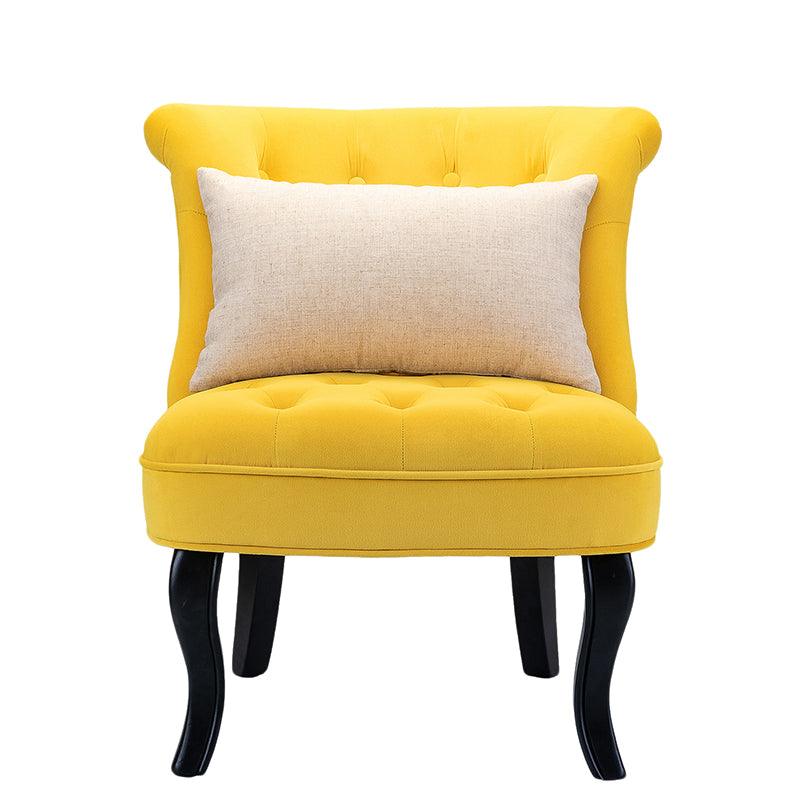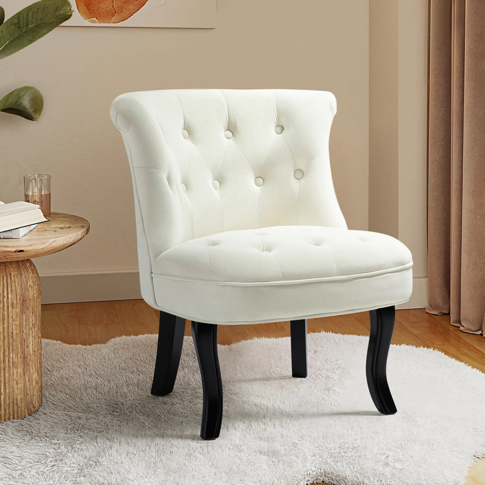 Add a pop of color with this side chair. Sitting atop briarwood legs, the velvet upholstered chair is functional and decorative. This small accent chair features a lovely tufted fabric on the seat and back, perfect for any design aesthetic. This chair can be placed in any room or office space.