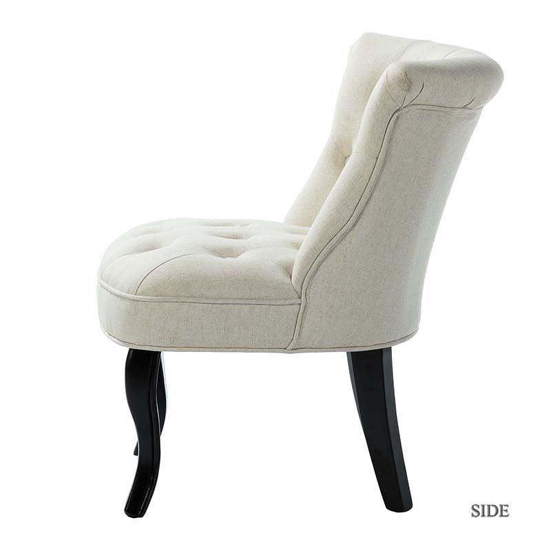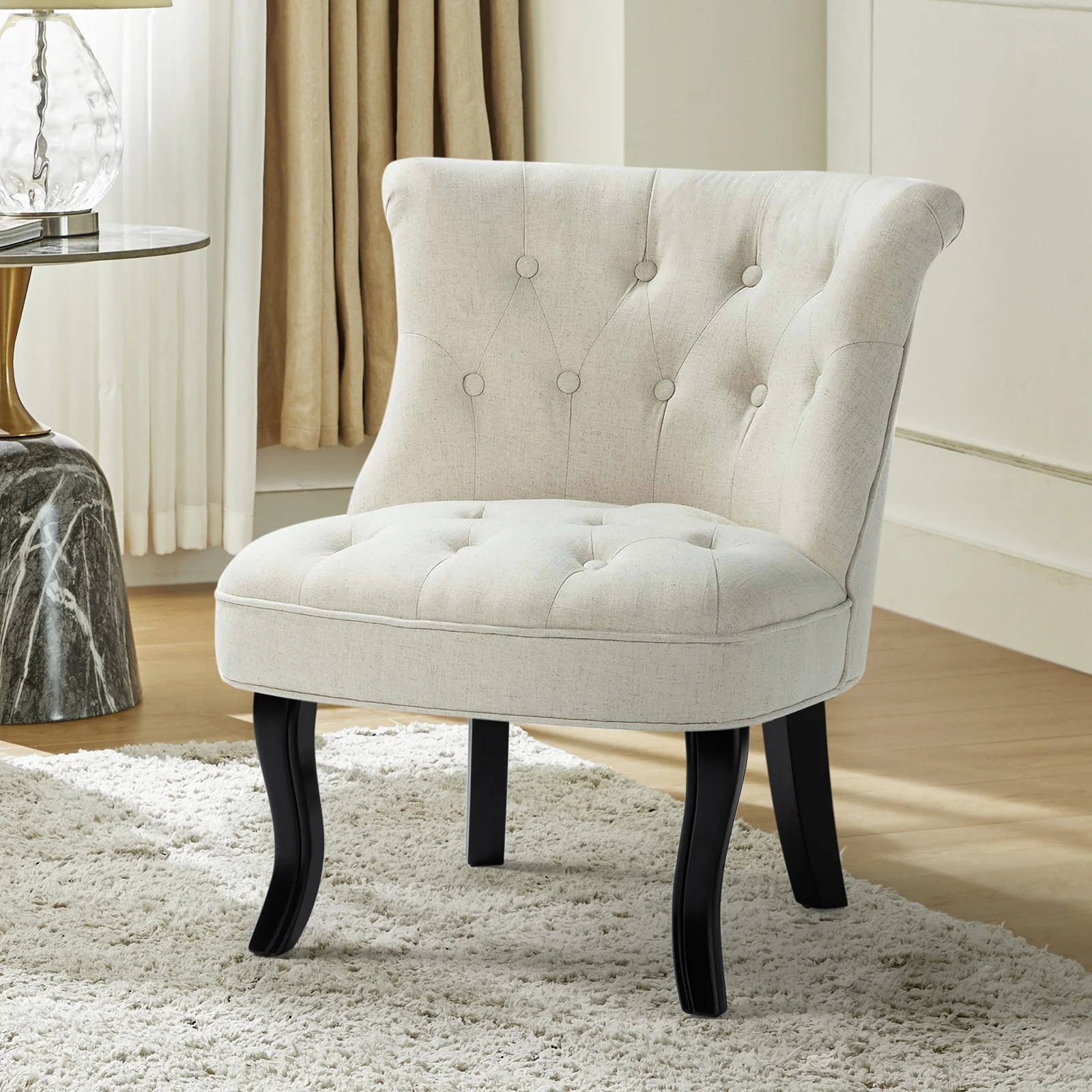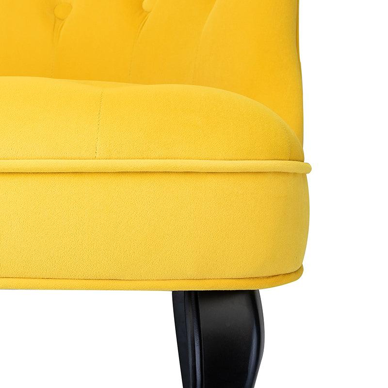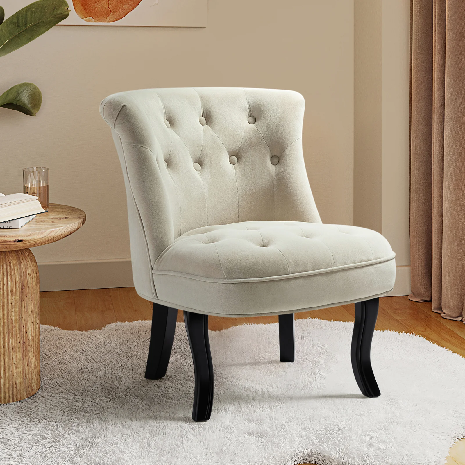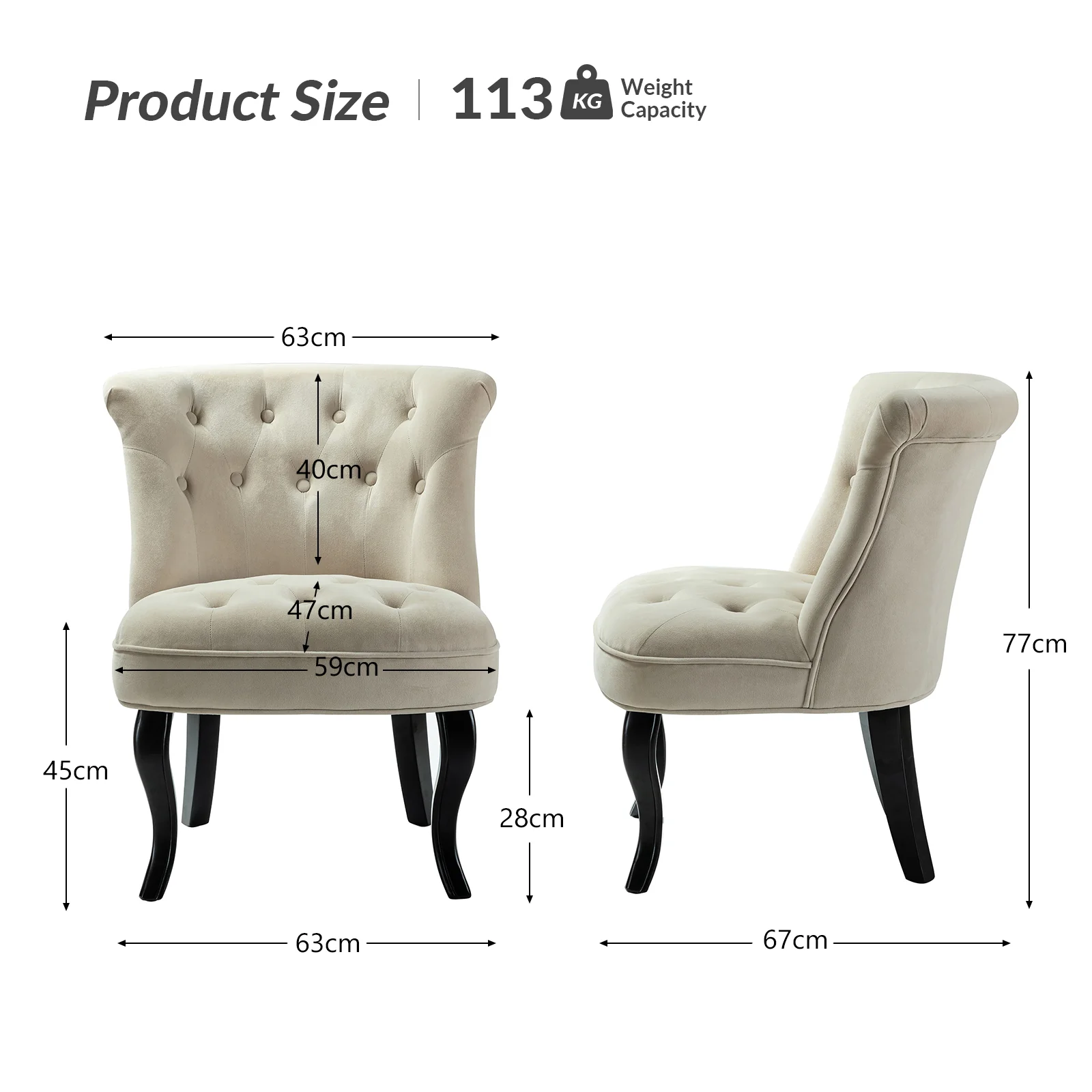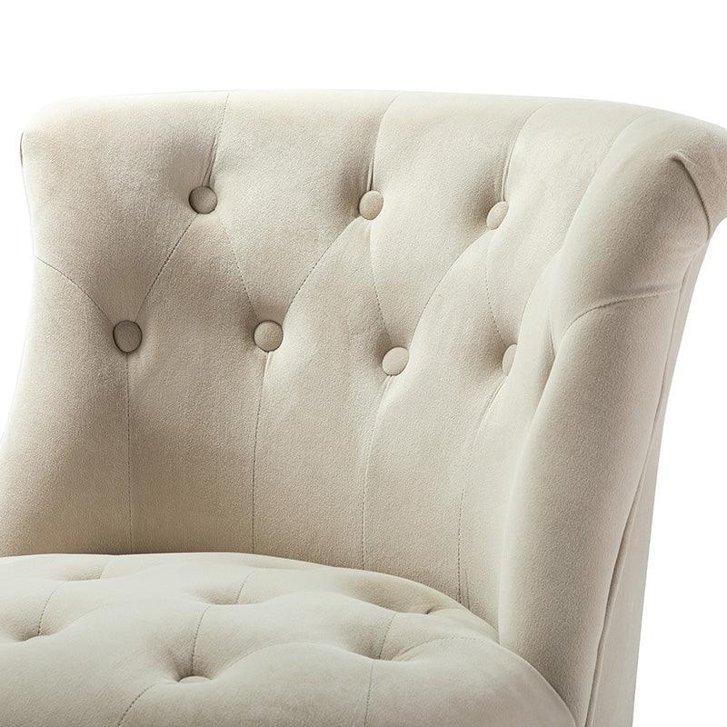 Add a pop of color with this side chair. Sitting atop briarwood legs, the velvet upholstered chair is functional and decorative. This small accent chair features a lovely tufted fabric on the seat and back, perfect for any design aesthetic. This chair can be placed in any room or office space.