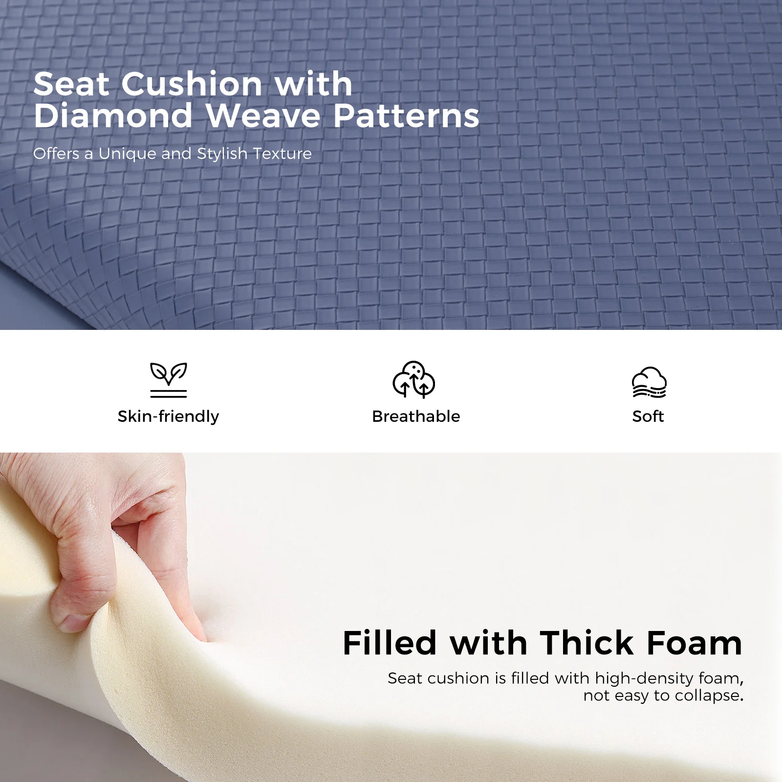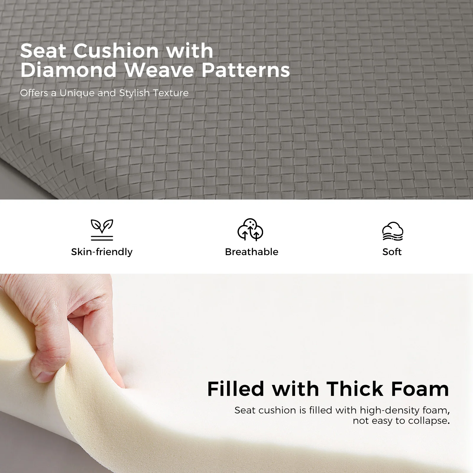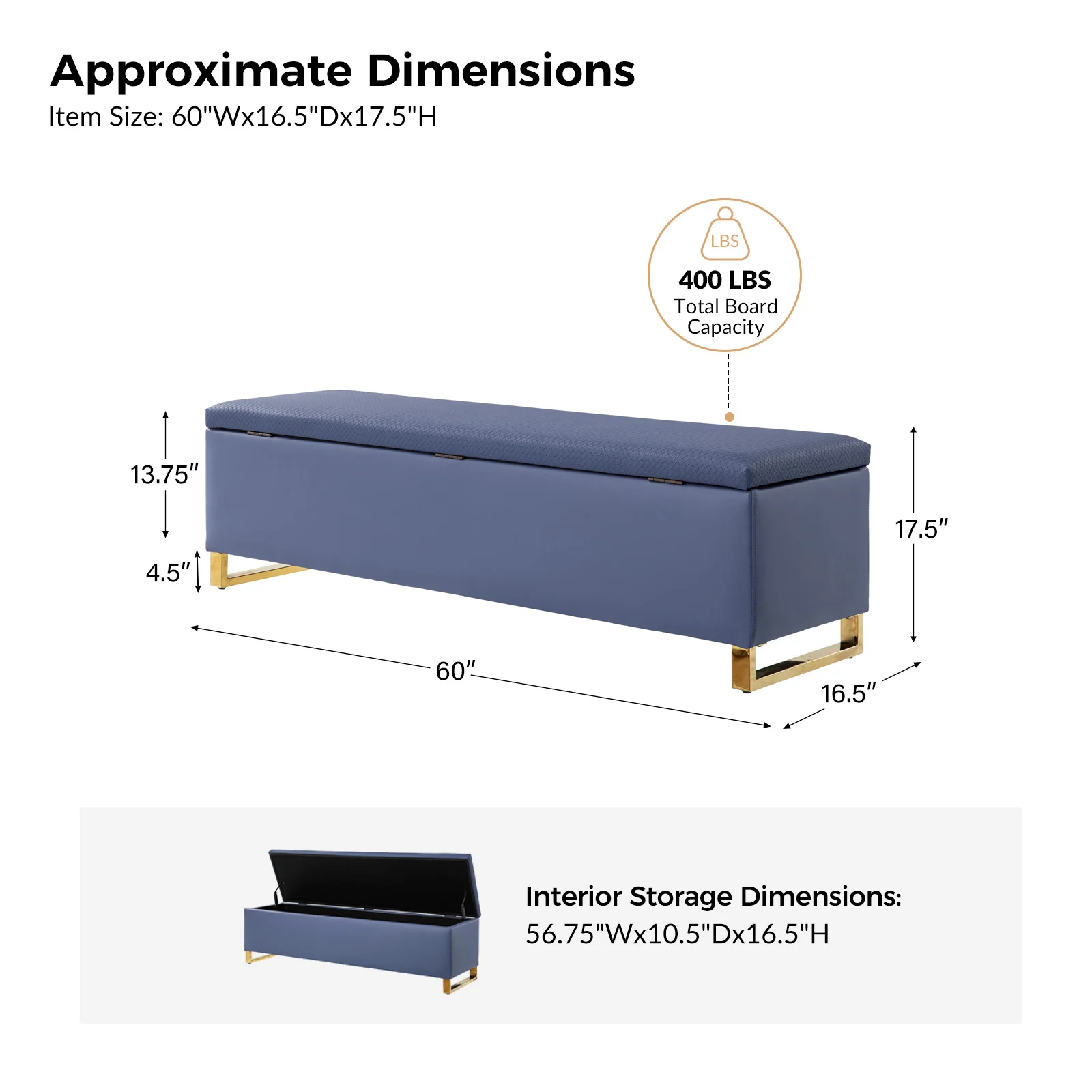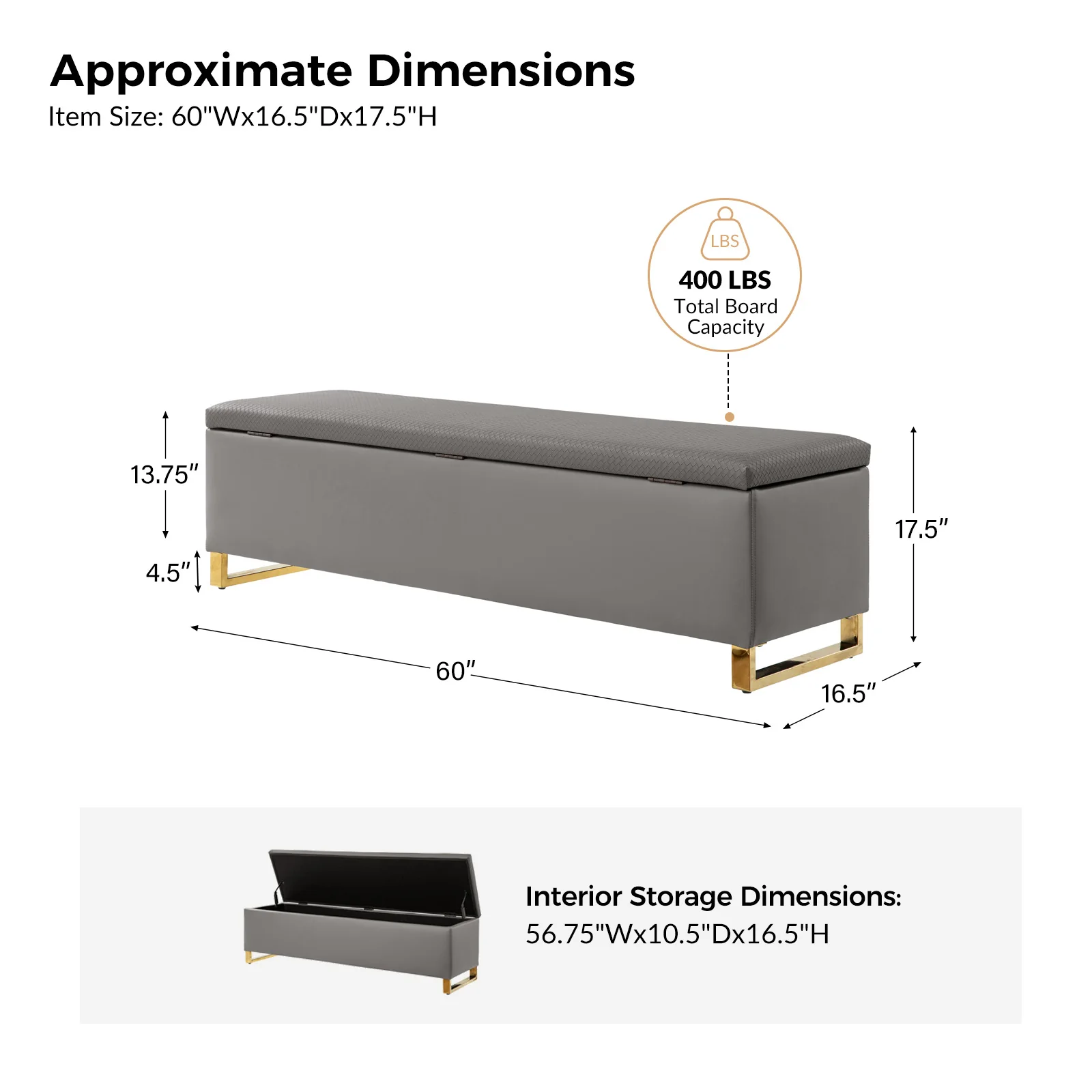 This elegant storage bench combines functionality with style, making it an addition to your room. The bench features a spacious compartment beneath the seat, suitable for storing blankets, pillows, or other household items, helping you keep your space tidy and organized. Included are two small ottomans, conveniently tucked away when not in use, and are perfect for additional seating or as footrests. The bench stands on sturdy stainless steel electroplated legs, adding a touch of modern sophistication and ensuring durability. The seat cushion is crafted with a diamond weave pattern, offering a unique and stylish texture. Its rectangular shape provides ample seating space, while the comfortable padding ensures a pleasant sitting experience. Whether placed in a living room, bedroom, or hallway, this storage bench enhances the decor and adds practical storage and seating solutions to your living space.