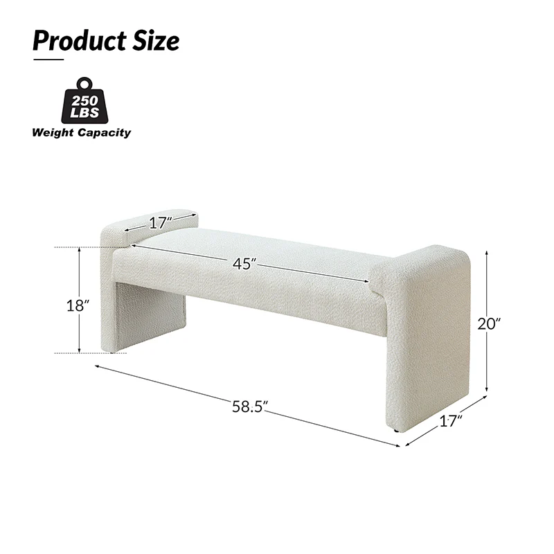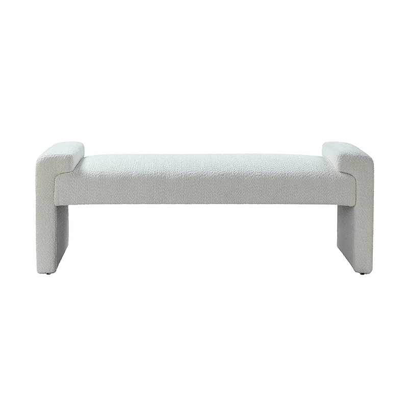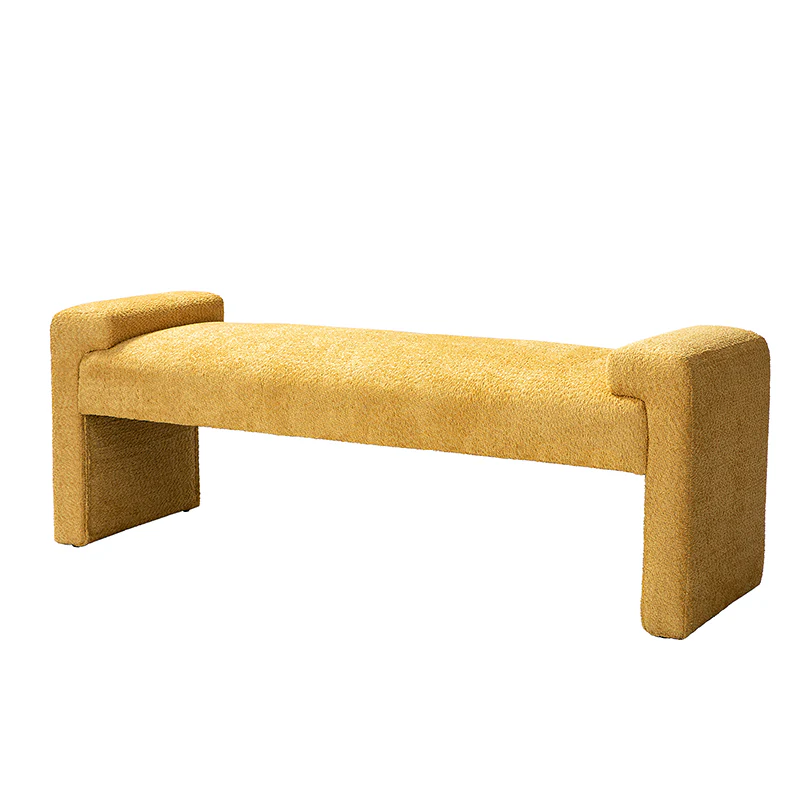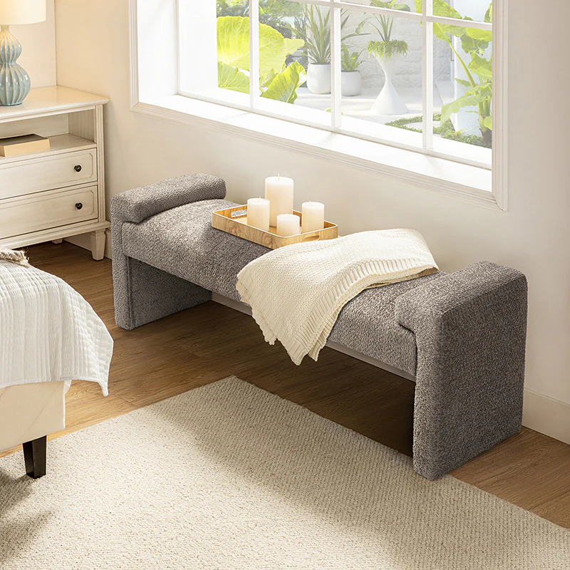 Place this Bauhaus Bench wherever you need an additional seat and a modern element added to your living room, bedroom, or entryway. Entirely wrapped in textured polyester fabric, it has an outrigger design. Full of plush padding, this bench accommodates up to 250 lbs. With the spacious bearing surface and arm tray, can be used to place books, toys and other sundries. It is worth noting that there are foot pads under the legs of the footstool, which will not scratch the ground and have a protective effect on the ground. Whether nestled against the end of the bed in the master suite or acting as a spare seat in the entryway, this modern bench is your best choice.