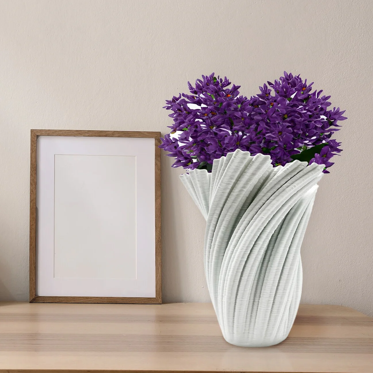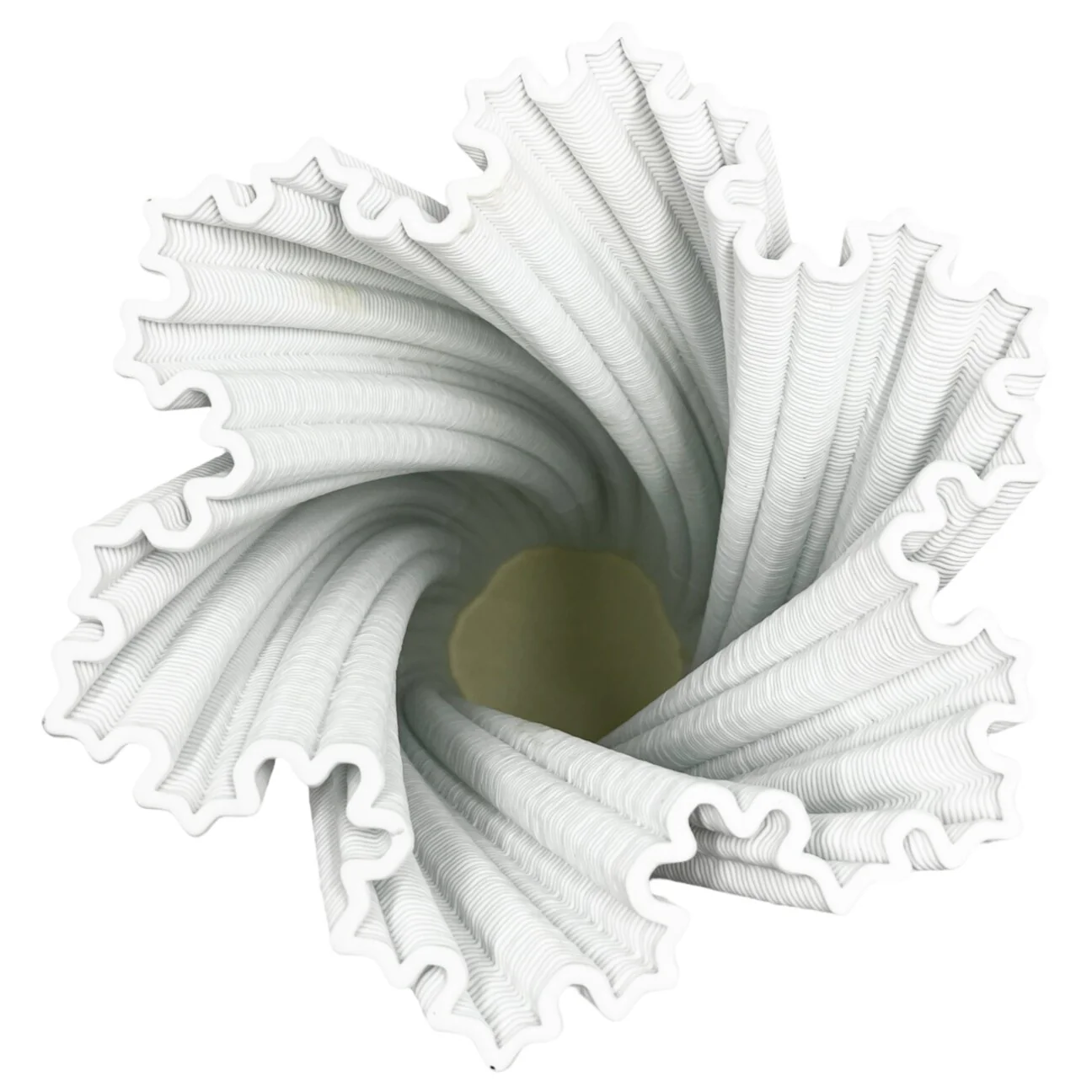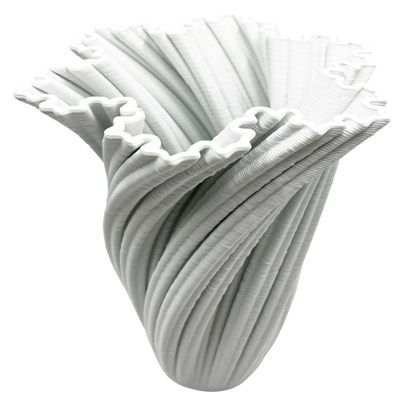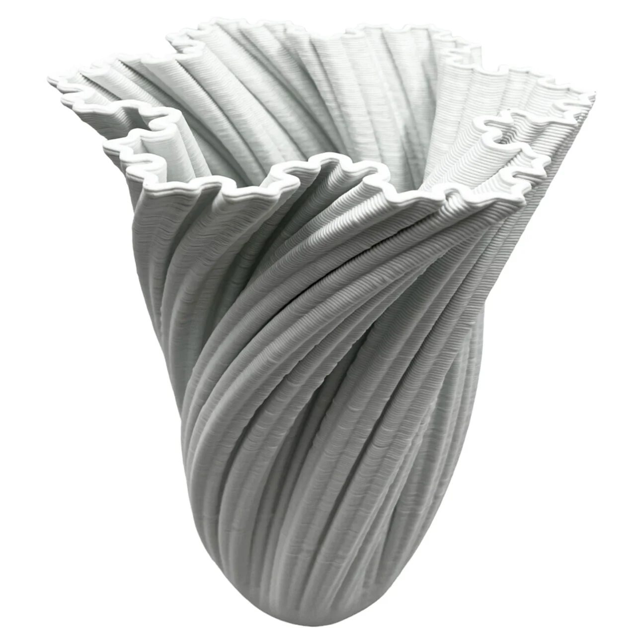 * Captivating White Ceramic Vase with a mesmerizing twisted design crafted using advanced 3D printing technology.