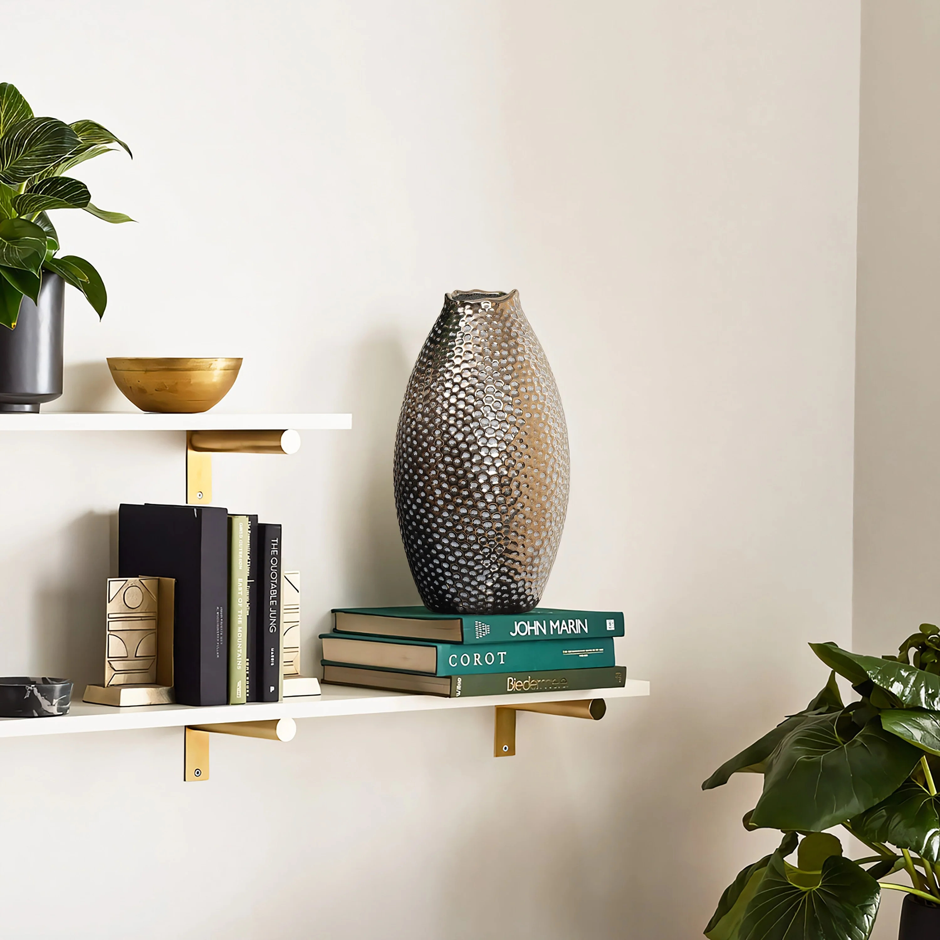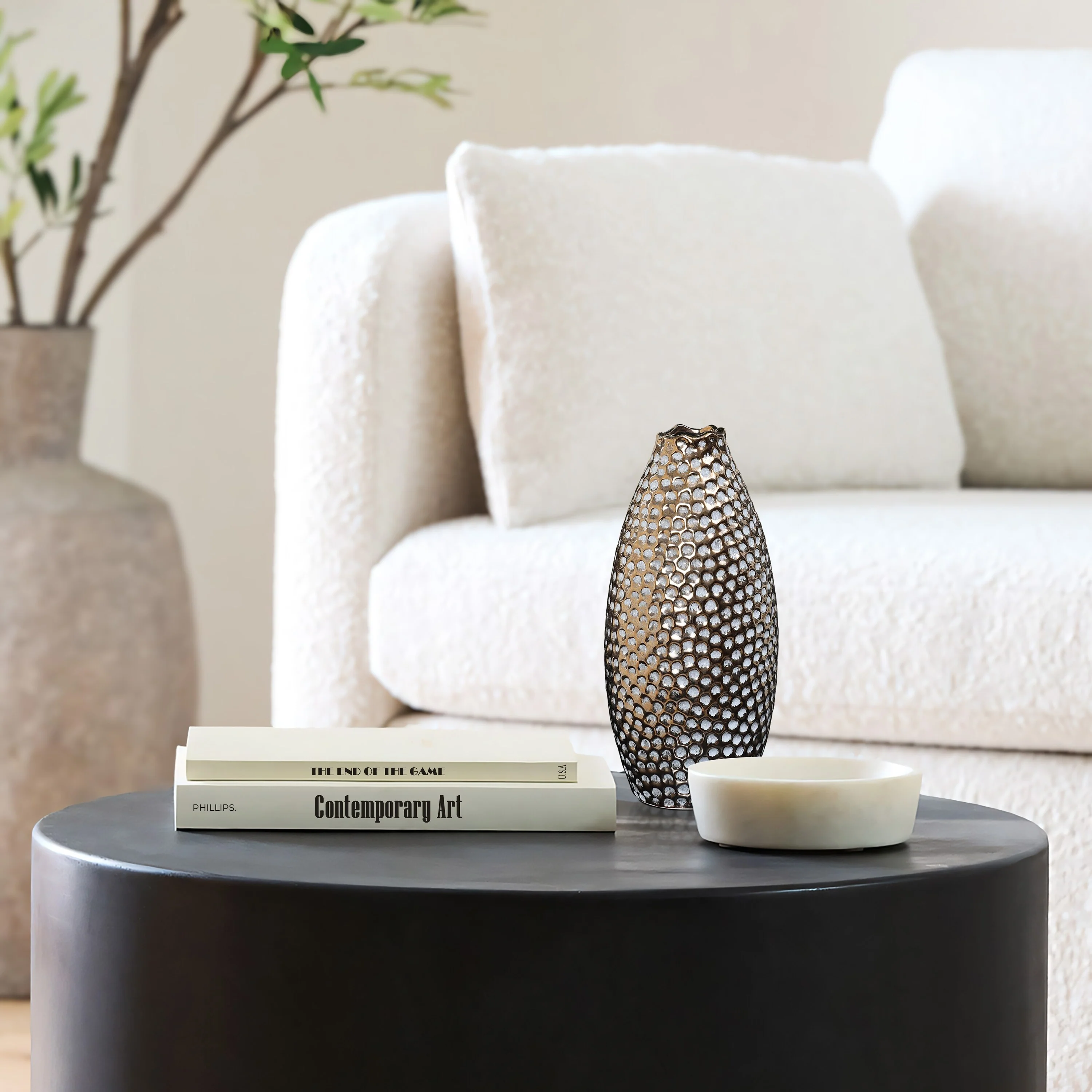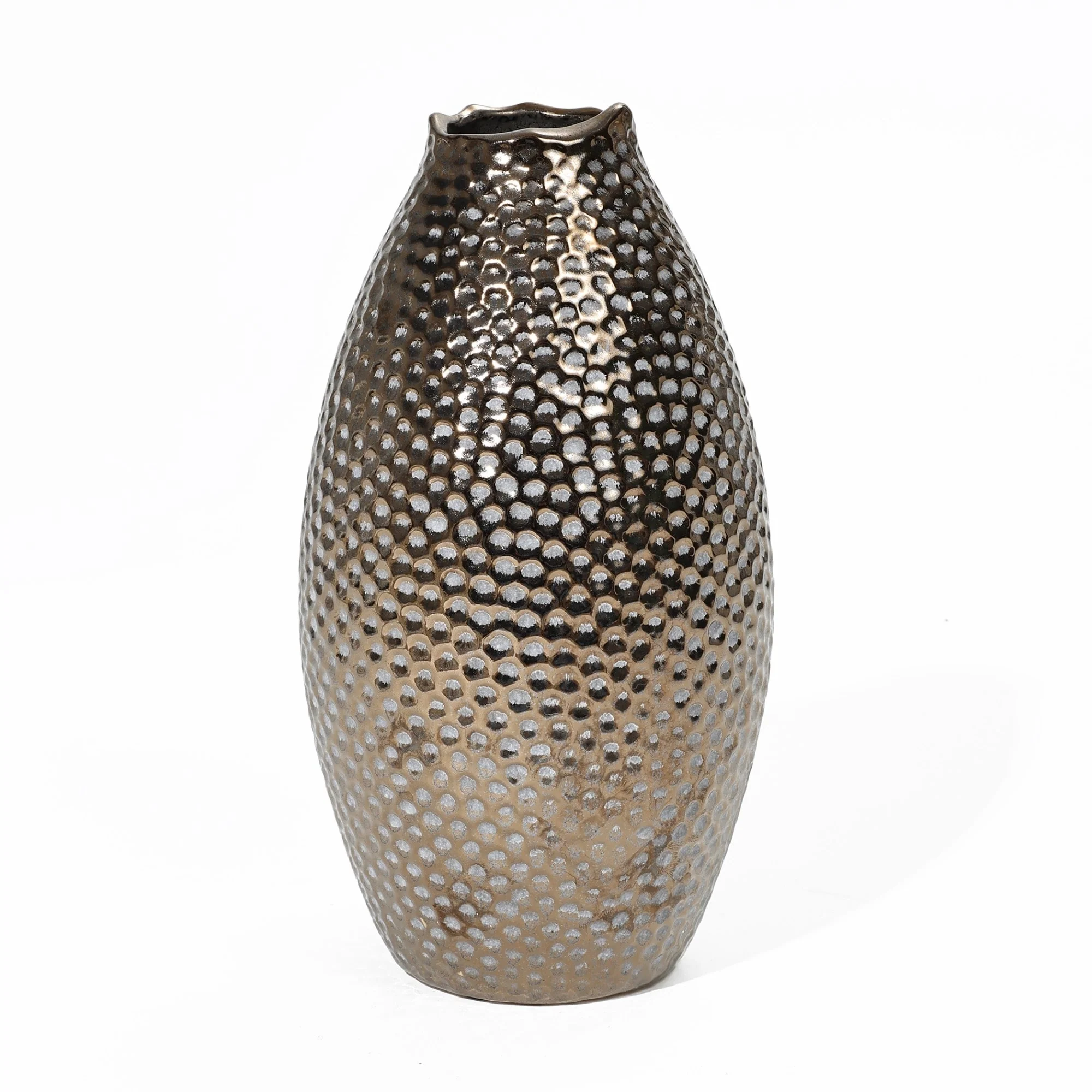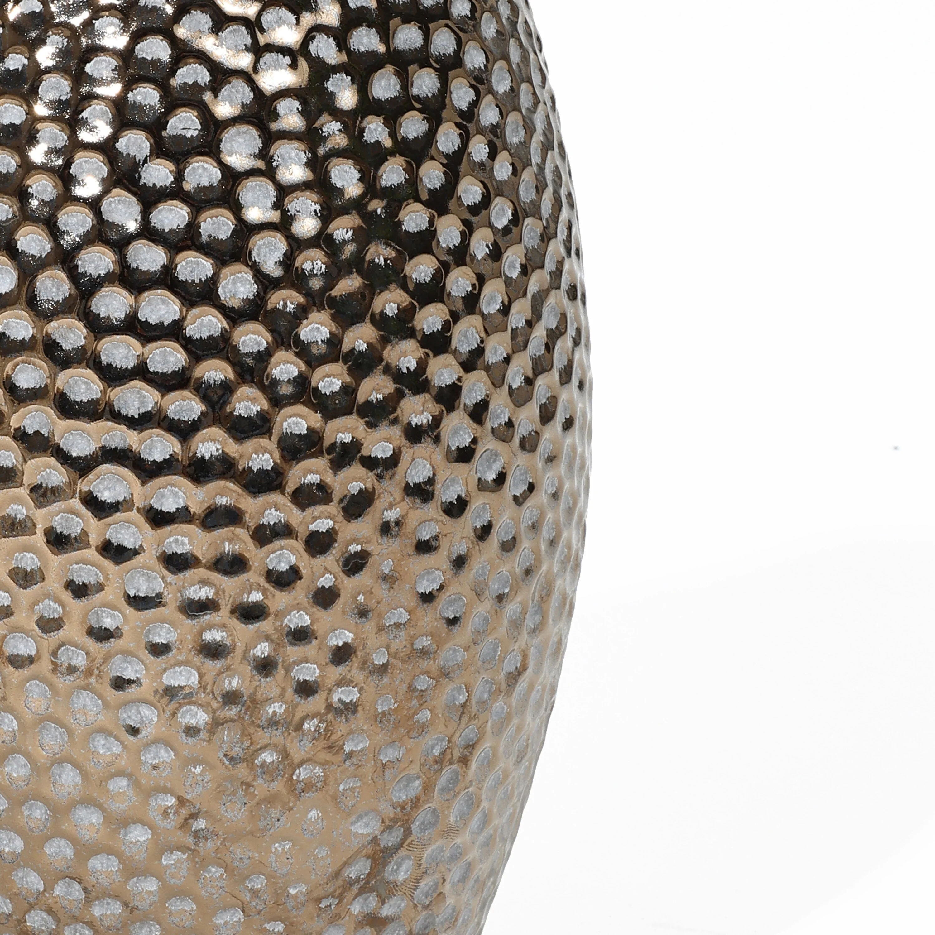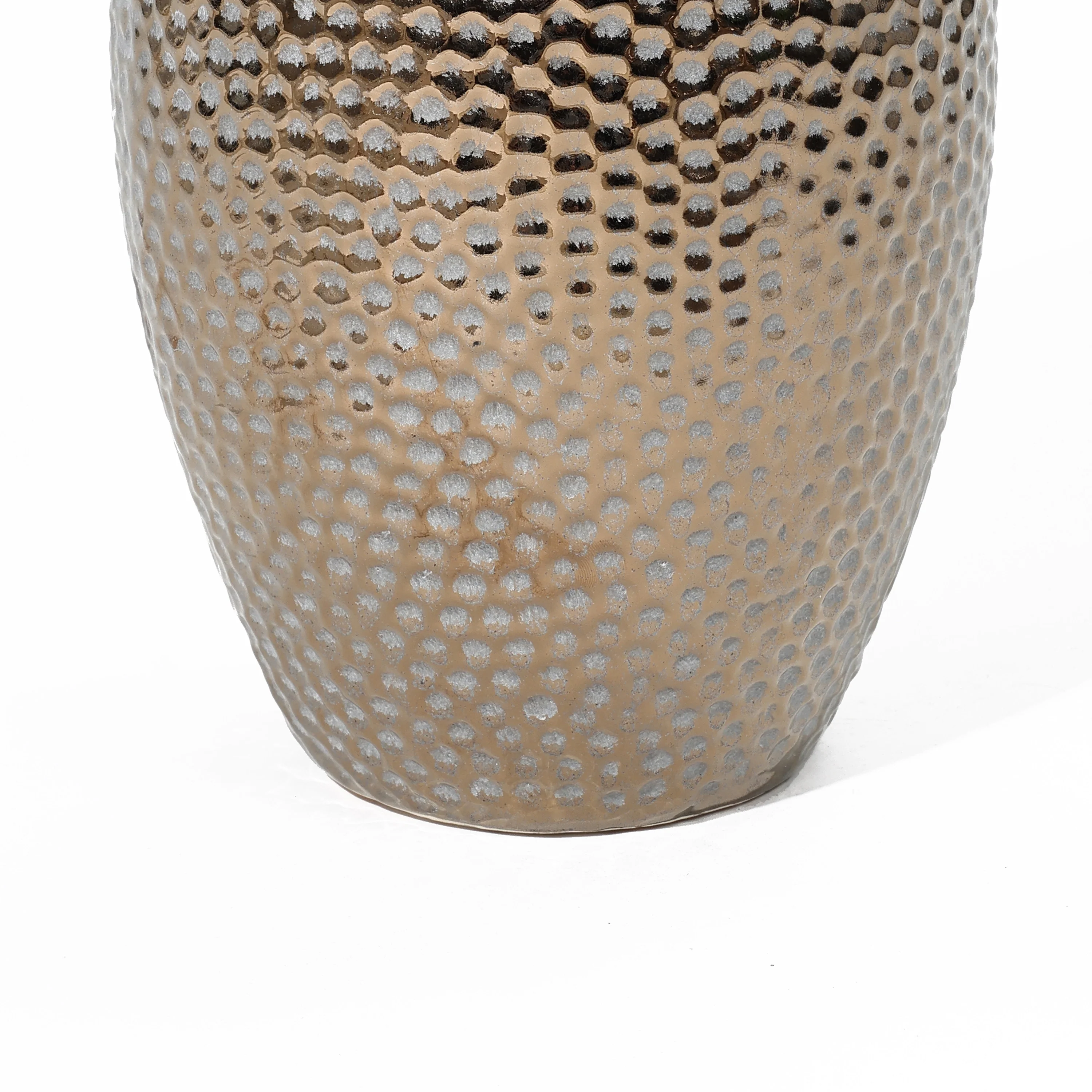 Looking for a perfect vase to add a touch of elegance to your home decor? Look no further than the stoneware vase! This masterpiece is made of stoneware with a gold glaze, and its handcrafted, dimpled surface brings a contemporary elegance to any room. Designed to be robust and chip-resistant, this vase is perfect for indoor ambiance and serenity. Whether you choose to display it as a cohesive collection or as an individual accent piece, this vase adds a luxurious touch to console tables and shelves. Get your hands on this vase today and turn your home into a luxurious paradise!