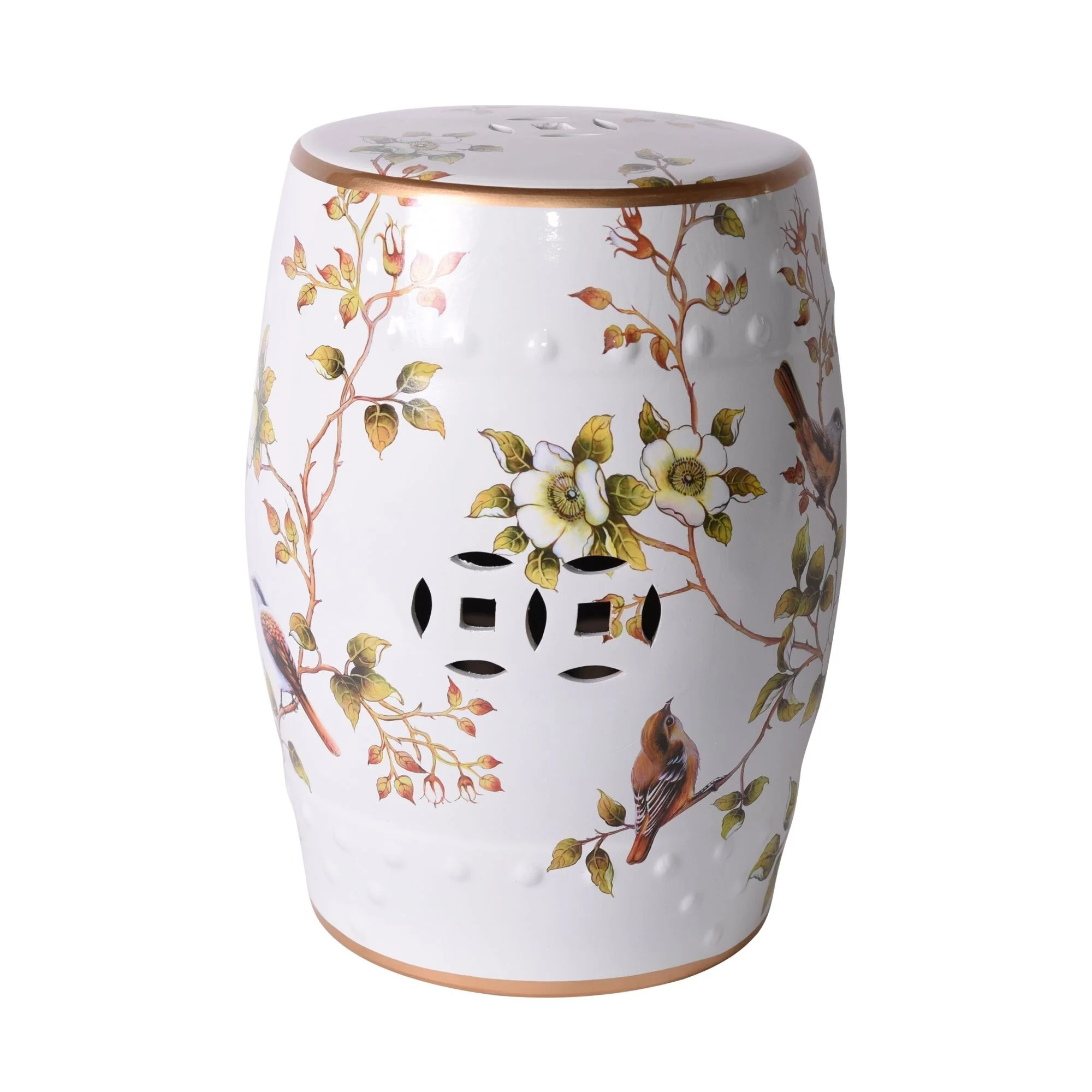 Cream White Garden Stool With Flower and BirdsThe special antique process makes it looks like a piece of art from a museum. High fire porcelain, 100% hand shaped, hand painted. Square shape is never perfect. Distress, chips and other imperfections create great characters of this special vintage style porcelain temple jar. From a small town Jingdezhen in the southern part of China, where ceramic and porcelain were originated 5000 years ago. It is known as the capital of ceramics.
