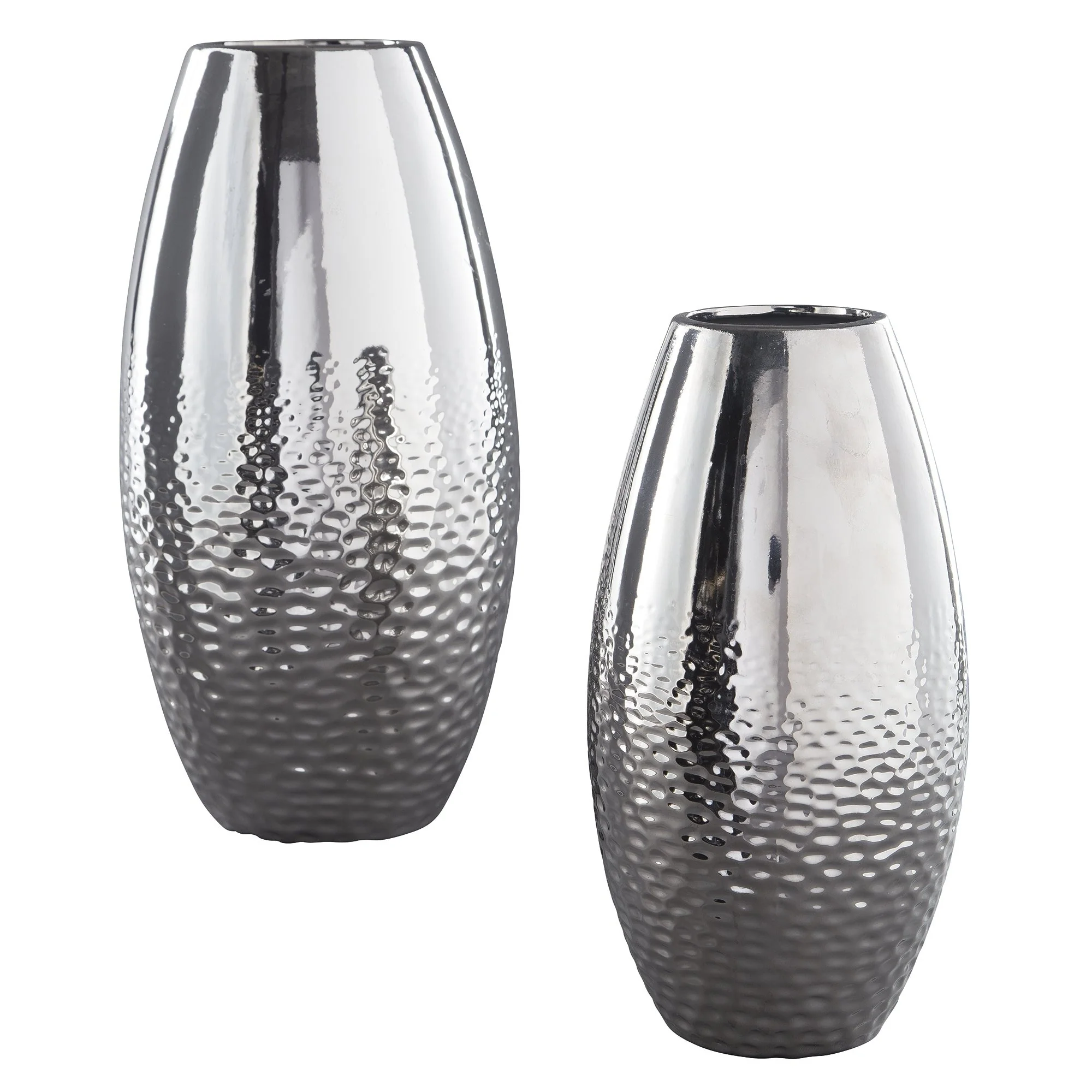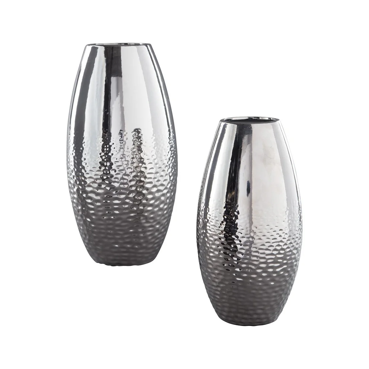 Add subtle glam with the Dinesh ceramic vase set, reflecting your eclectic eye for design. Textural pattern gracing the sides of the vases evokes ripples of water. Spectacular silvertone glazed finish adds a splash of sheen and shine.�