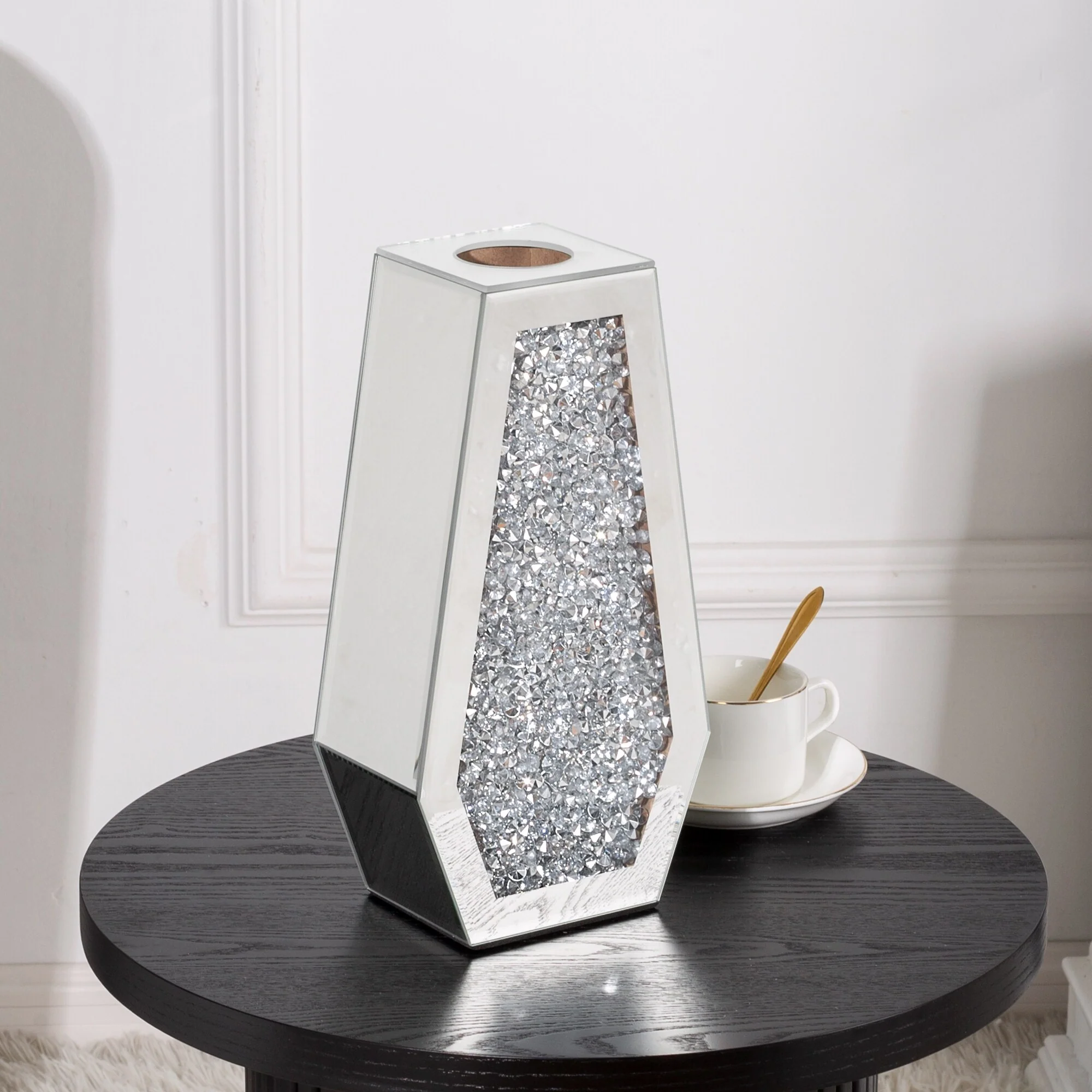 Functional Versatility: This mirrored diamond vase is designed for both indoor and outdoor settings, offering seamless elegance wherever it's placed.