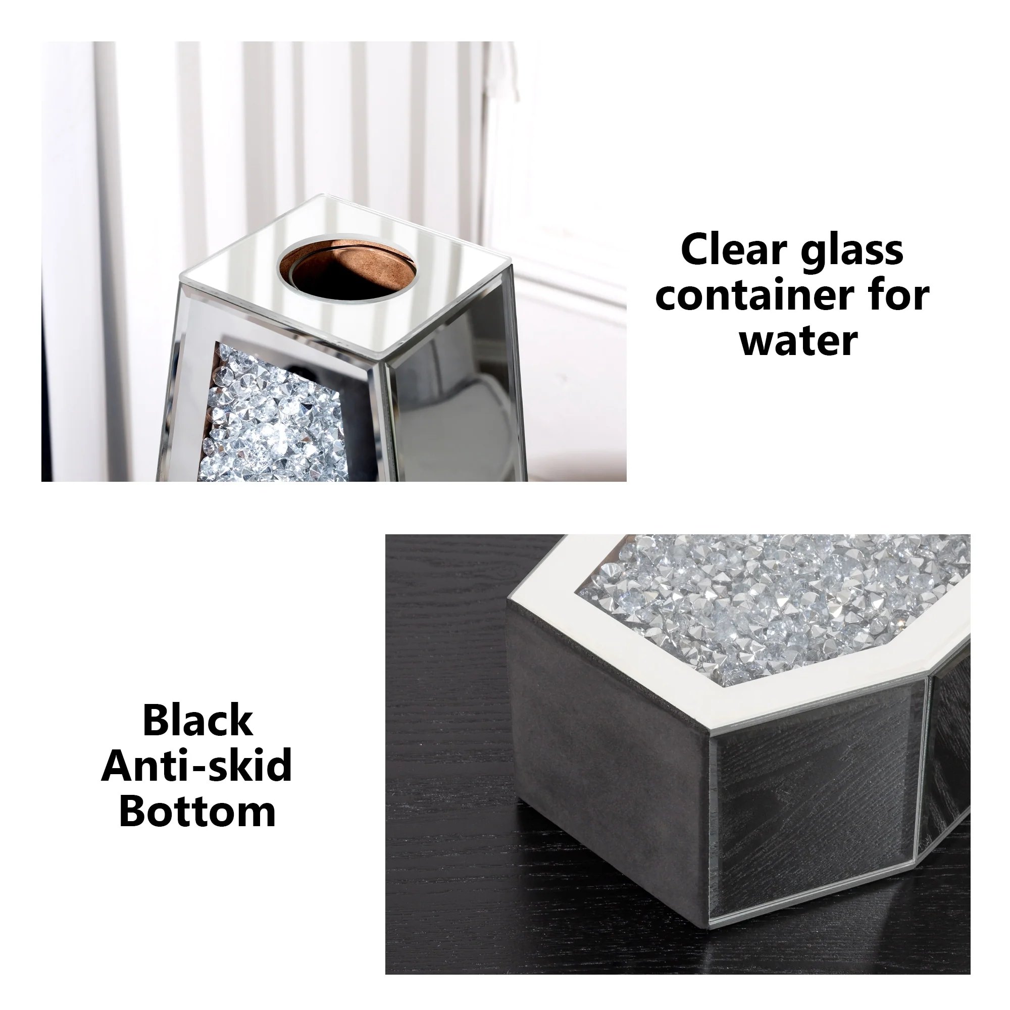 Perfect for All Occasions: Whether for everyday decor or special events, this mirrored diamond vase is a versatile choice that adds a touch of sophistication and practicality to your floral displays.