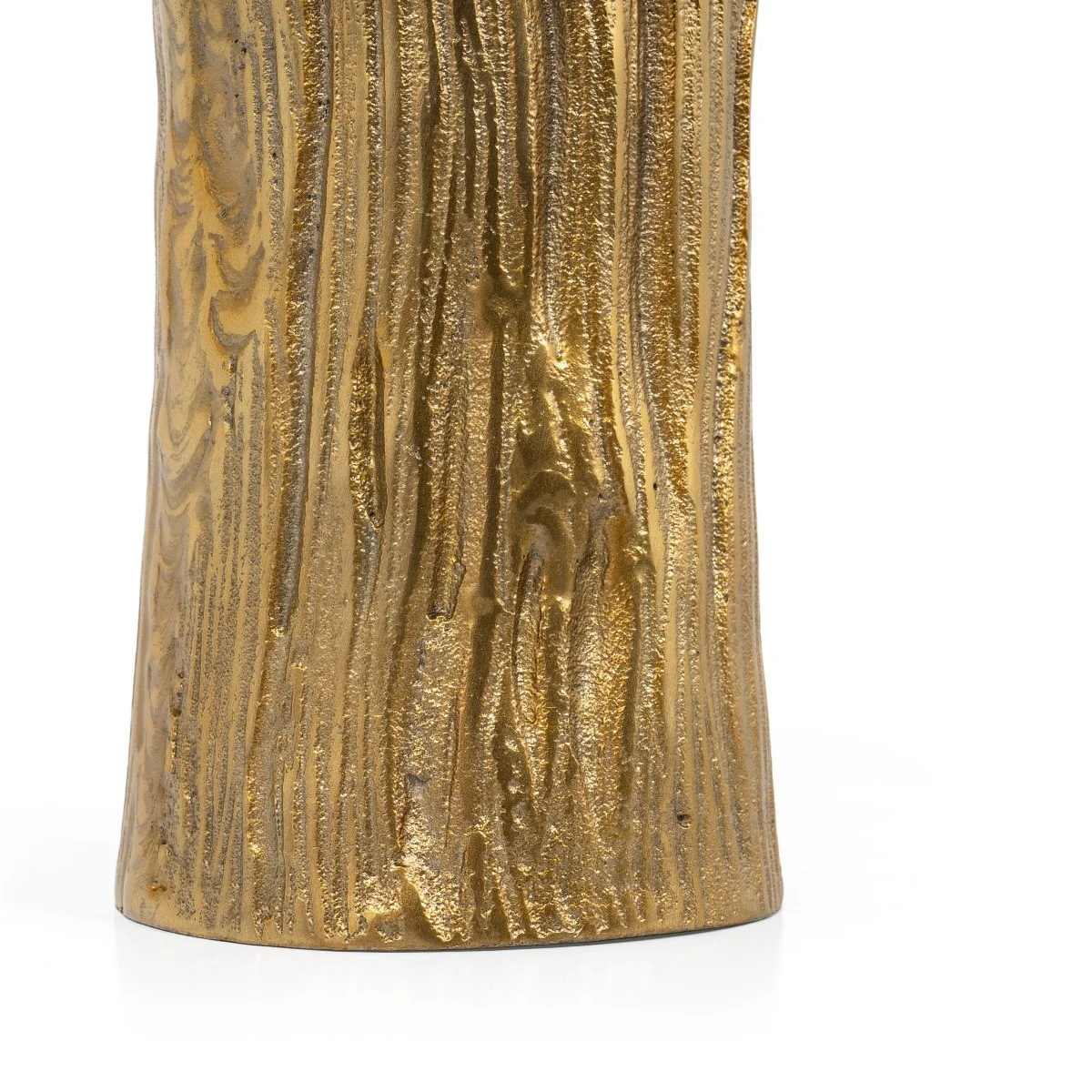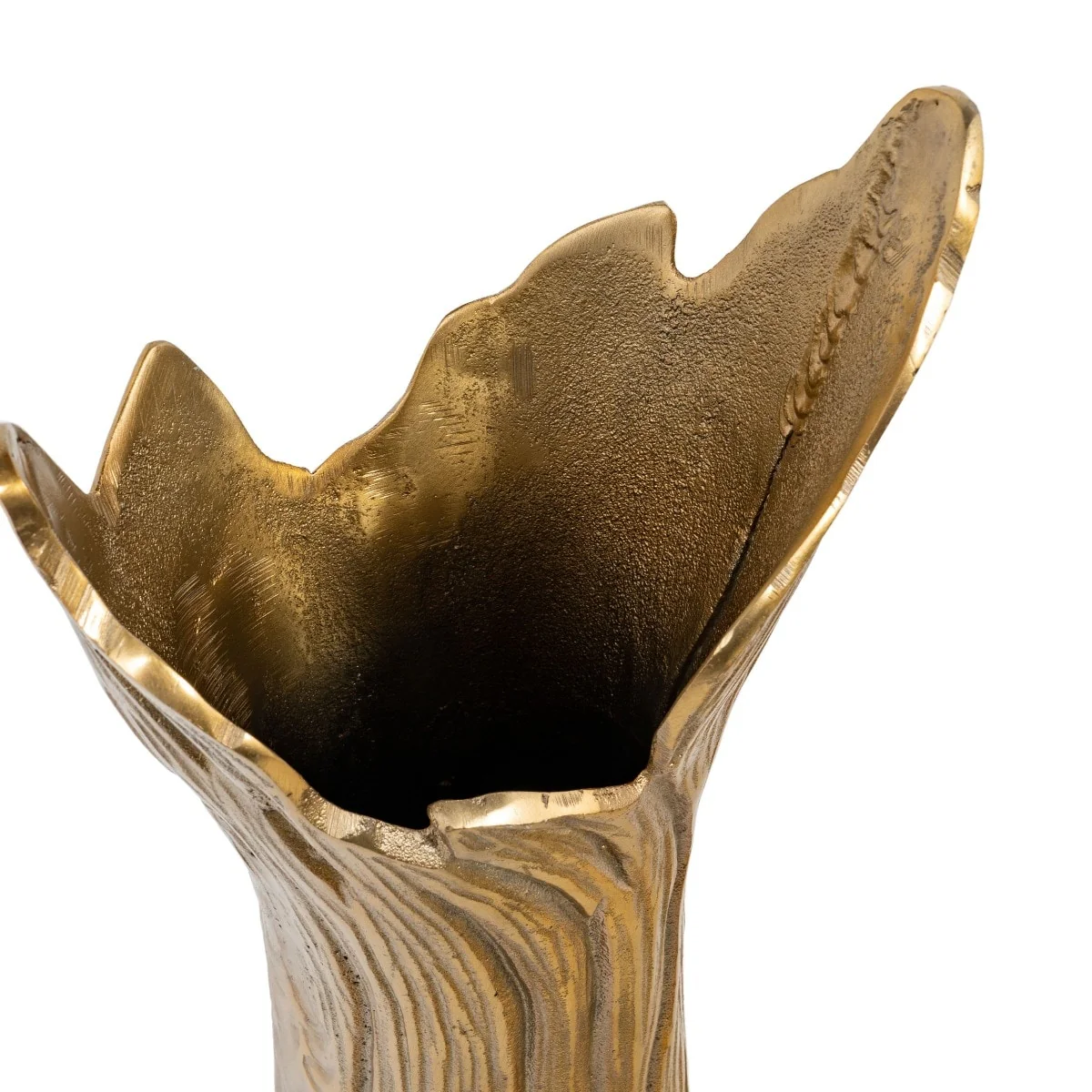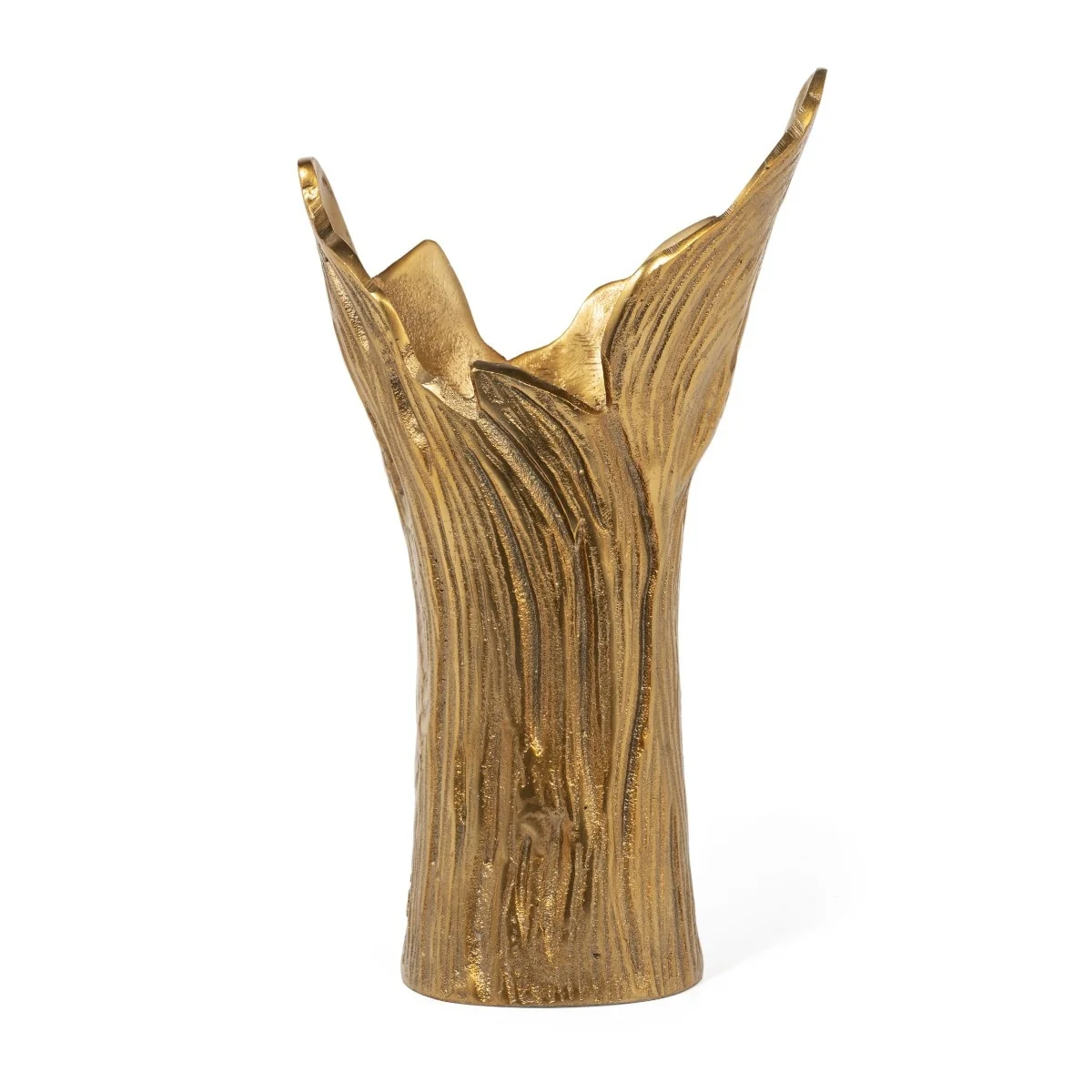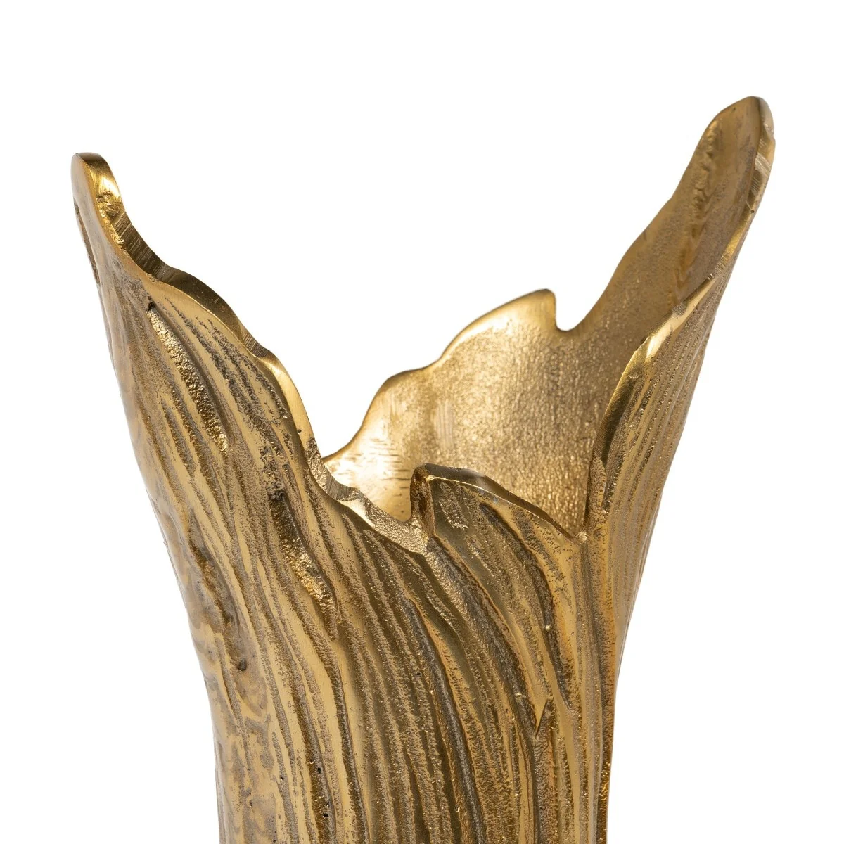 - This beautiful gold decorative table vase is a masterpiece made from premium cast aluminum. The texture is a standout feature, with its intricate design adding depth and dimension to the vase. The wide opening at the mouth provides ample space to showcase your favorite blooms, making it the perfect addition to your living room, bedroom, or office. Display this vase on a tabletop, shelf, or mantel and enjoy its stunning design and beautiful texture every day