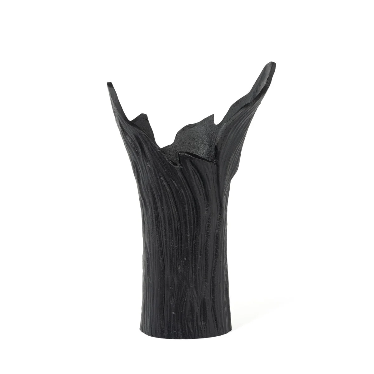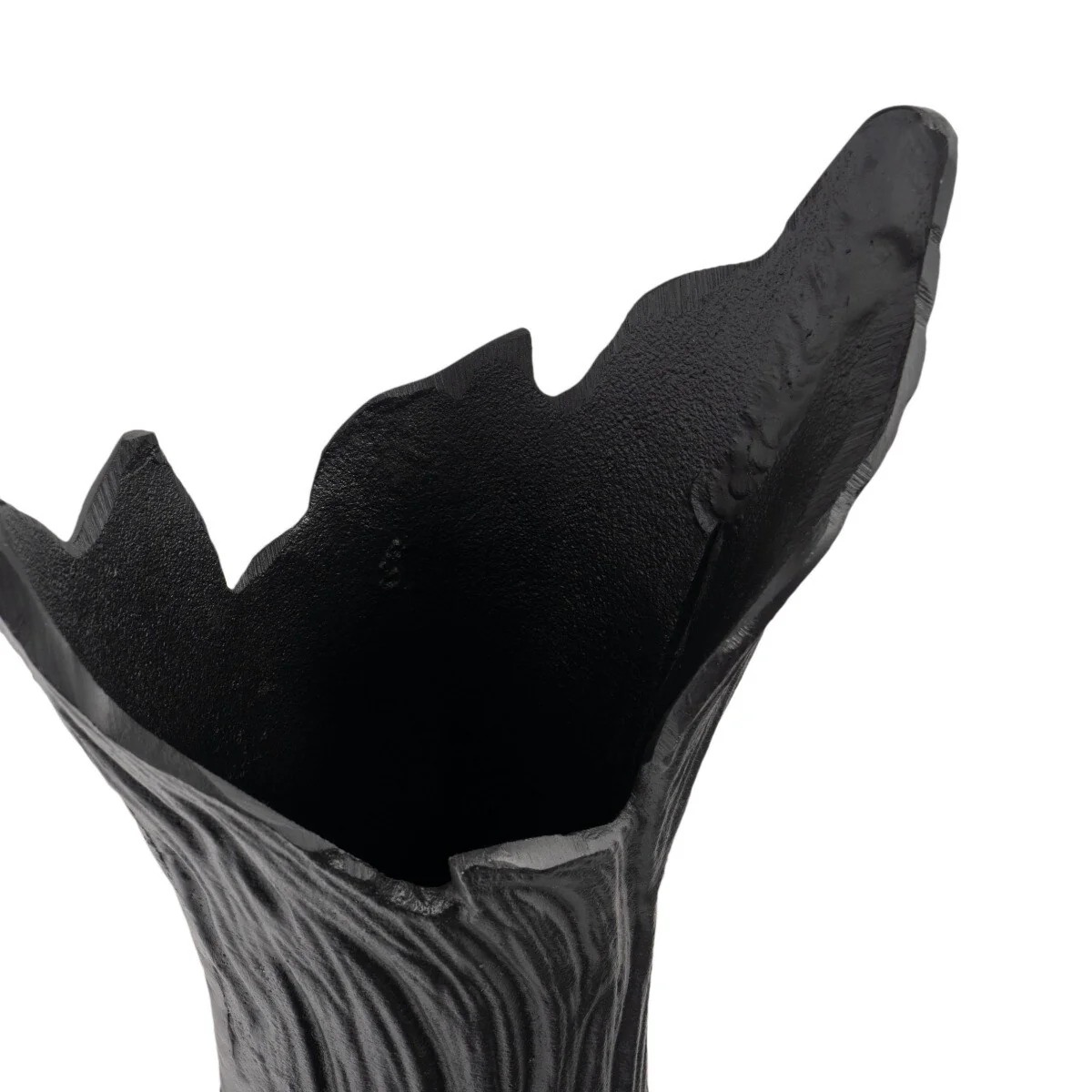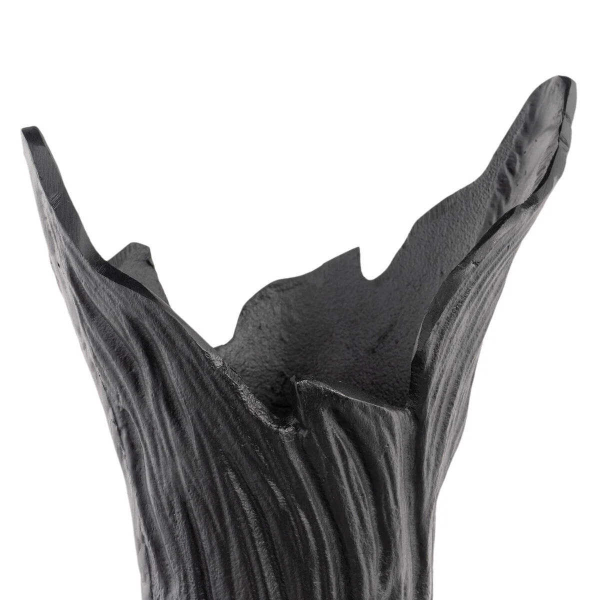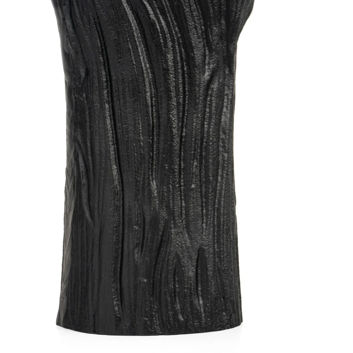 - This sleek black decorative table vase is a masterpiece made from premium cast aluminum. The texture is a standout feature, with its intricate design adding depth and dimension to the vase. The wide opening at the mouth provides ample space to showcase your favorite blooms, making it the perfect addition to your living room, bedroom, or office. Display this vase on a tabletop, shelf, or mantel and enjoy its stunning design and beautiful texture every day
