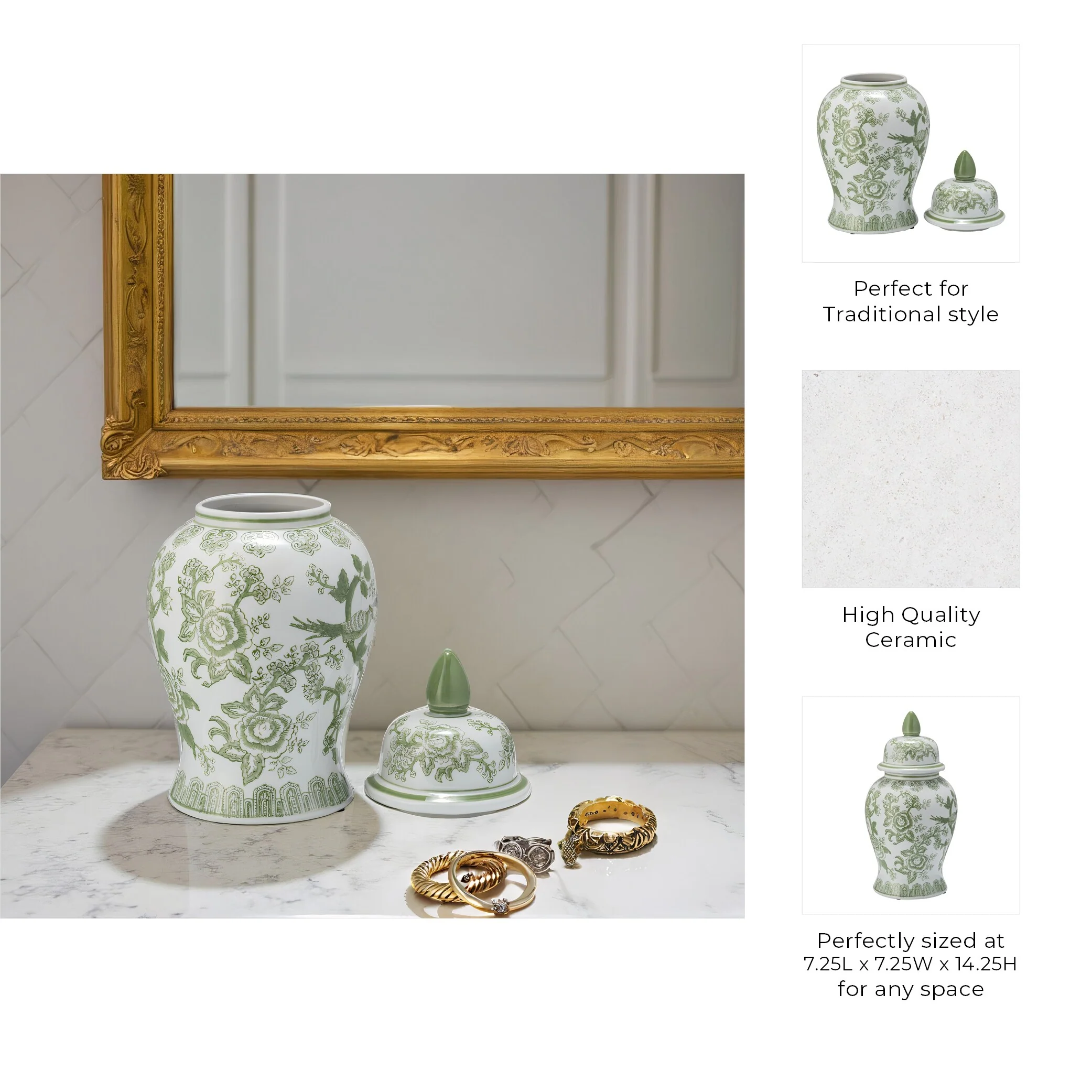 - Elegant chinoiserie design - Inspired by traditional craftsmanship, this decorative jar brings timeless sophistication to any home or office, adding a refined touch to shelves, tables, or mantels.