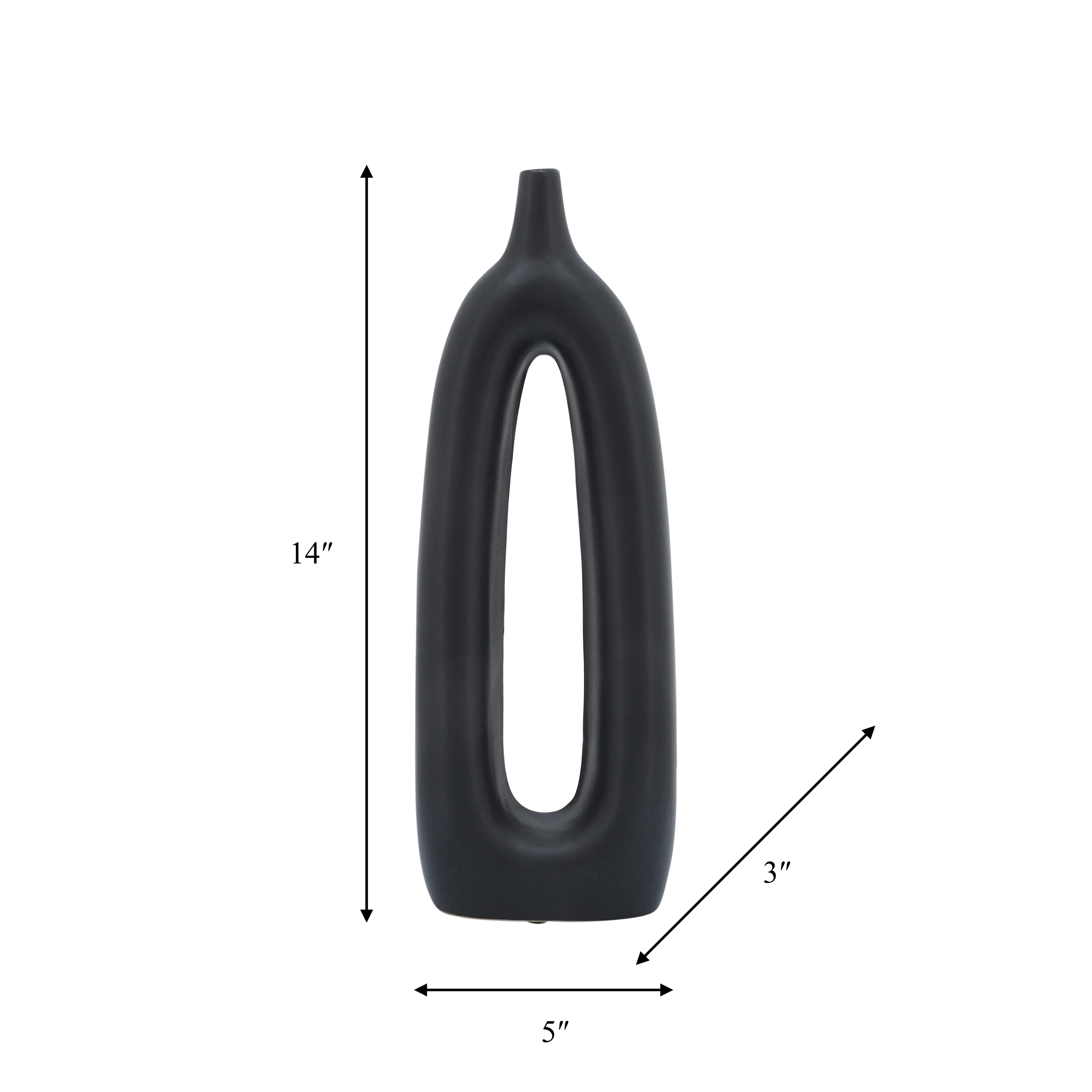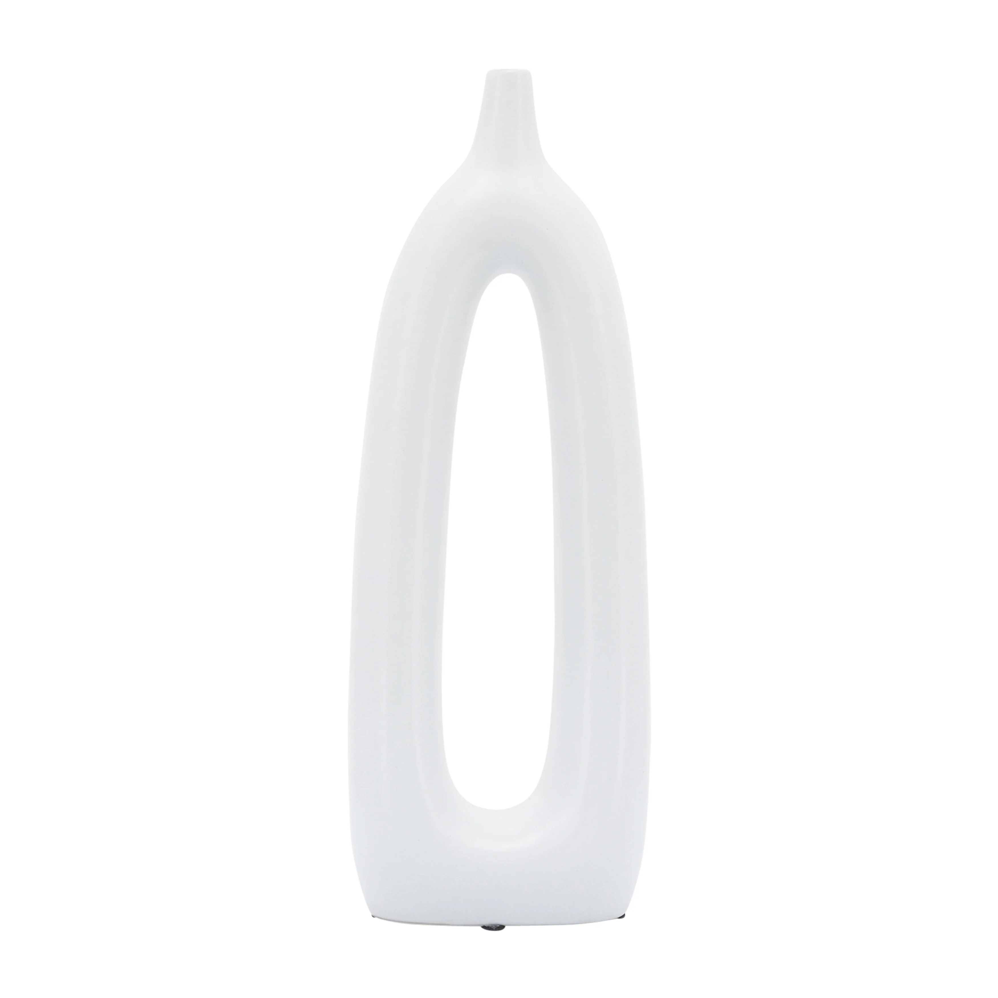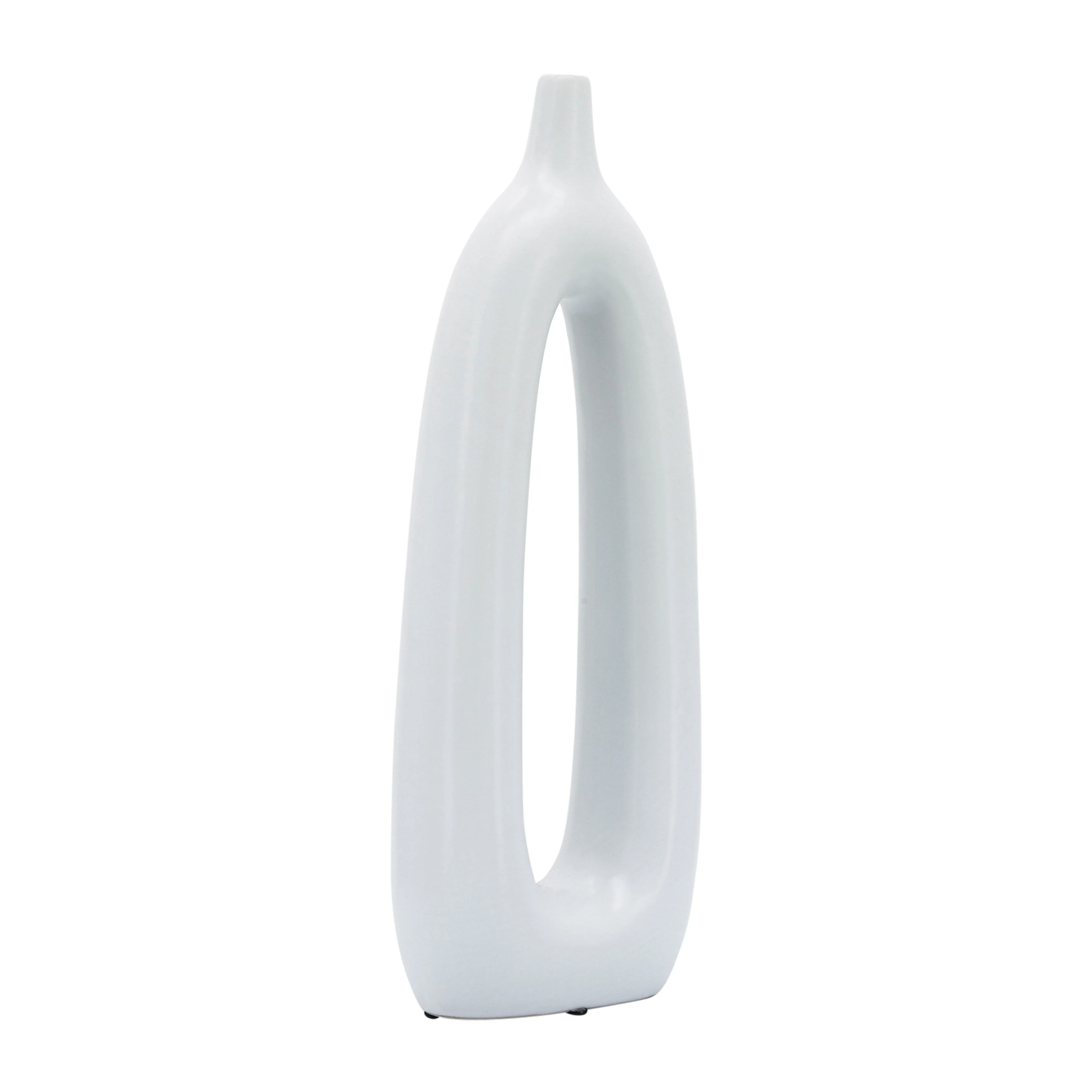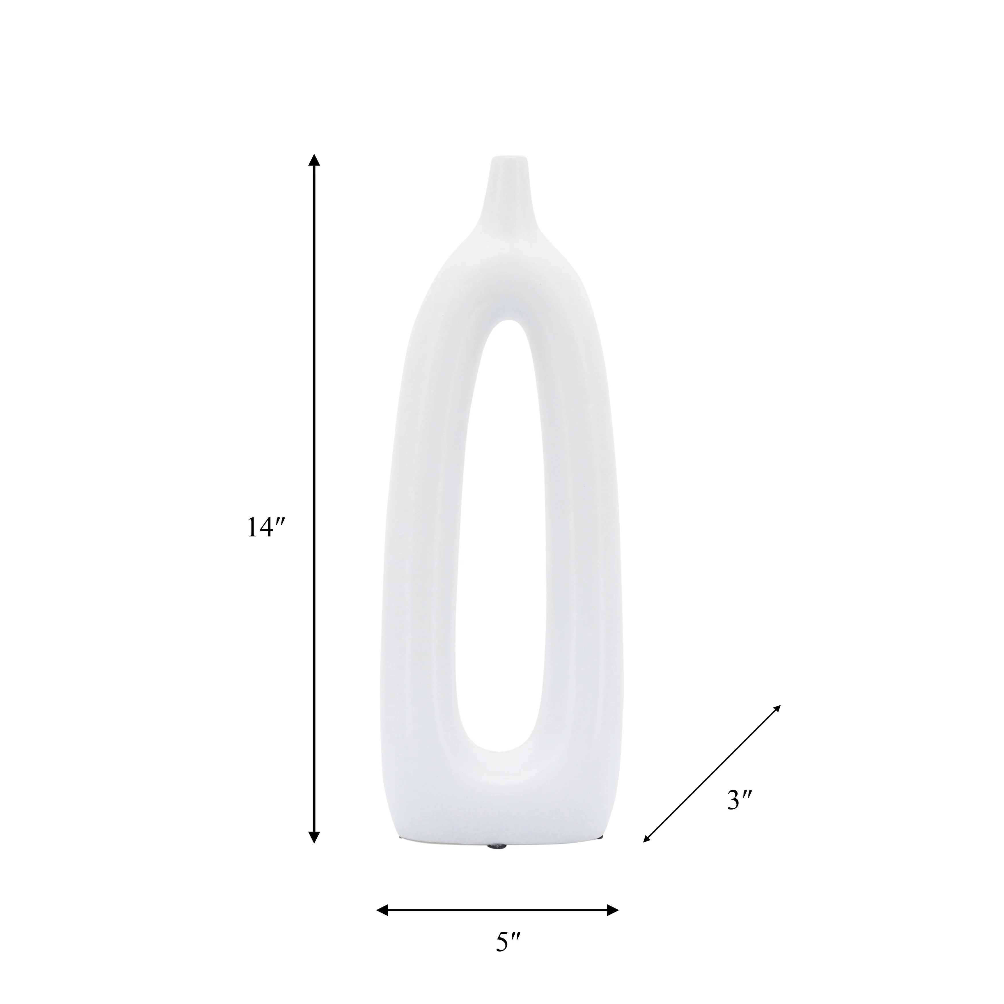 Classic pieces never go out of style! If you're looking for a stunning, high quality piece that will last for years - both in quality and trend - you've found it here! This ceramic vase comes in a unique abstract design with its oblong shape and creative center cut-out. Customize even further for your space by adding your choice of flowers or greenery to display. Add to a tabletop or mantle at home or spruce up your desk! This beautiful, simple yet unique vase would also make a great gift for any artistic decor lovers!