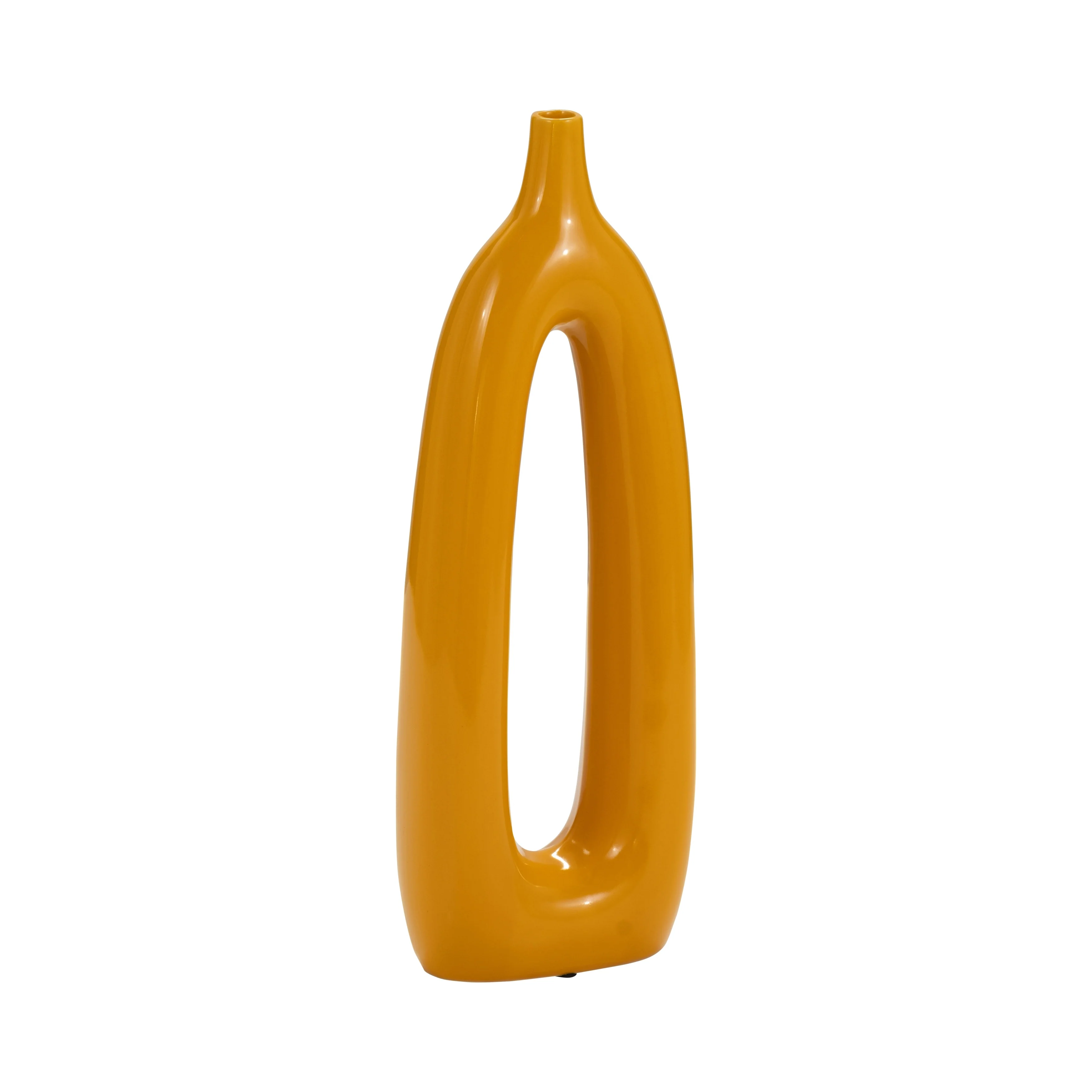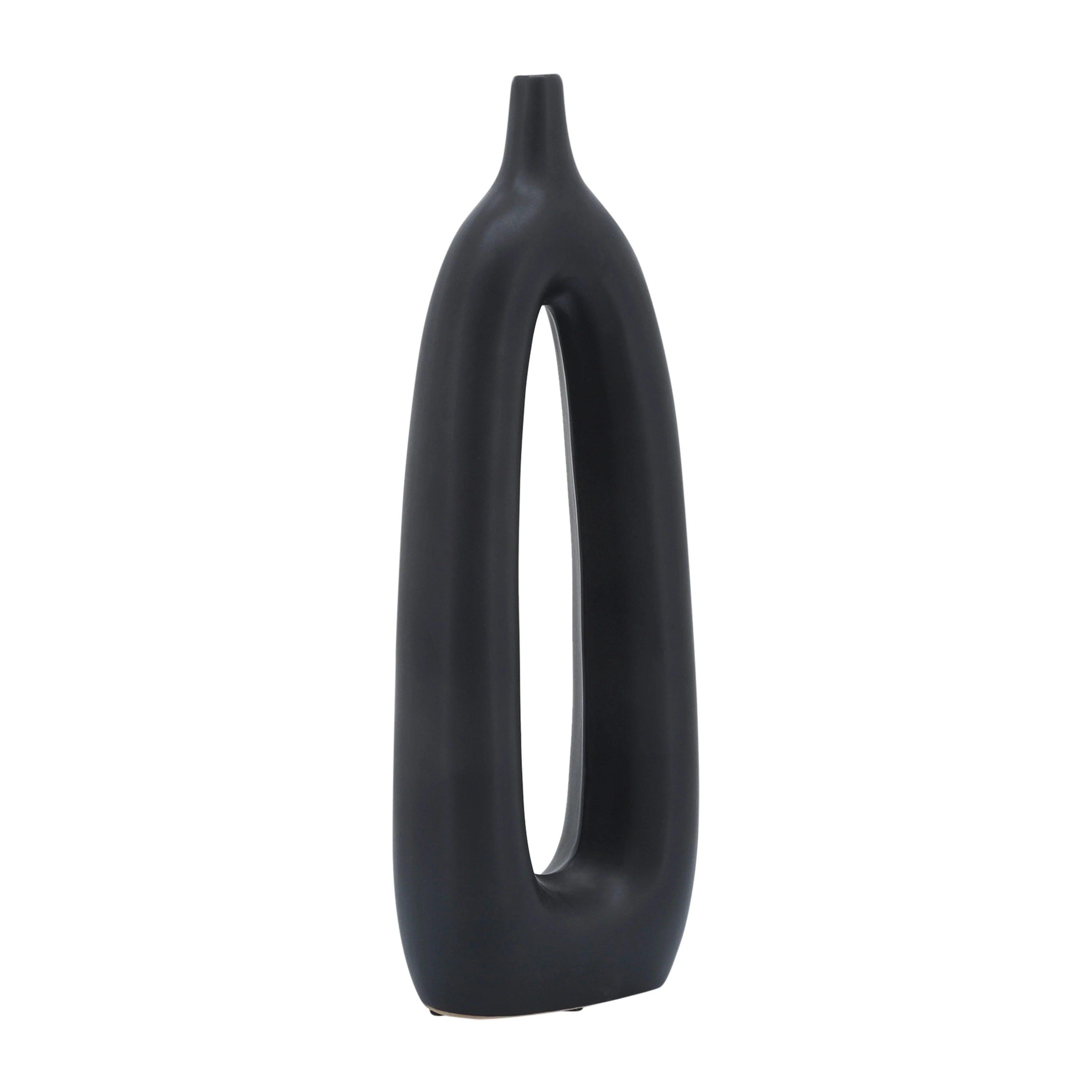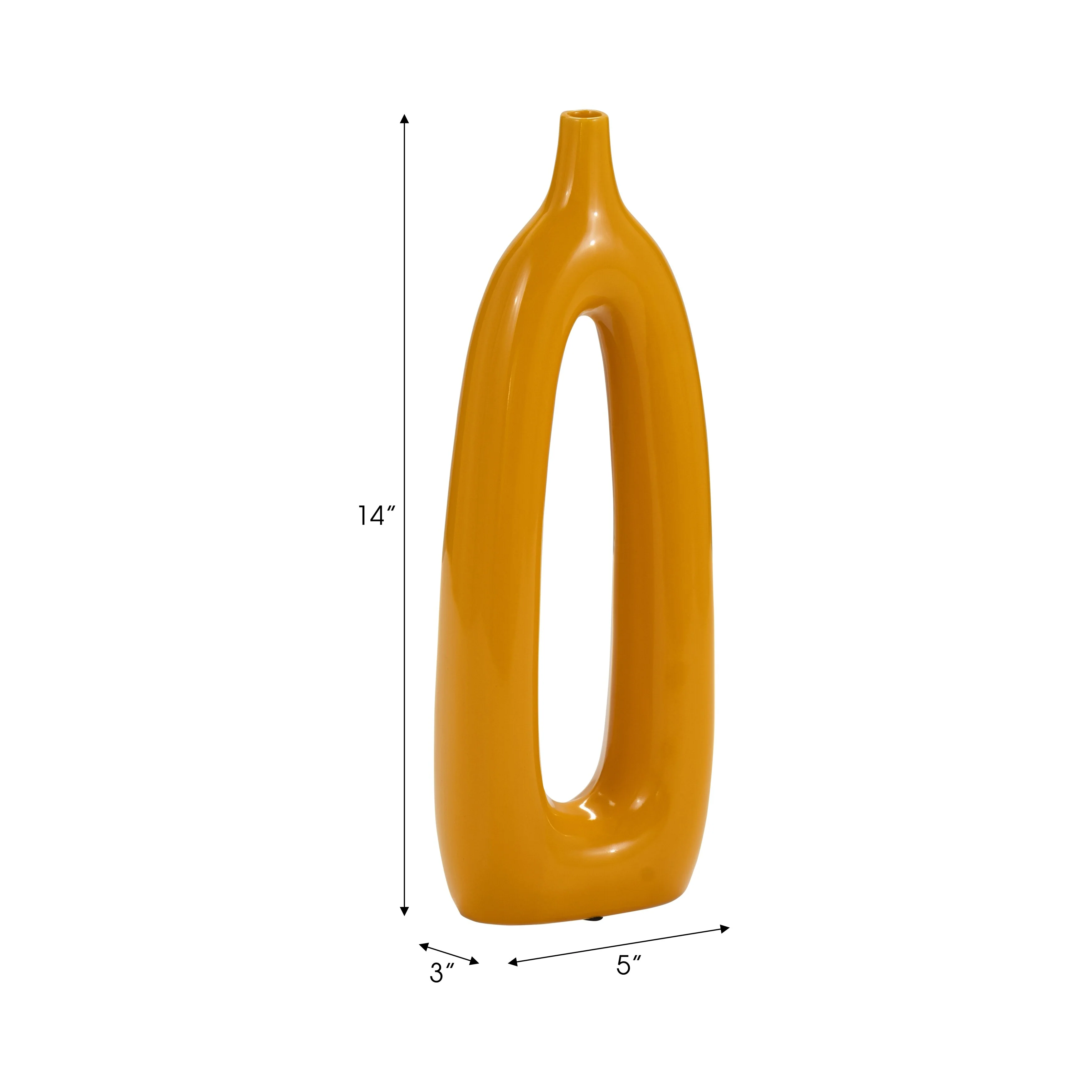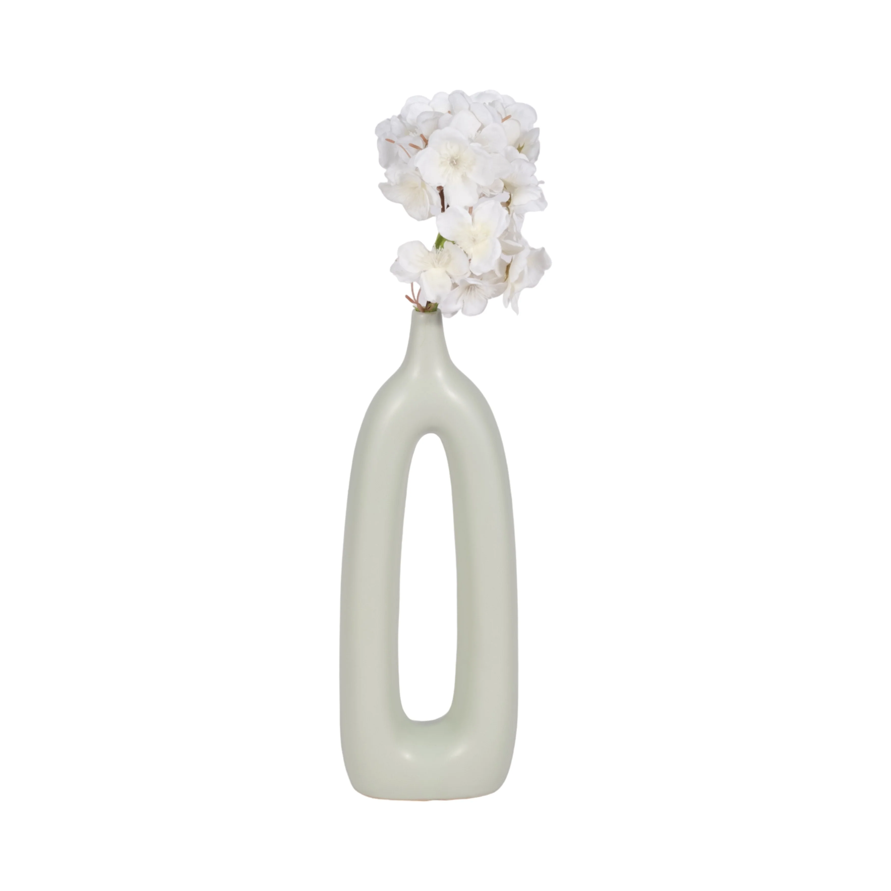 Classic pieces never go out of style! If you're looking for a stunning, high quality piece that will last for years - both in quality and trend - you've found it here! This ceramic vase comes in a unique abstract design with its oblong shape and creative center cut-out. Customize even further for your space by adding your choice of flowers or greenery to display. Add to a tabletop or mantle at home or spruce up your desk! This beautiful, simple yet unique vase would also make a great gift for any artistic decor lovers!