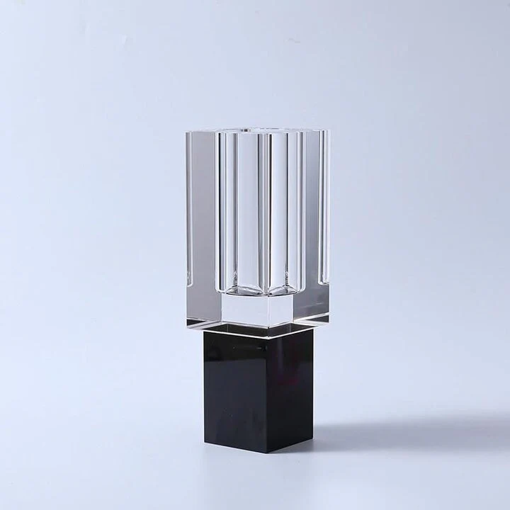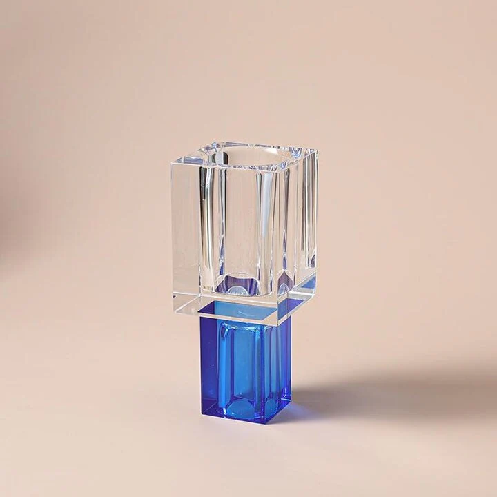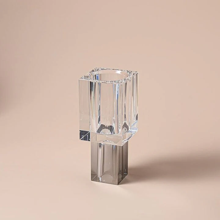 Expertly crafted crystal vase with a unique colored base. Enhance any space with its modern square design and add a touch of elegance. Made with high-quality materials for a lasting and luxurious addition to your home decor. This crystal vase is designed with the perfect blend of modern and elegant style.