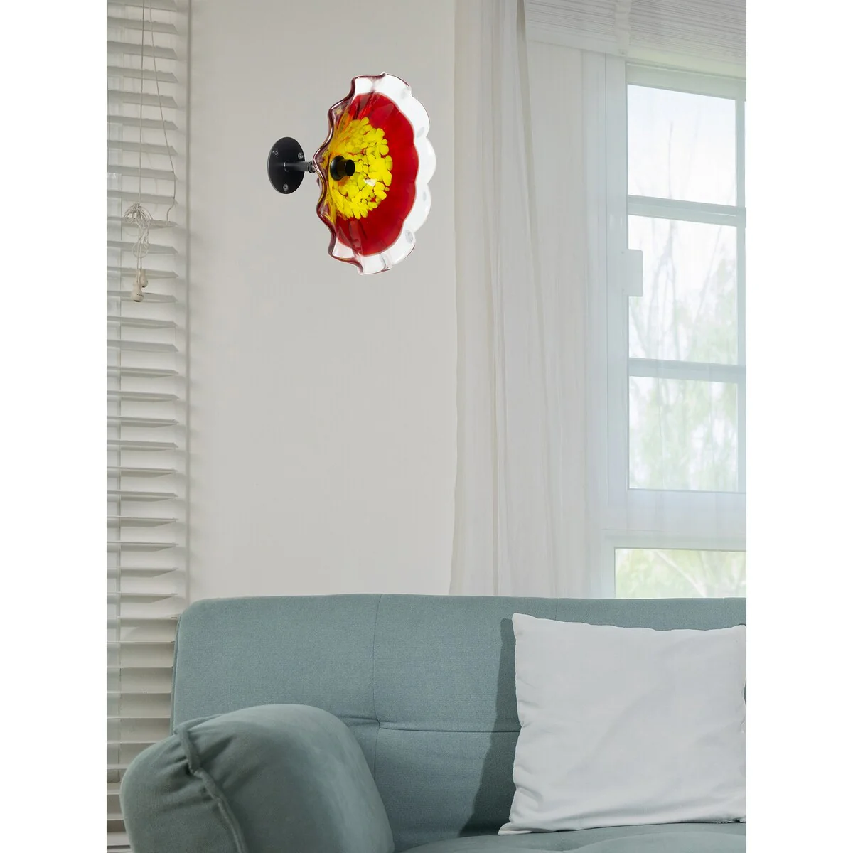 Introducing the Fiore Bloom Red Hand Blown Art Glass Wall Décor - a masterpiece that embodies the fusion of artistry and craftsmanship. Each piece, with its 12' diameter, is meticulously hand-blown, ensuring that no two are exactly alike, making yours truly unique. The mesmerizing swirls of red capture the essence of nature, bringing a touch of elegance and serenity to any space. Designed not just for its aesthetic appeal, this wall décor is also built for convenience. It comes with a specially designed wall hanging bracket, making installation a breeze. Whether you're looking to elevate your living room or add a touch of sophistication to your office, the Fiore Bloom Red Art Glass Wall Décor is the perfect choice. Elevate your interiors with this timeless piece. Due to the nature of handcrafted art glass; colors, sizes and patterns may vary slightly.