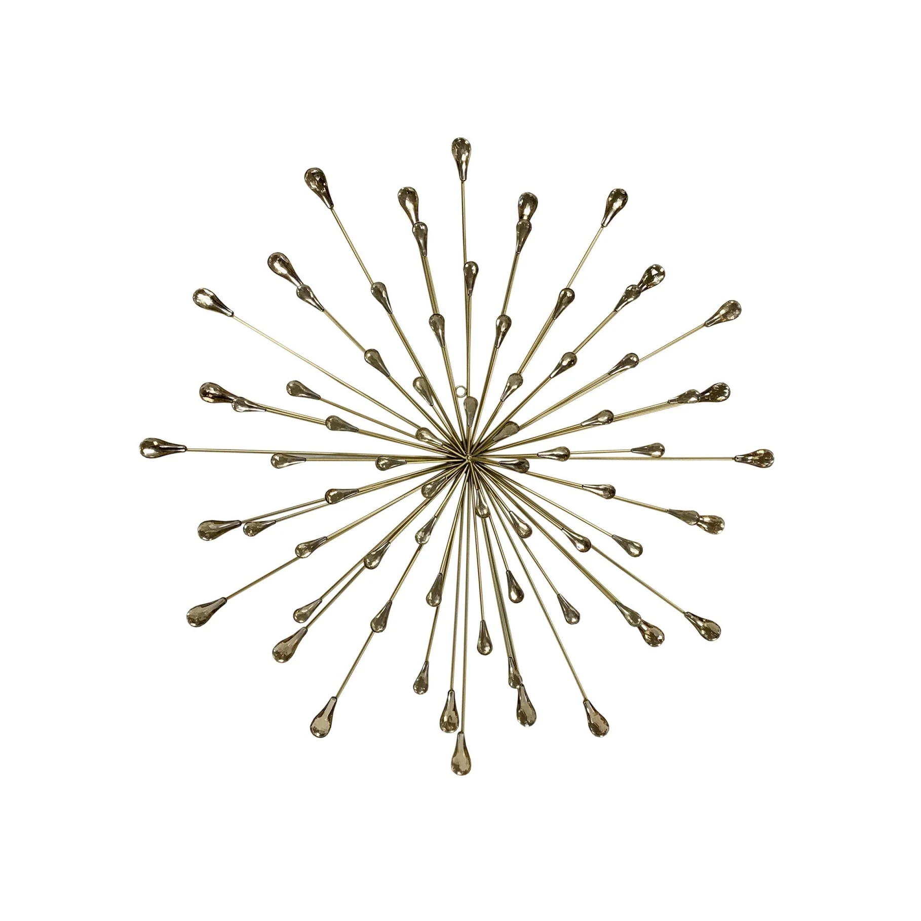 Add a touch of glamour to your walls with this stunning Gold Starburst Metal/Clear Beads Wall Art. With its eye-catching starburst design and shiny acrylic beads, this piece is sure to draw the eye and provide a chic, eclectic element to any room. The high-quality metal construction and easy-to-hang bracket ensure durability and ease of use, making it a perfect addition to your home decor.