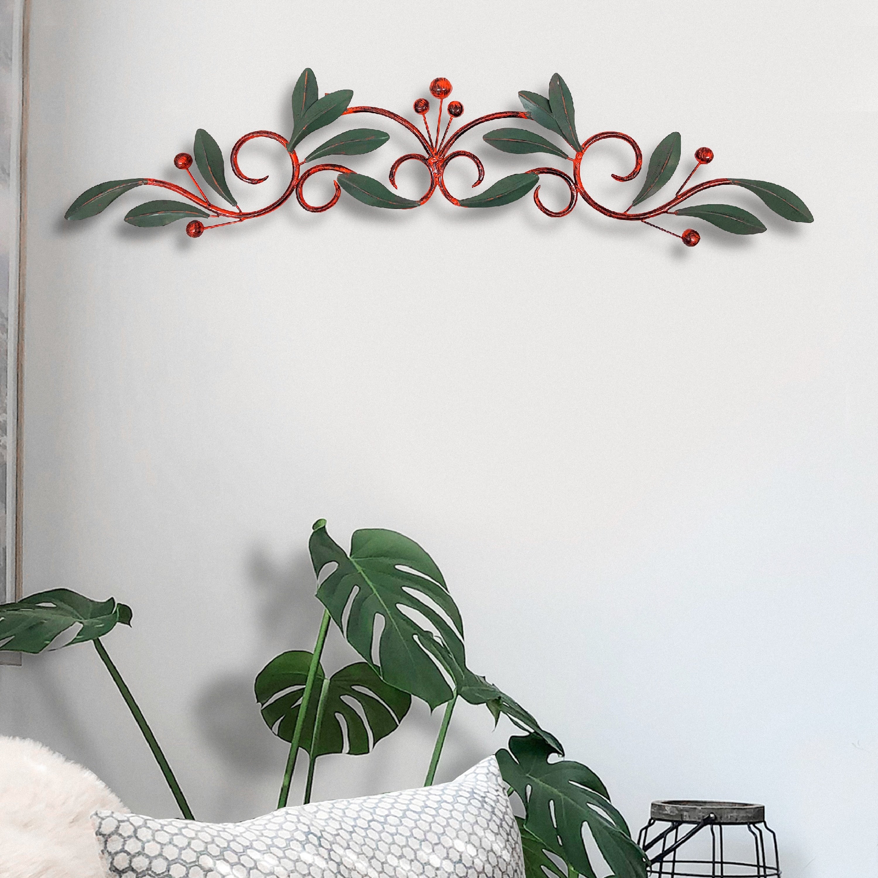 This lovely olive branch door top wall Decor features leaf design that makes it eye-catchy. Made up metal for prolonged durability, it showcases a dual tone finish of green and brown complemented with distressed details. It is extremely convenient to be hanged on any wall. A perfect mixture of modern art with nature-inspired design, this alluring wall decor is the perfect addition to your home or any outdoor space.
