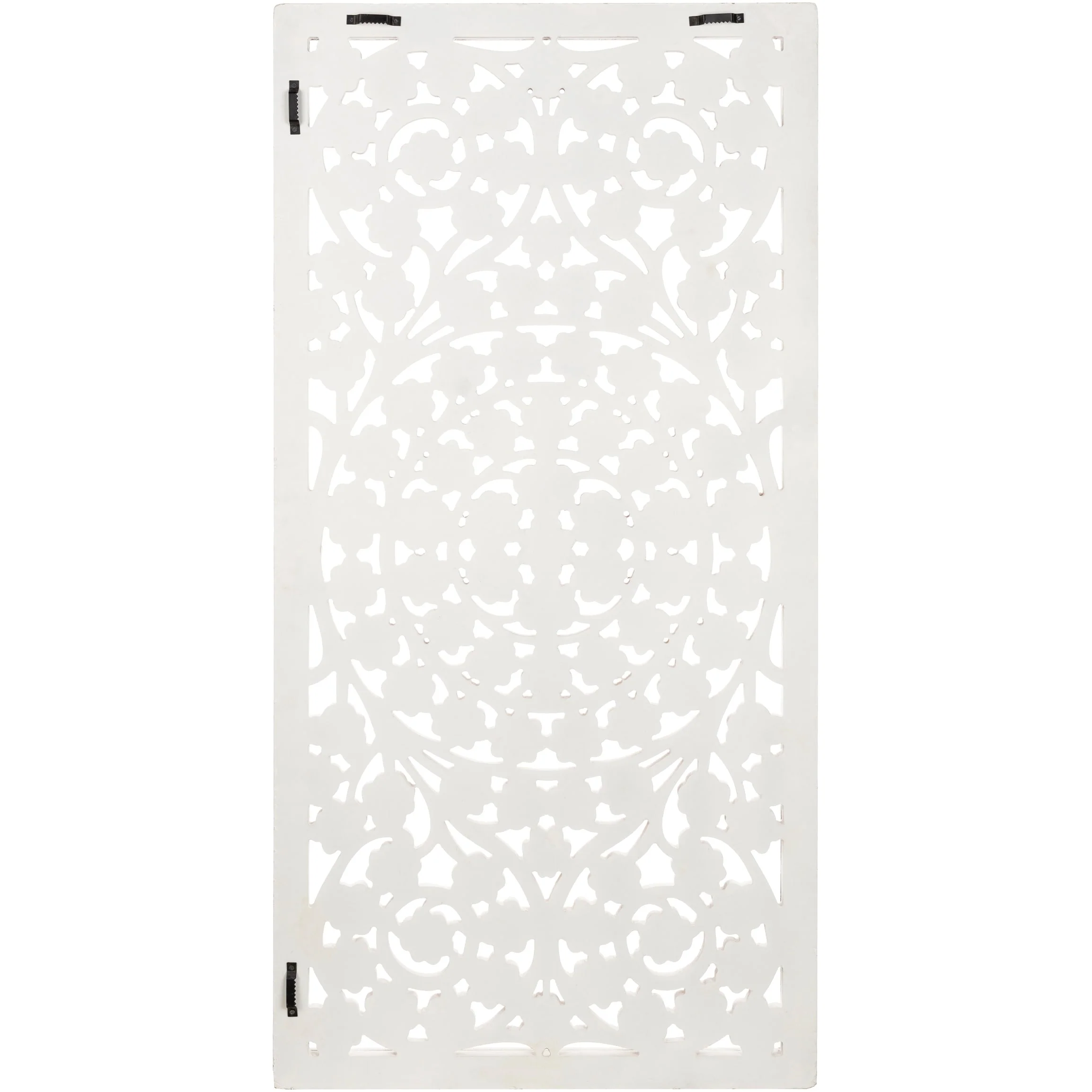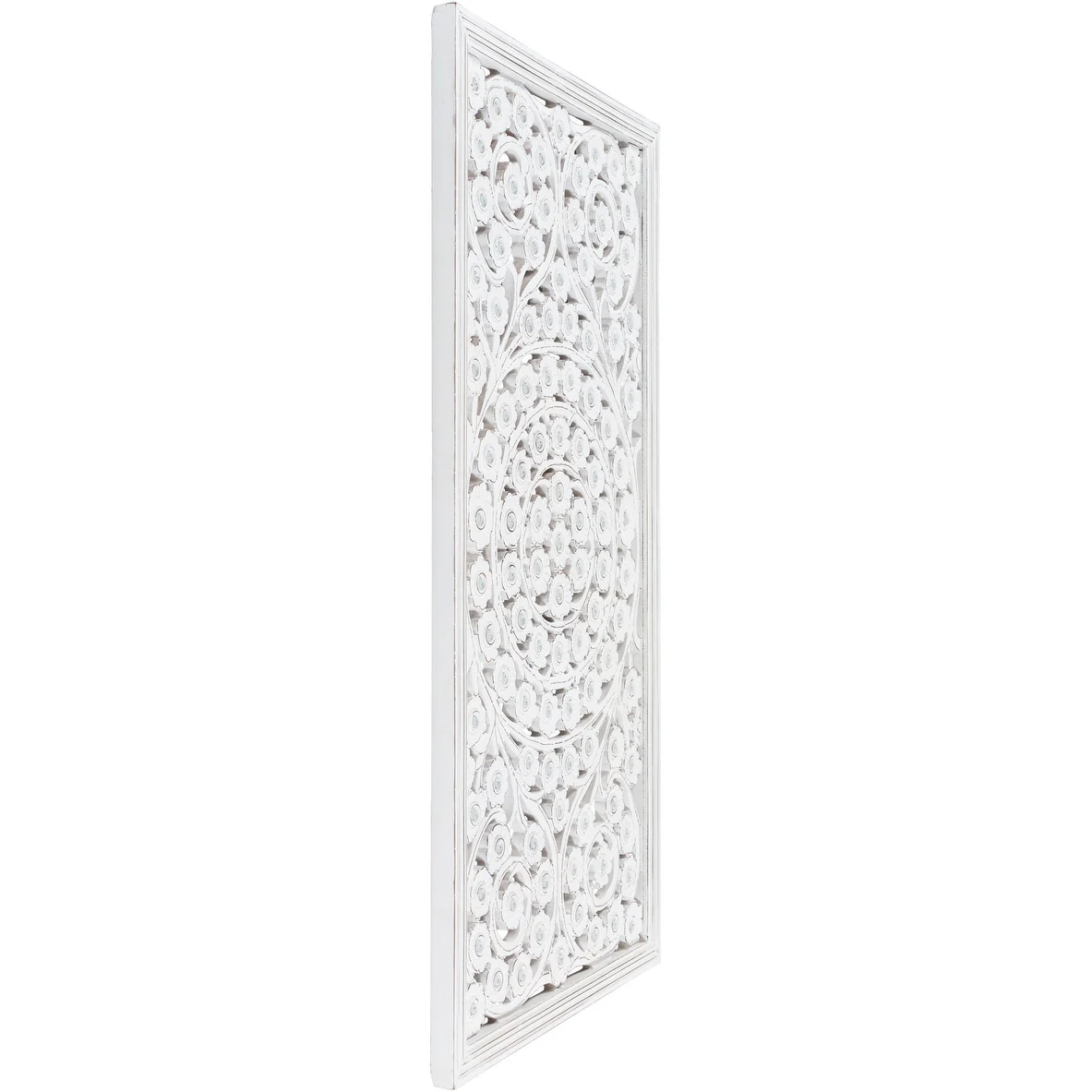 Bring a touch of the global feel into your home with this breathtakingly beautiful wall panel. Each panel is hand carved in elaborate detail and accented with the traditional art of mirror work from India. The distressed white finish adds a contemporary feel and a versatile touch.Apt for a feature space, this panel can be hung vertically or horizontally.