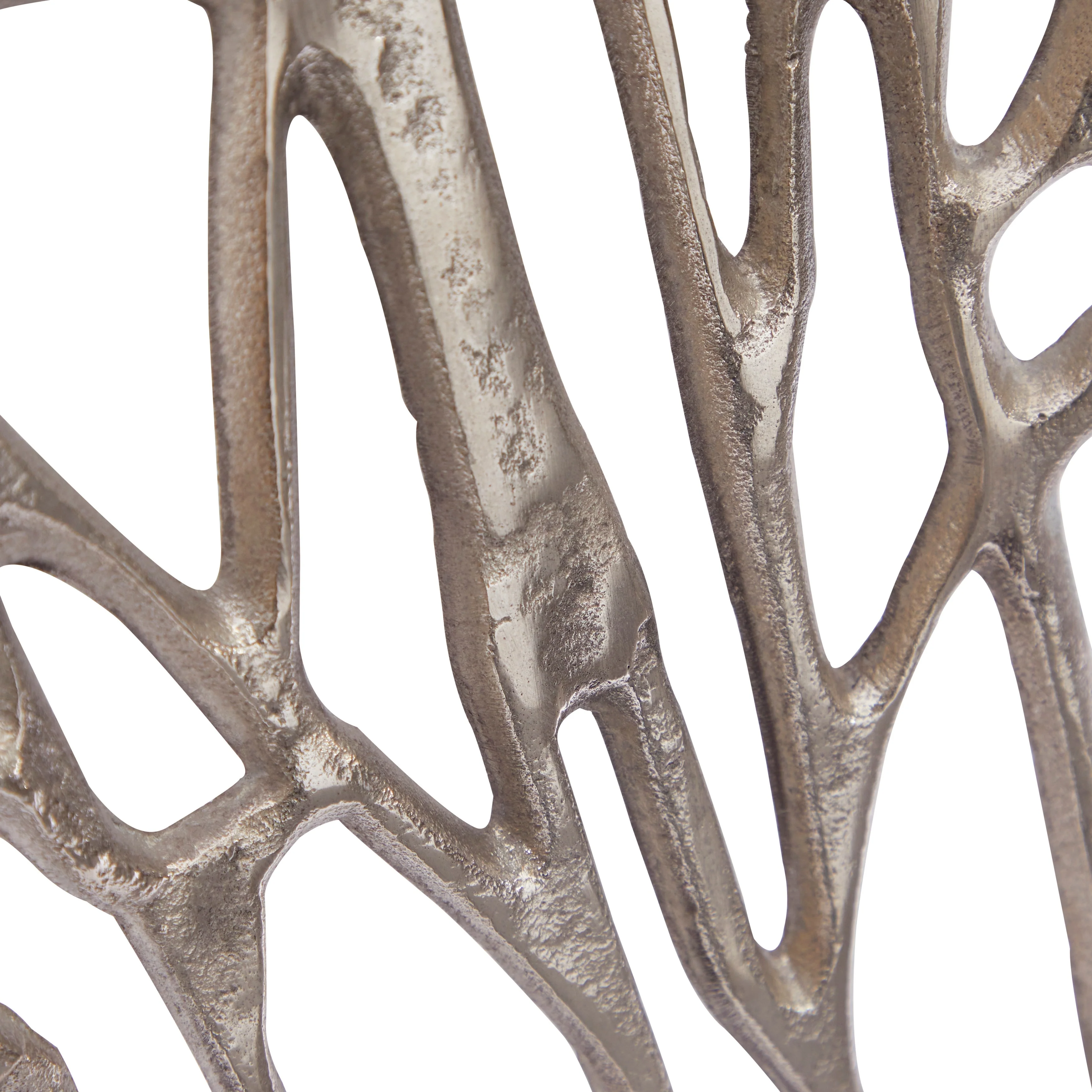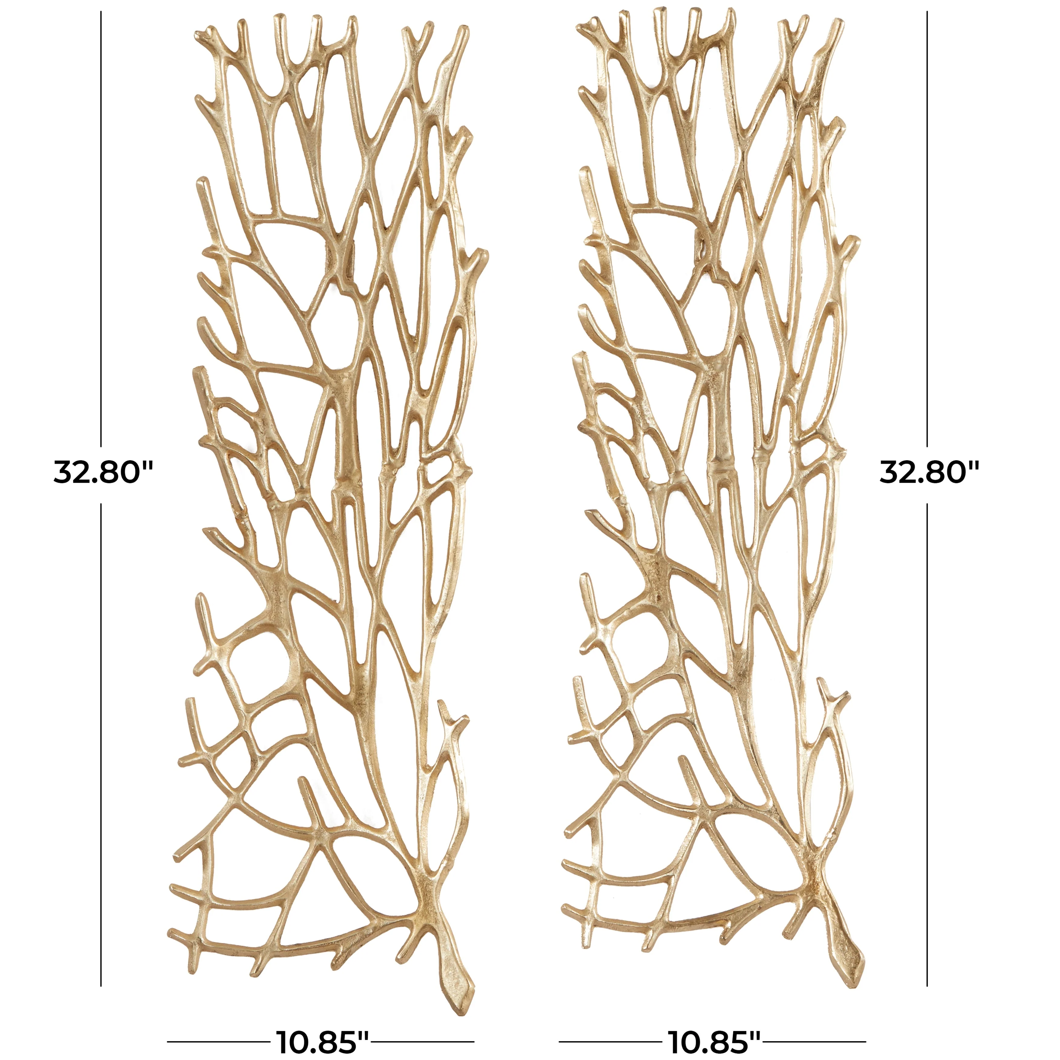 Enhance your living space with this pair of coral-inspired wall sculptures, perfect for accenting a mantel or making a statement on vibrant walls. This duo arrives in a single carton and is ready to be displayed vertically, using the integrated keyholes. Please note that mounting hardware is not included. These items are designed for indoor use only and arrive fully assembled. Crafted in India, these aluminum wall ornaments boast a contemporary style and are finished in an elegant gold or silver tone. This set includes two pieces.