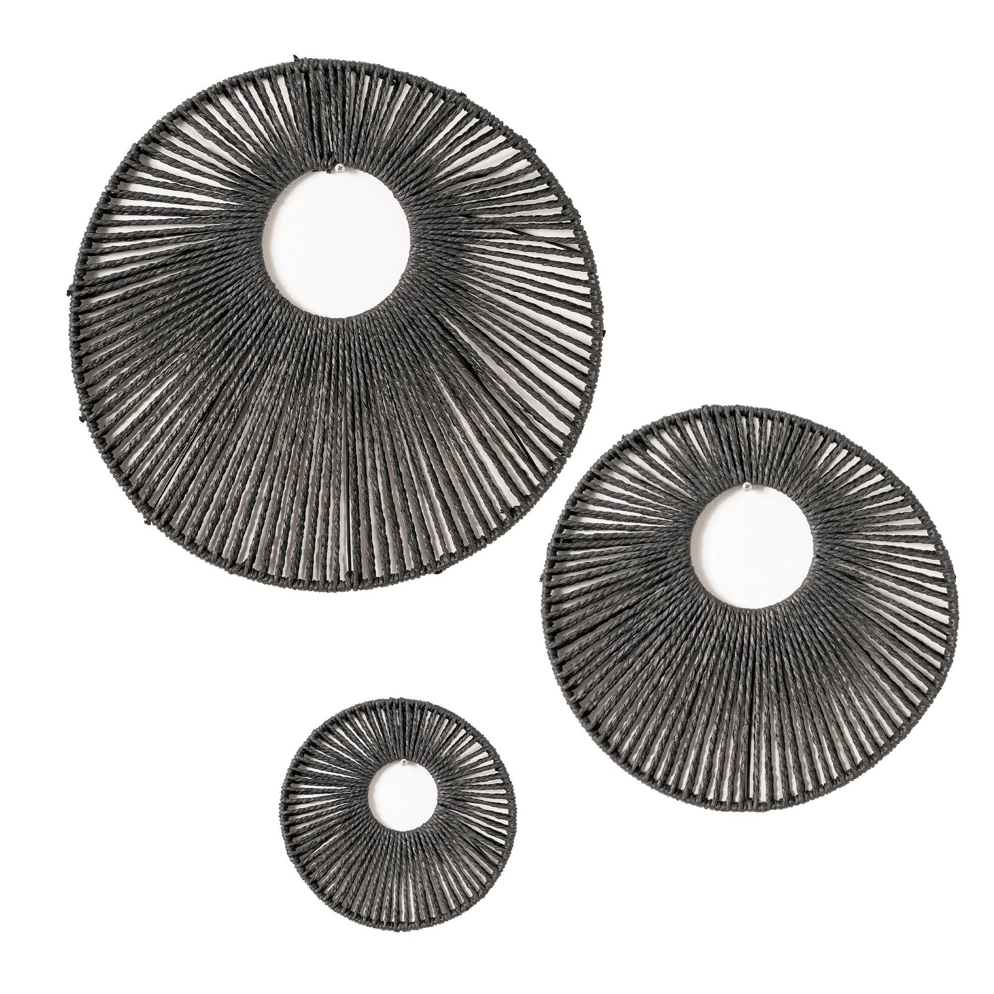 Add an element of natural texture to your space or as a gift for someone else with this farmhouse hanging baskets wall art crafted in paper rope and shaped around a metal structure. Elevate dulling traditional looks in the bedroom, dining room, or living with this piece's eclectic appeal and multi-functional application.