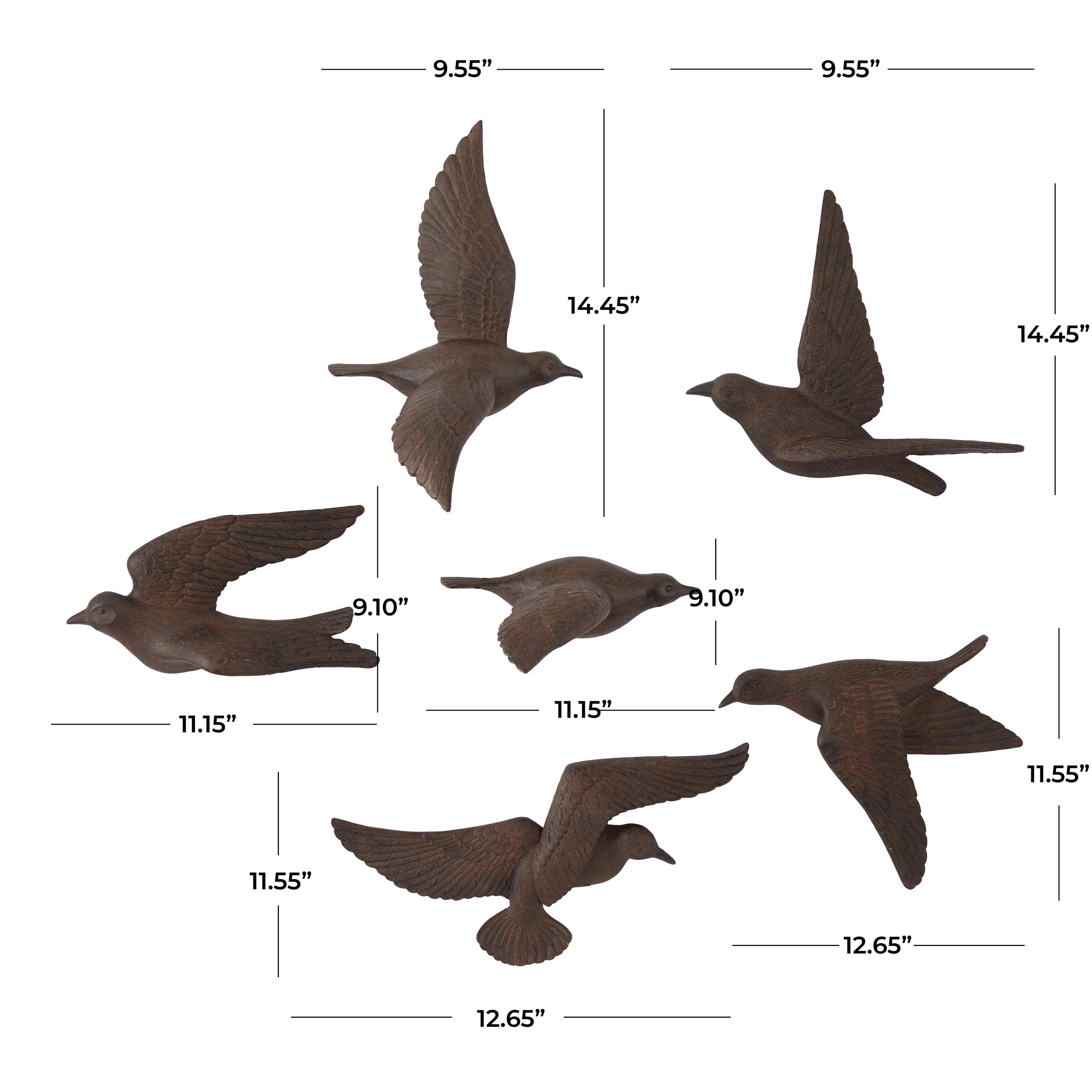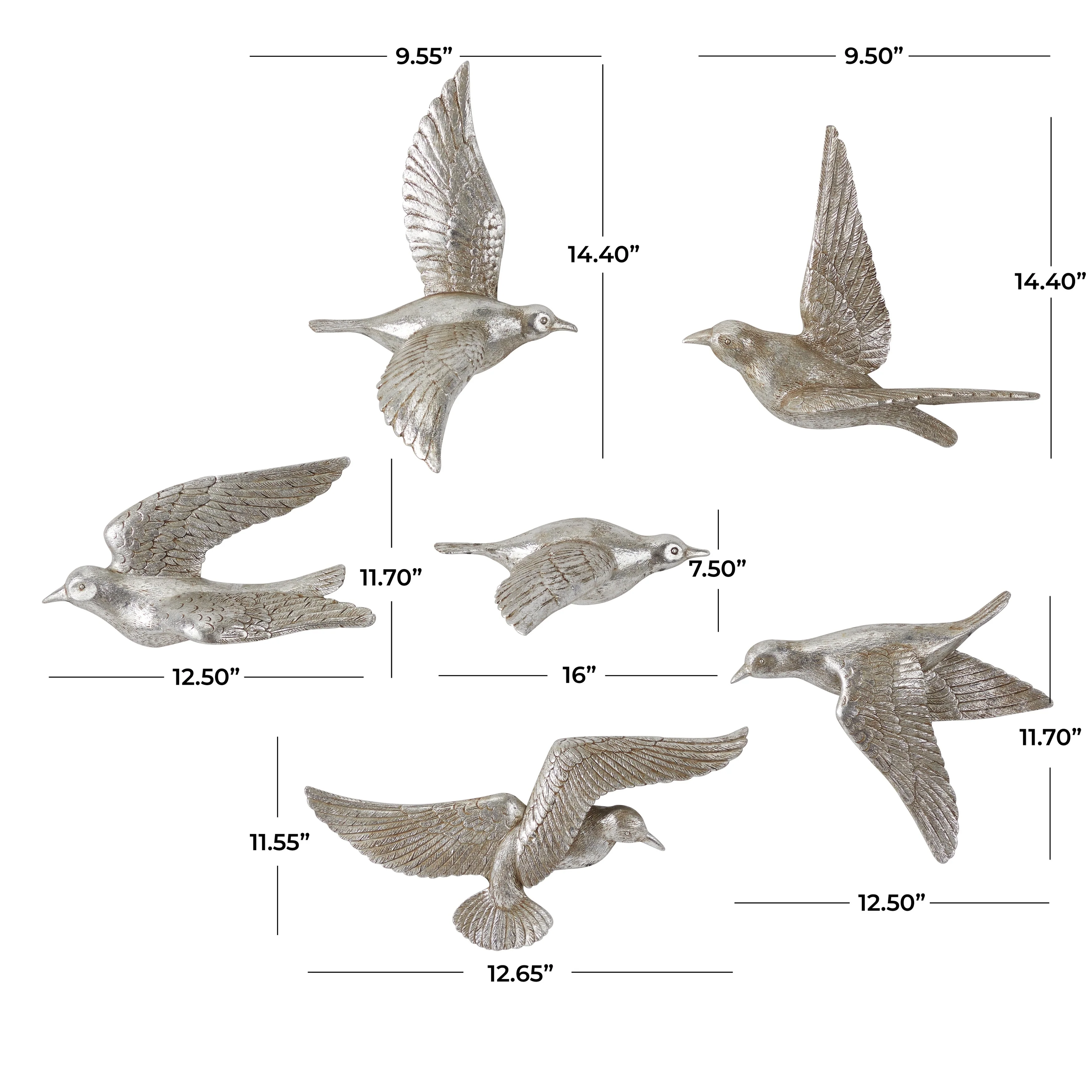 - Contemporary decorative sculptures featuring bird figurines in different flying positions with detailed facial, body, and wing characteristics