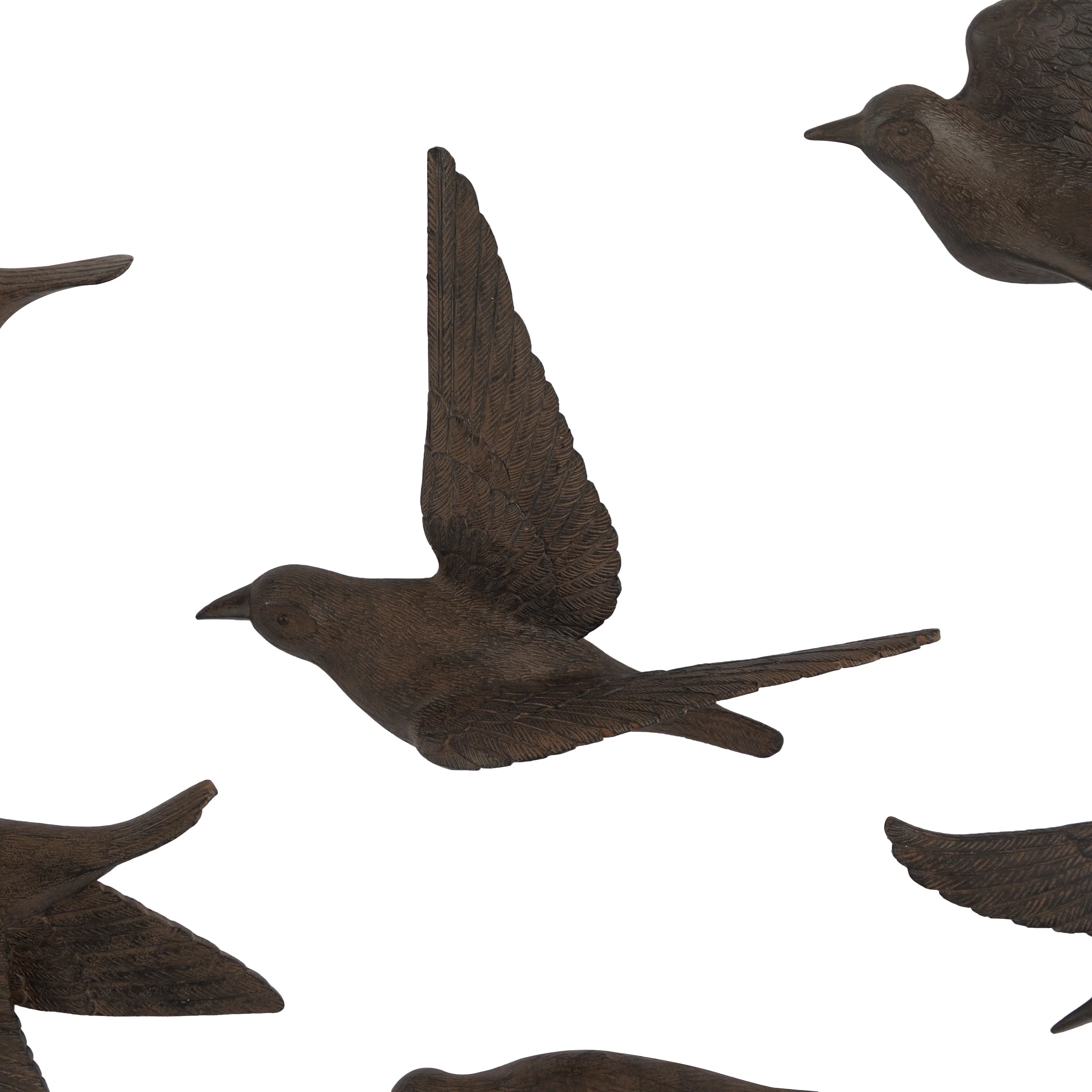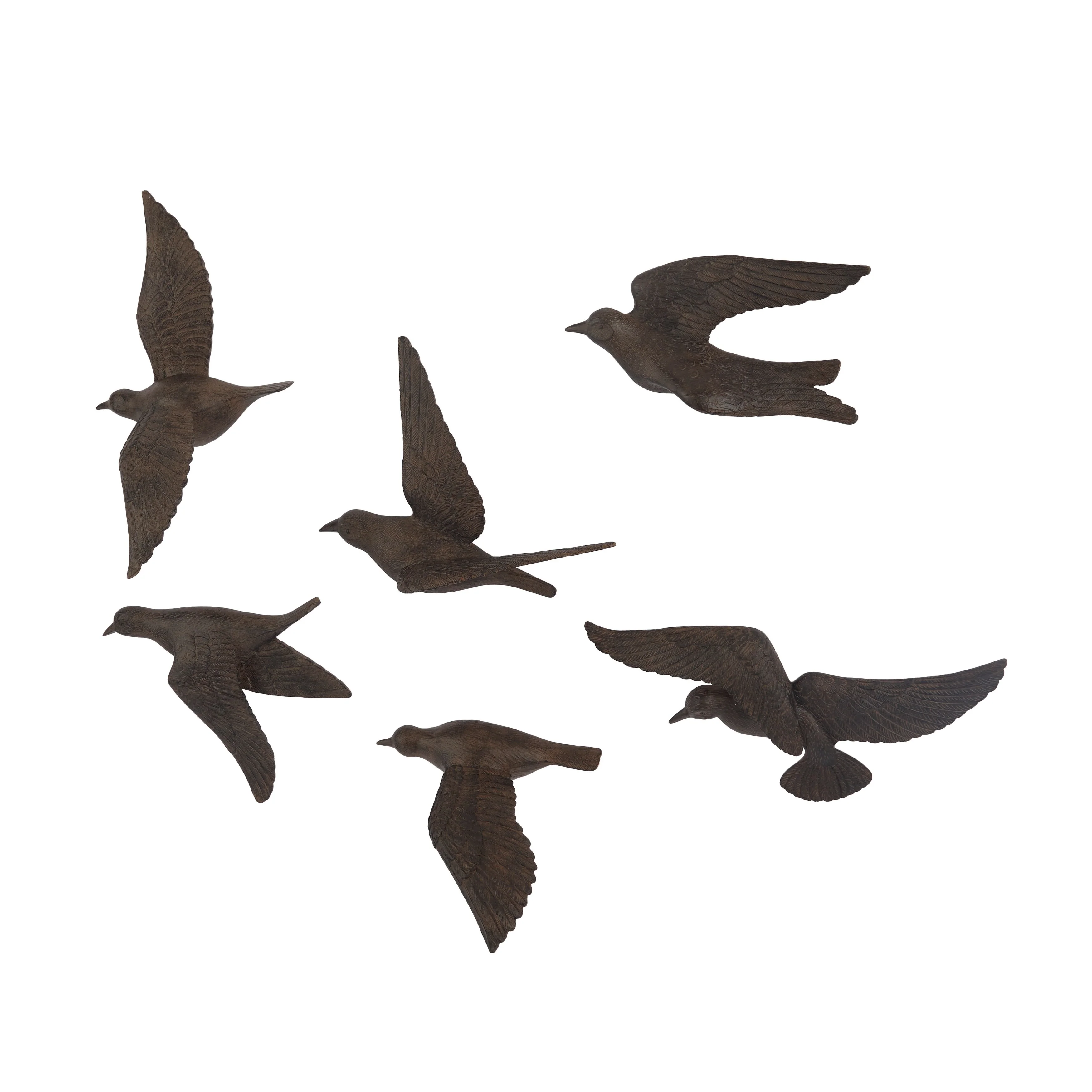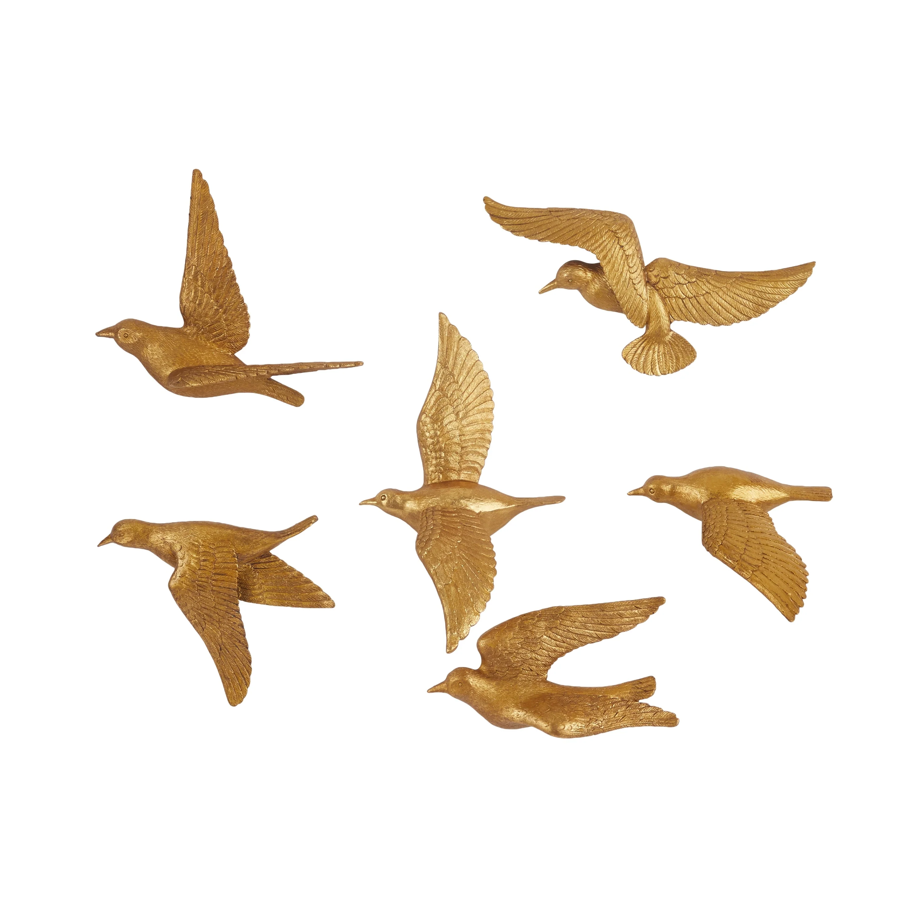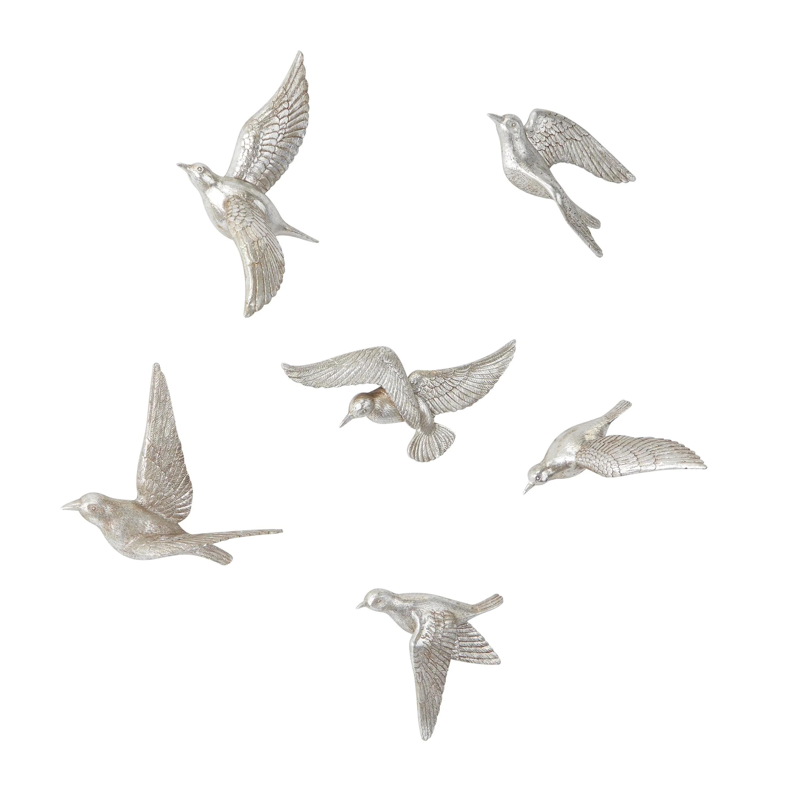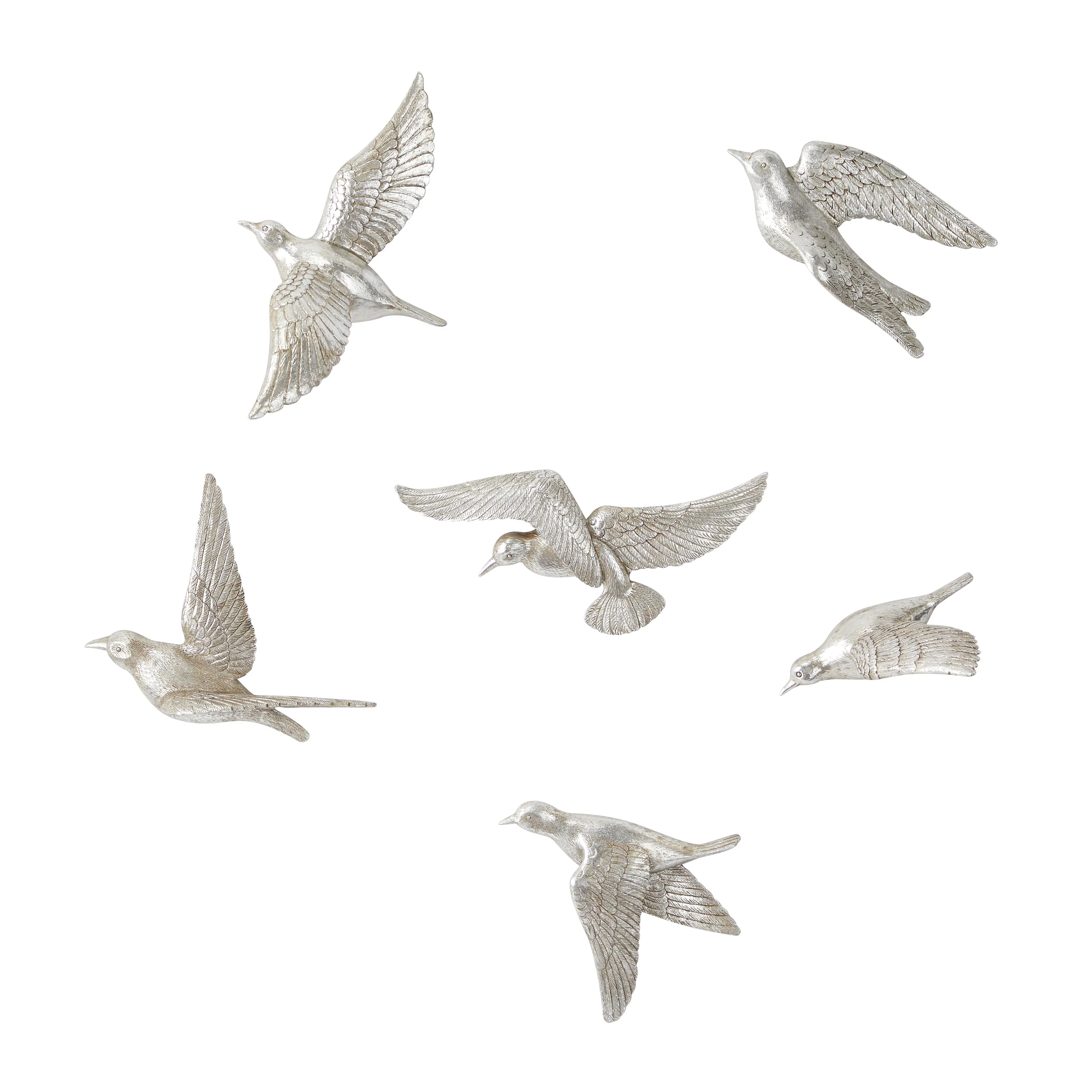 Make an instance home refresh with this whimsical wall decor for a welcoming look. Create a balanced space in the most creative way with this expertly crafted wall decor for captivating focal point. Resin bird sculpture set that personalizes your living and work space by adding character, charm, and positive energy to any room. This item ships in 1 carton. Can be hung vertically or horizontally using the keyholes on the back; nails and screws not included. Suitable for indoor use only. This item ships fully assembled in one piece. This colored wall sculptures comes as a set of 6. Contemporary style.