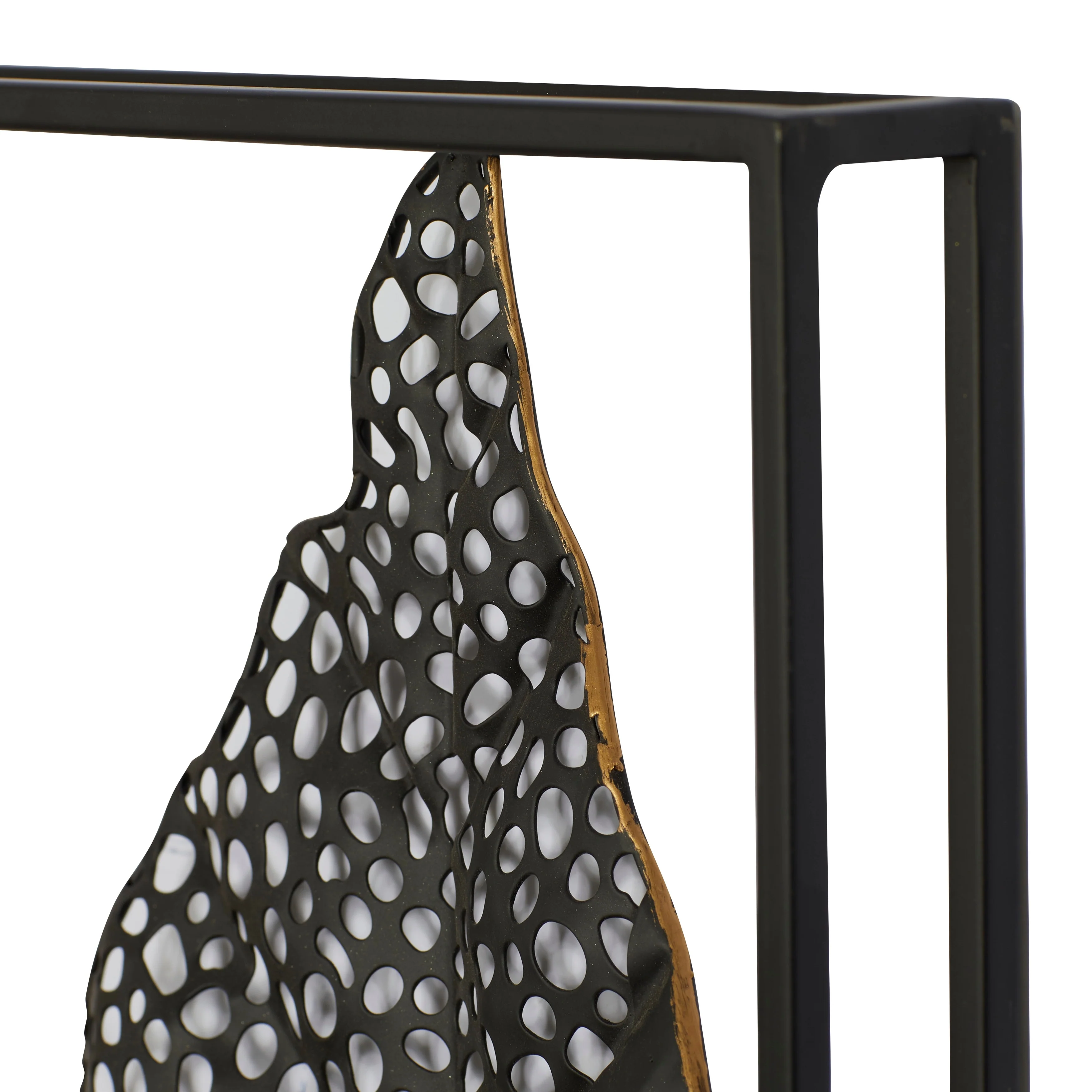 Create an excellent focal point on your walls paired with some cute accent tables, and level up your home with this amazing wall decor . It makes a great centerpiece over your sofa or in your dining room . Place this beautiful wall decor set in any room of your shabby chic inspired home and get an instant boost of style. Designed with a black metal frame. Easily hanging using hanging hardware on the back. Contemporary design. Hardware on the back allows for easy hanging. This item comes shipped in one carton.. Features a shabby chic style inspired design for that elegant vibe. This beautiful wall decor is crafted from the finest metal materials. This beautiful wall decor comes in a black finish with a luxurious gold accent. This metal wall decor features dark shaded leaves sporting small circular patterns while some leaves are in gold and are designed with their natural venation pattern for a natural look in luxurious gold. Wall decor measures 38'L x 3'W x 26'H and weighs 7 lbs