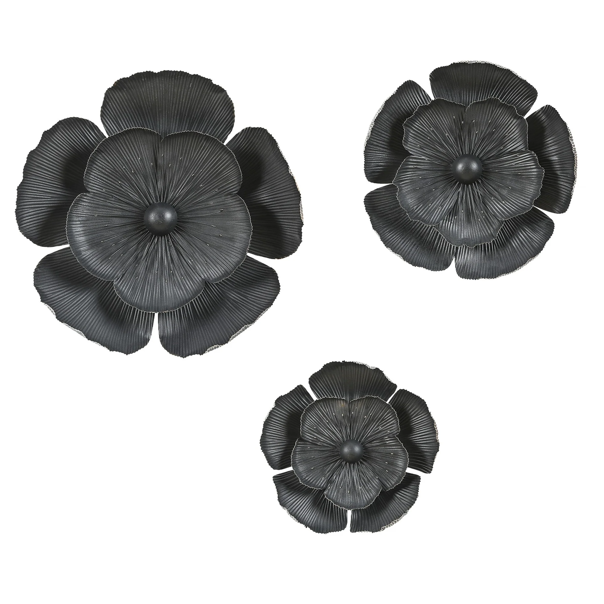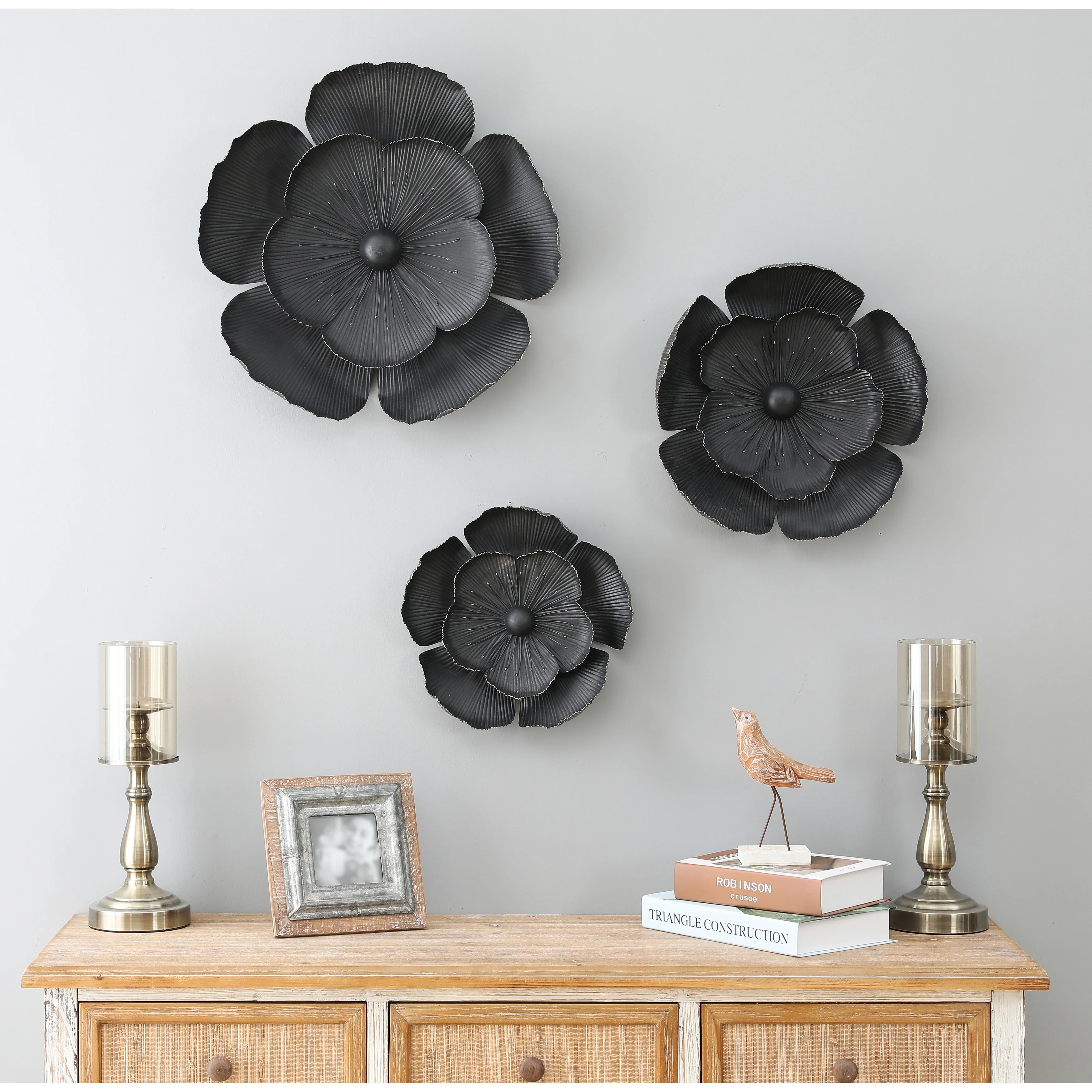 - This collection includes three decorative metal wall sculptures designed as flowers, adding elegance and charm to any space.