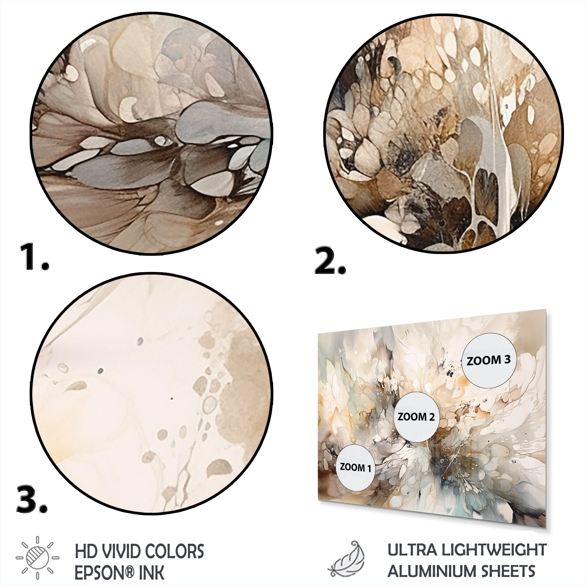 - High quality digital images are created directly into a glossy aluminum panel, producing a stunning and captivating print in the glossy finish of the metal