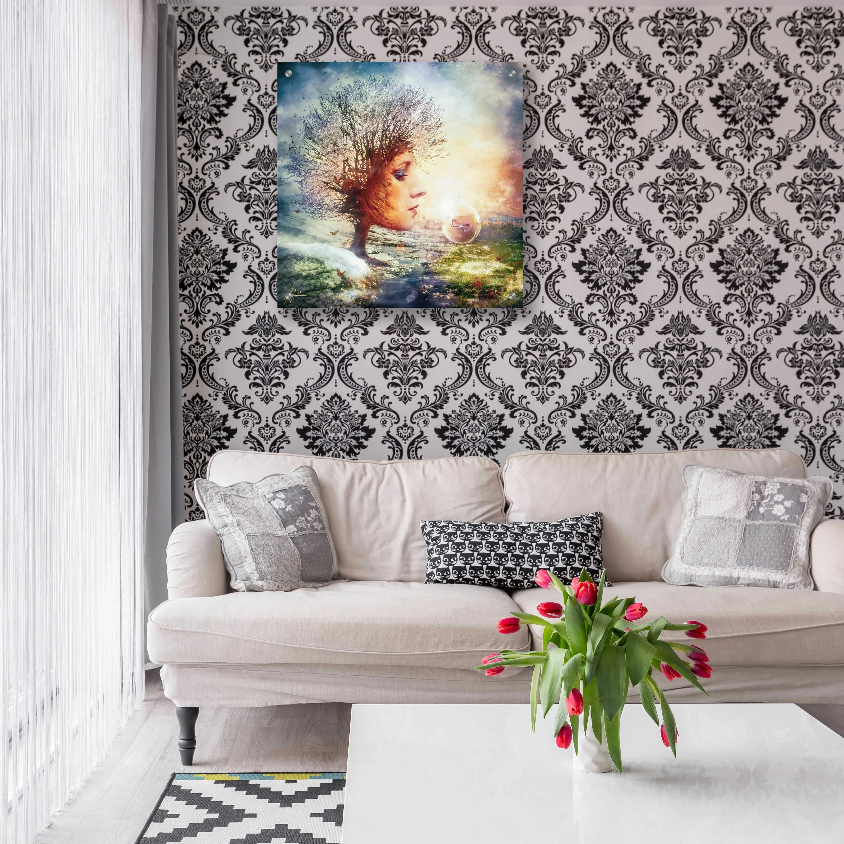'Treasure' by Mario Sanchez Nevado. Mario delivers some of the best surreal artworks of the digital era, but it's his sensitive but caustic approach to storytelling that makes his style to be an unique emotional experience. Acrylic wall art looks amazing in your home or business. Printed on the back of the acrylic giving it depth and easy maintenance. The highly durable and hard-to-damage qualities make high definition acrylic the ideal wall art for hotels, rental properties, and restaurants. Now Epic Art brings you unmatched value in contemporary wall decor for your home as well. From small sizes to extra large sizes, it is easy to hang, won't shatter like glass if it ever falls down, and is easy to maintain. Simply dust it off or use a damp soft cloth for cleaning.