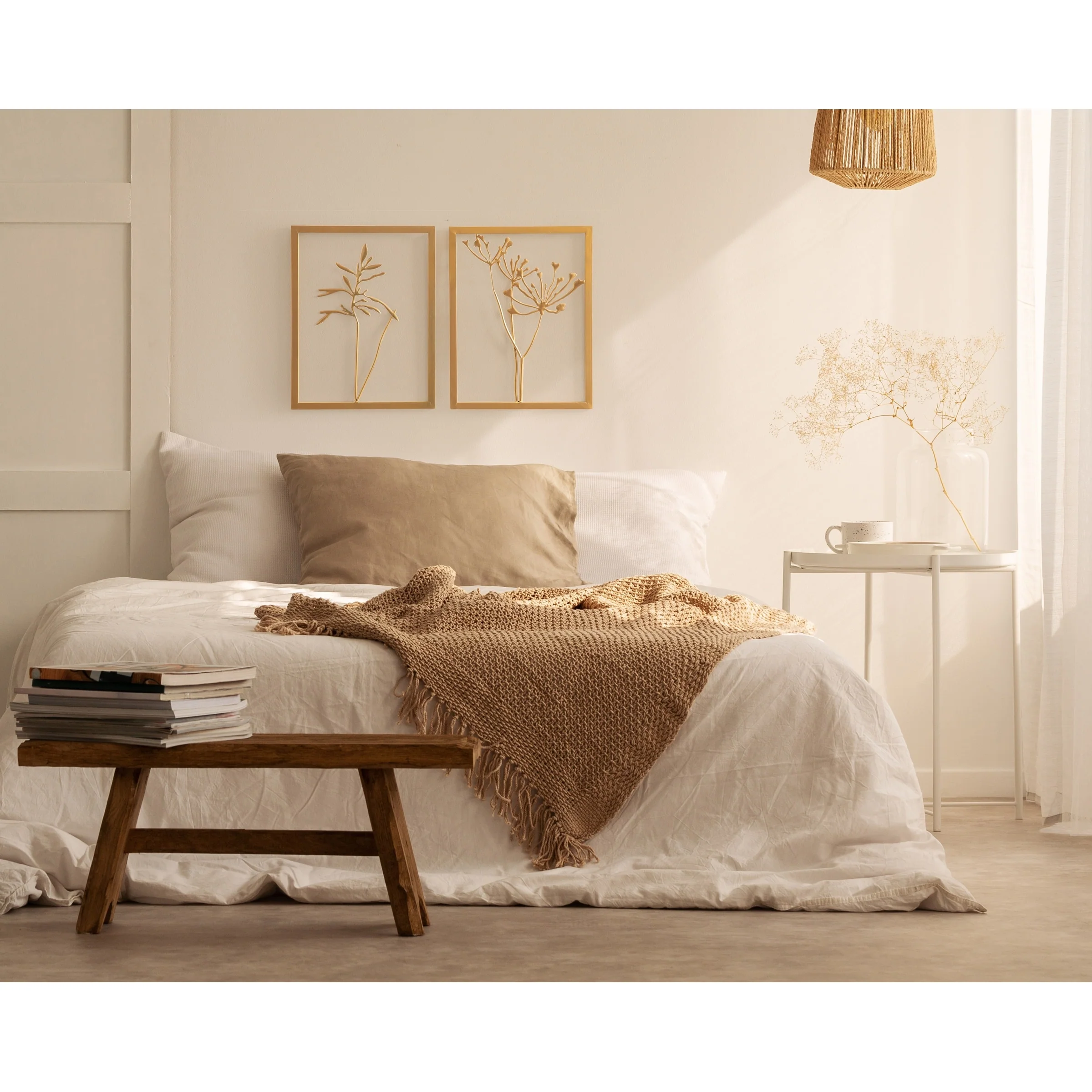 Elevate the run-of-the-mill wall art in your home with an art set that is unexpected, chic, and high-quality. The Malak art set is a lovely natural accent that is crafted with industrial, sturdy metal construction. The metal design allows the botanical, floral piece to have an added bit of dimension to it, providing a unique drop shadow behind its profile throughout the day. Use this decorative set of art to give a beautiful, natural appeal to any industrial or modern space, such as your living room, bedroom, entryway, dining room, bathroom, or kitchen. The different yet cohesive designs are excellent for displaying together or throughout your home for a consistent decor aesthetic in every room. This collection of nature art is lovely in a display of multiples, creating an unmatched wall gallery that your guests won't help but discuss. Hang the Malak art set in a mere matter of minutes with the convenient metal sawtooth hangers conveniently attached to the back of each frame.