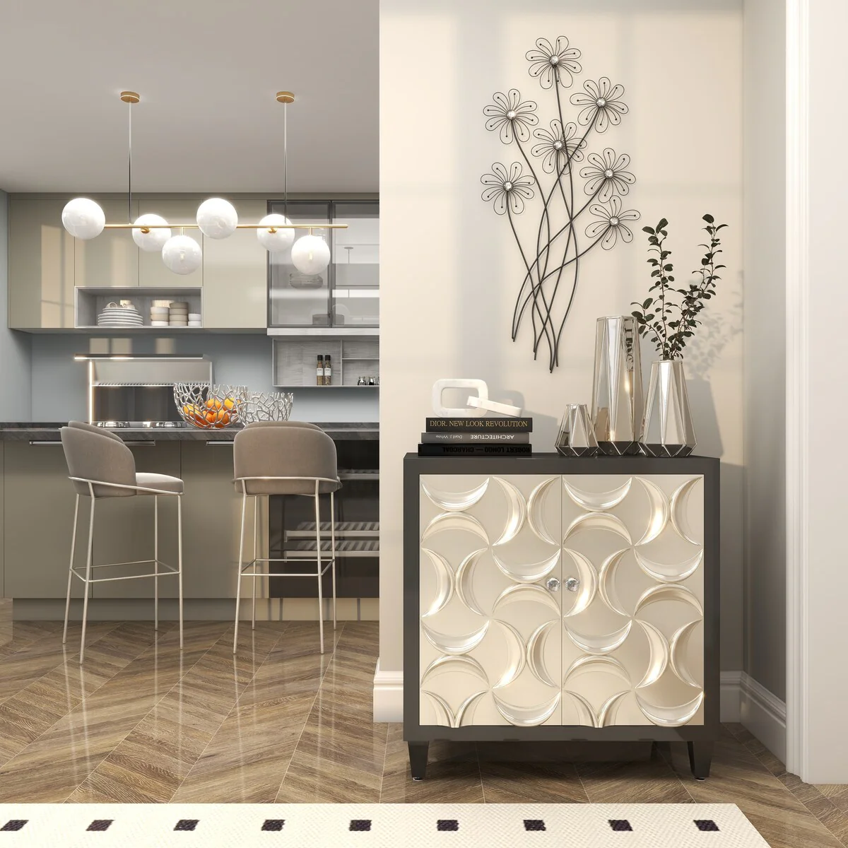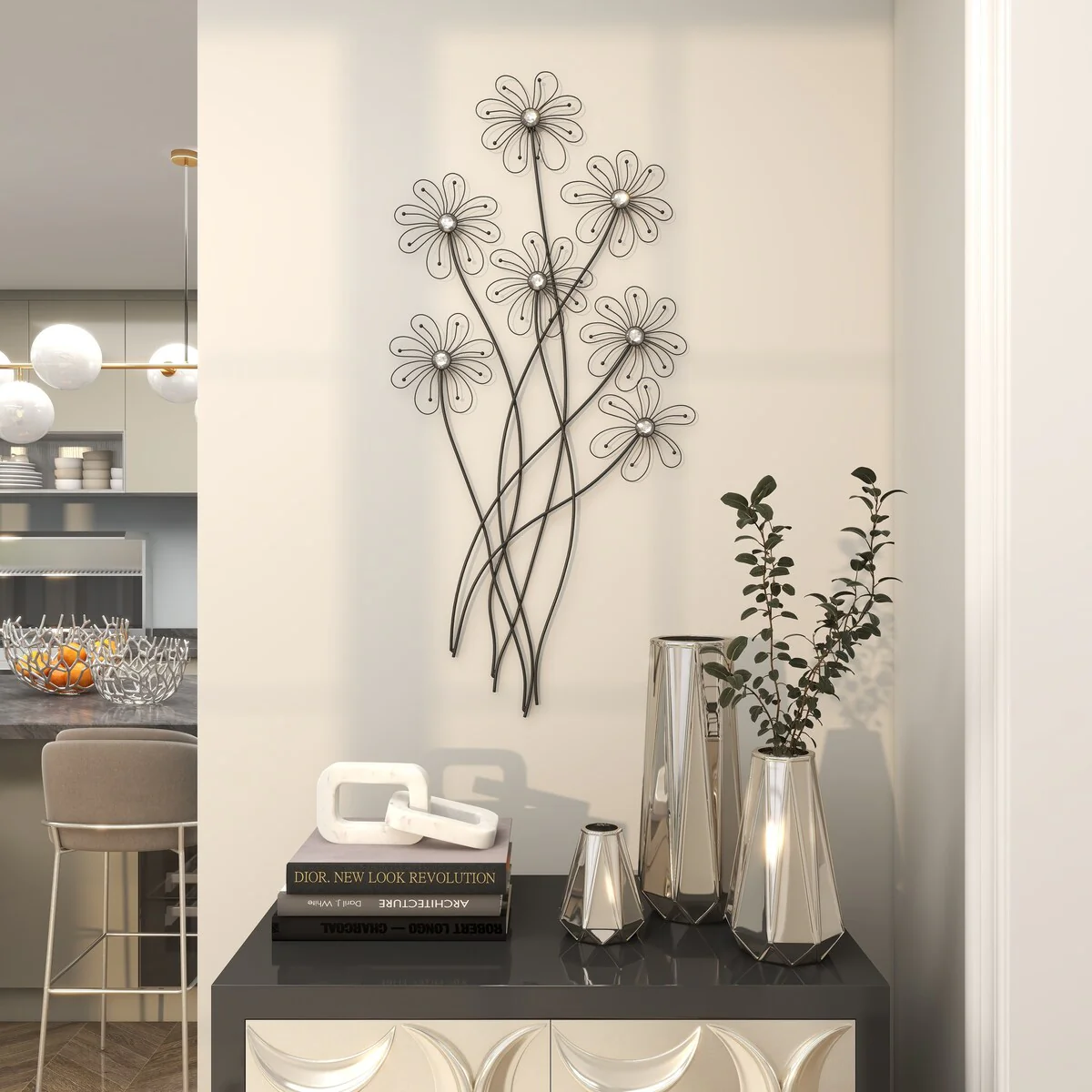 - Iron wall décor features a seven-flower design that brings a fresh and modern aesthetic to your home