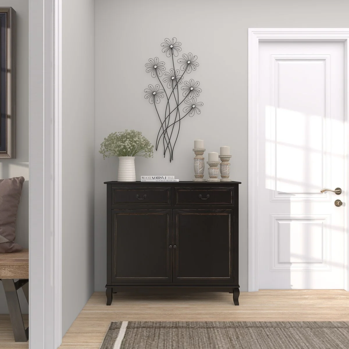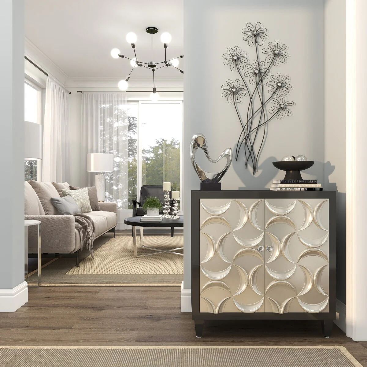 Enhance your modern interior with this striking floral wall sculpture, perfect for making a bold statement against neutral-toned walls. The piece arrives in one carton and is ready to hang vertically using the built-in keyholes; please note that nails and screws are not included. Designed exclusively for indoor use, this sculpture comes fully assembled as a single black-colored piece. Embrace contemporary style with this eye-catching wall art.