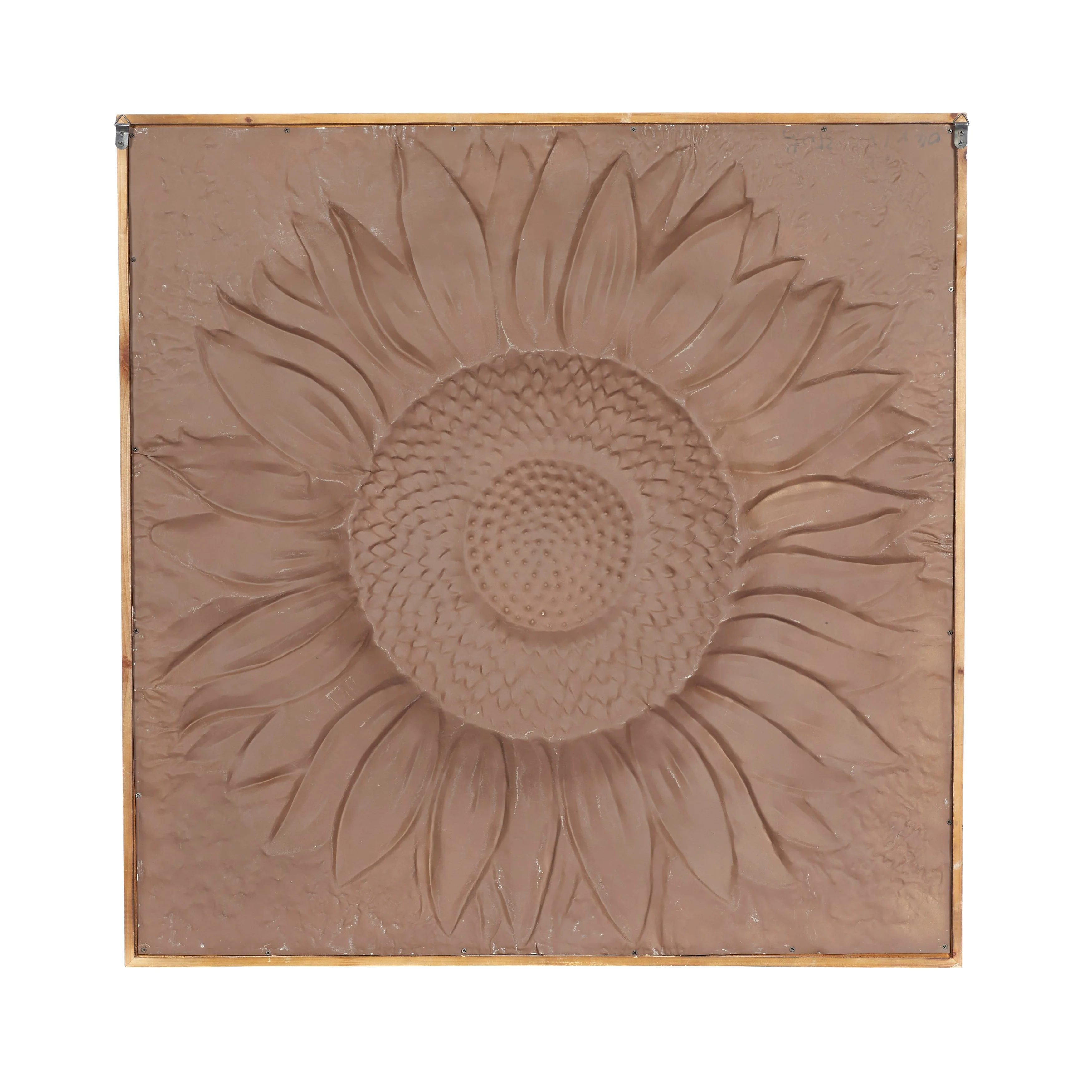 - Square decor for wall showcases a striking satin gray finish, with its dark silver metal sunflower highlighted by metallic gold brushstrokes and brown frame