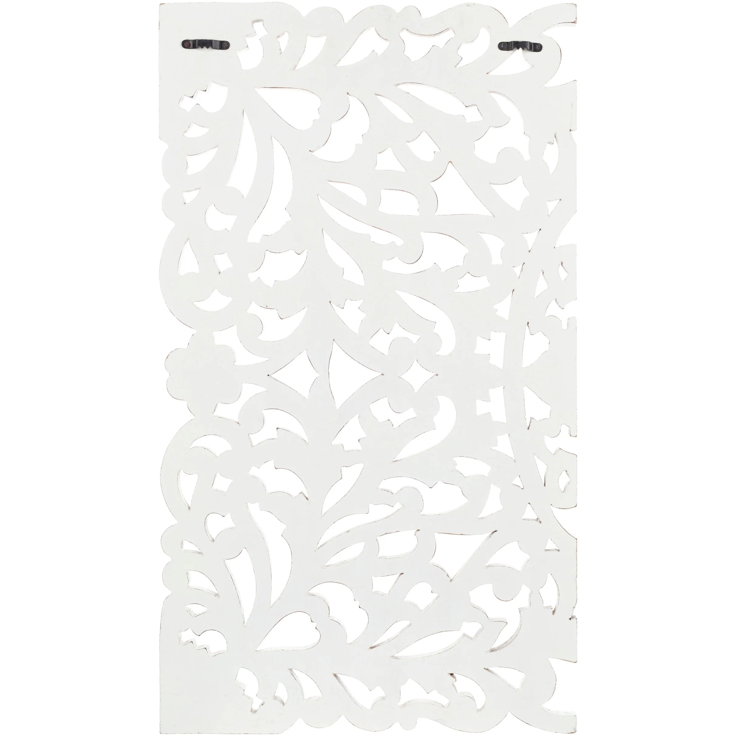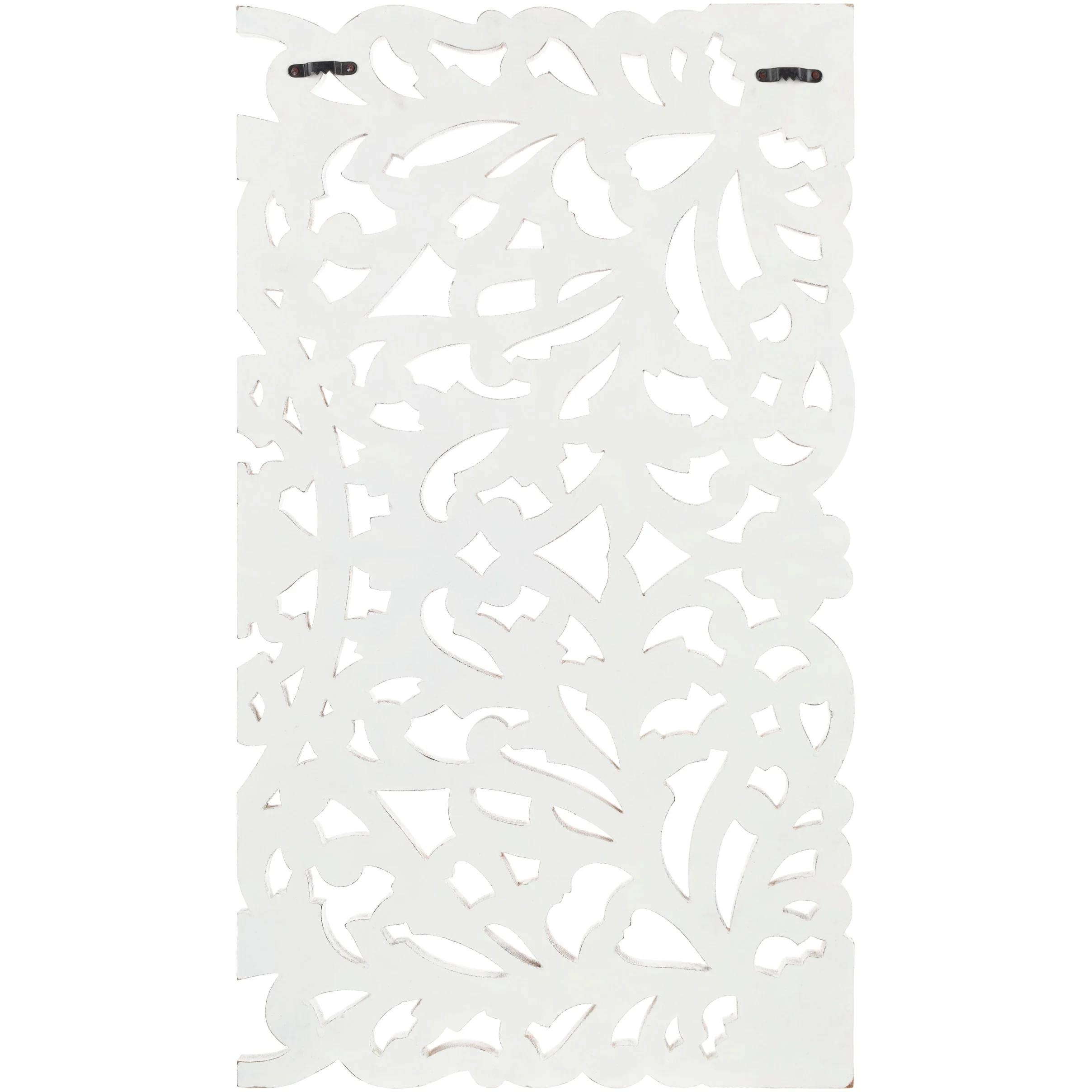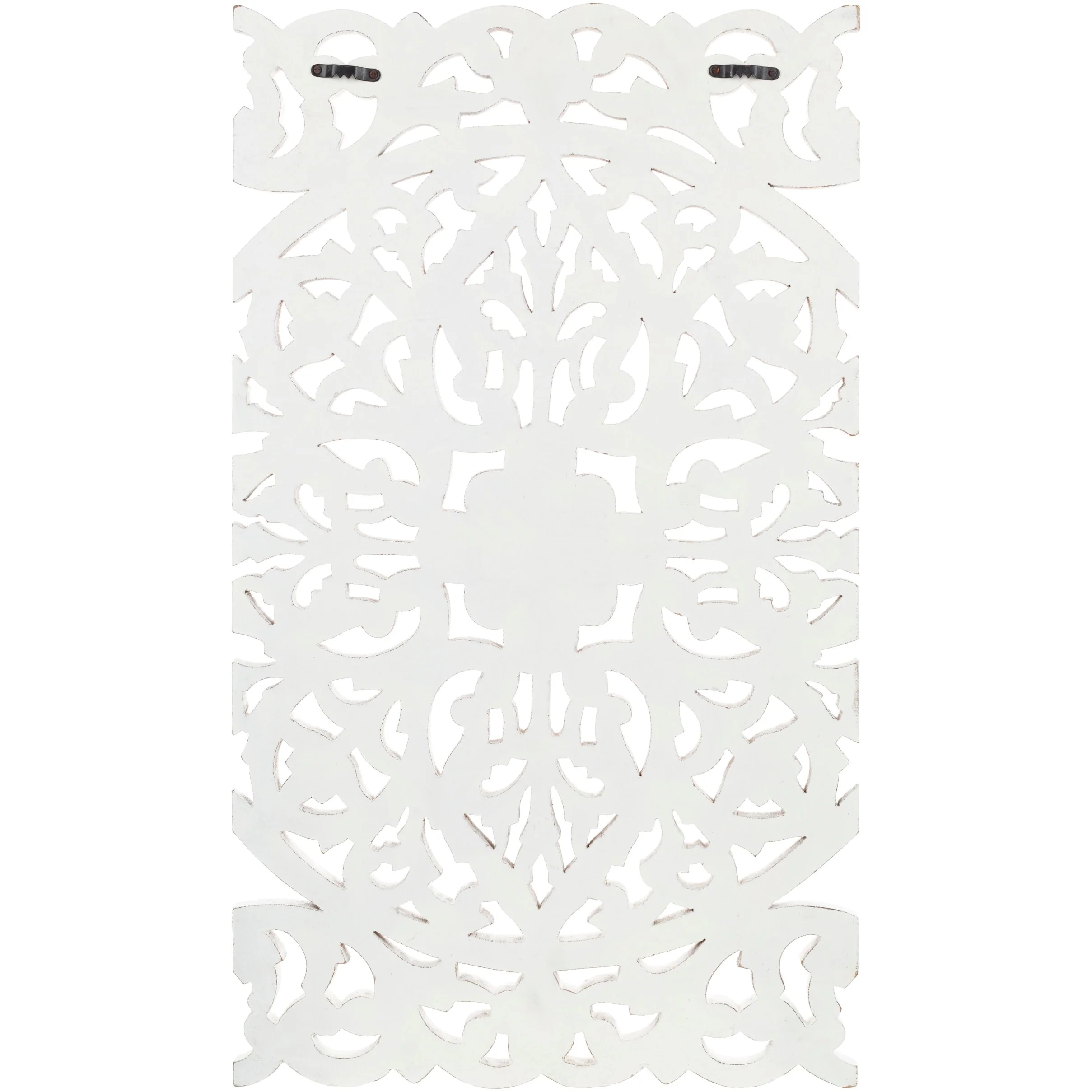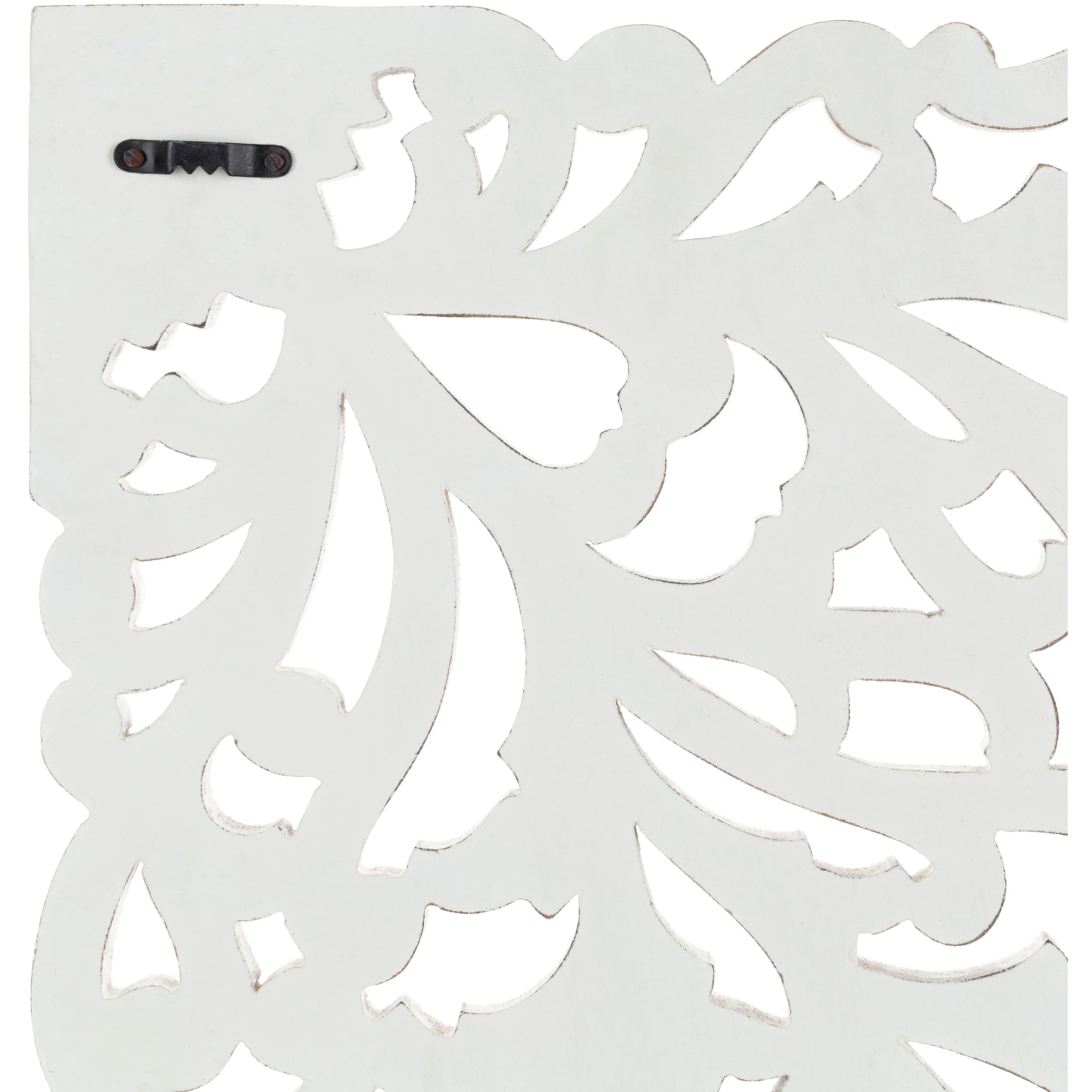The elevated look of the Norma wall panels brings a wow factor to any space. This ornately-carved wood wall decor consists of 3 large wood panels. Each panel is hand-carved by an artisan giving it an antique feel. The intricate motif consists of festoon and acanthus in a distressed finish. It reinterprets the original, iconic Indian wood carving to an understated yet substantial motif. At 48 by 30 inches in total, it is an impressive addition to any room. To give it a modern appeal these panels are hand-finished by an artisan in tasteful, distressed finishes. Available in in a white wash finish. Individual panels are 16 inches wide. Wipe clean with a dry cloth.
