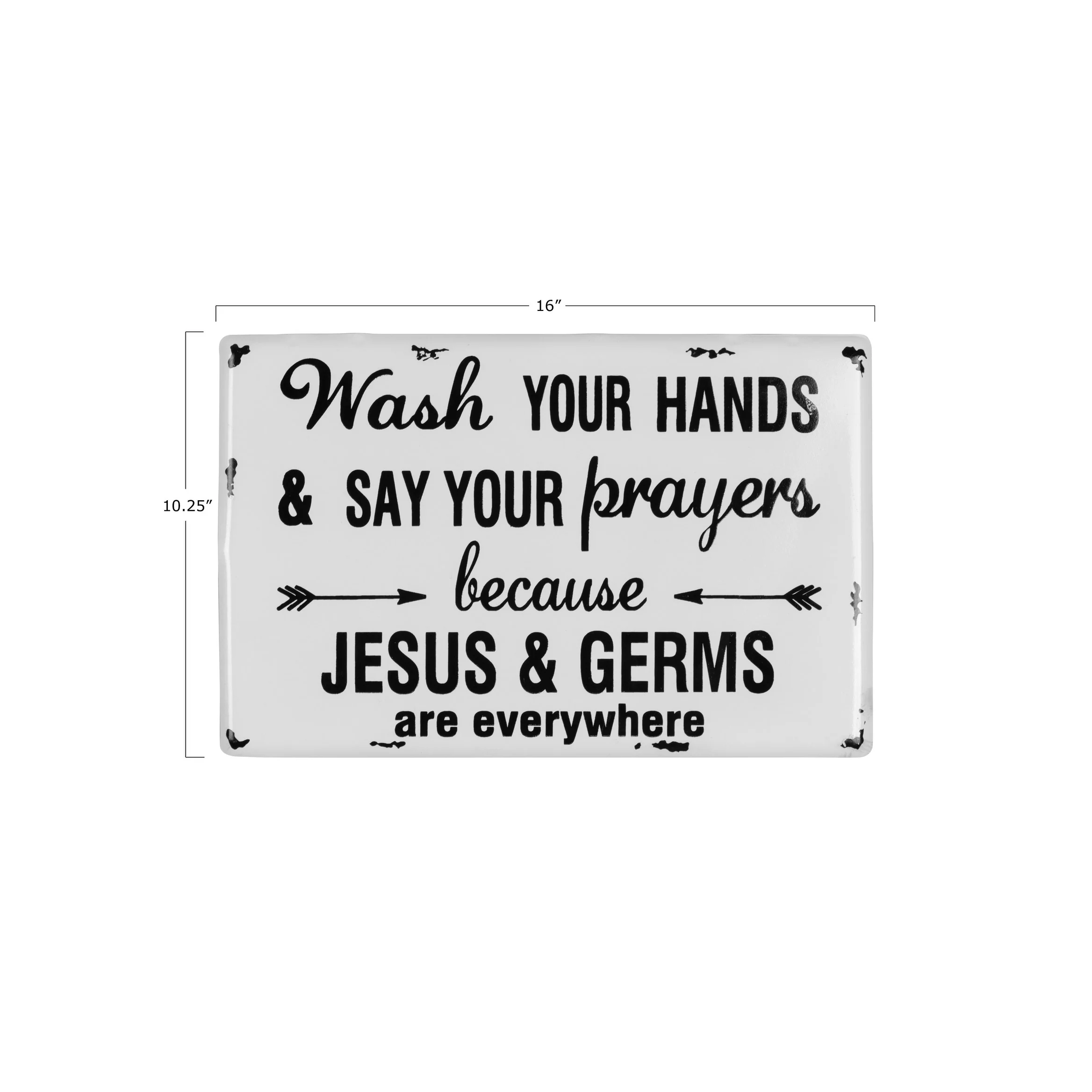 Wash Your Hands & Say Your Prayers Because Jesus & Germs are Everywhere Metal Wall Décor