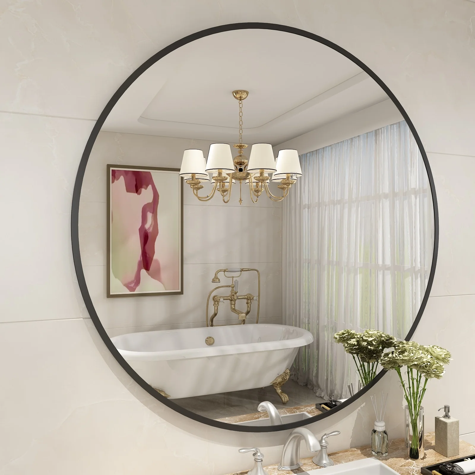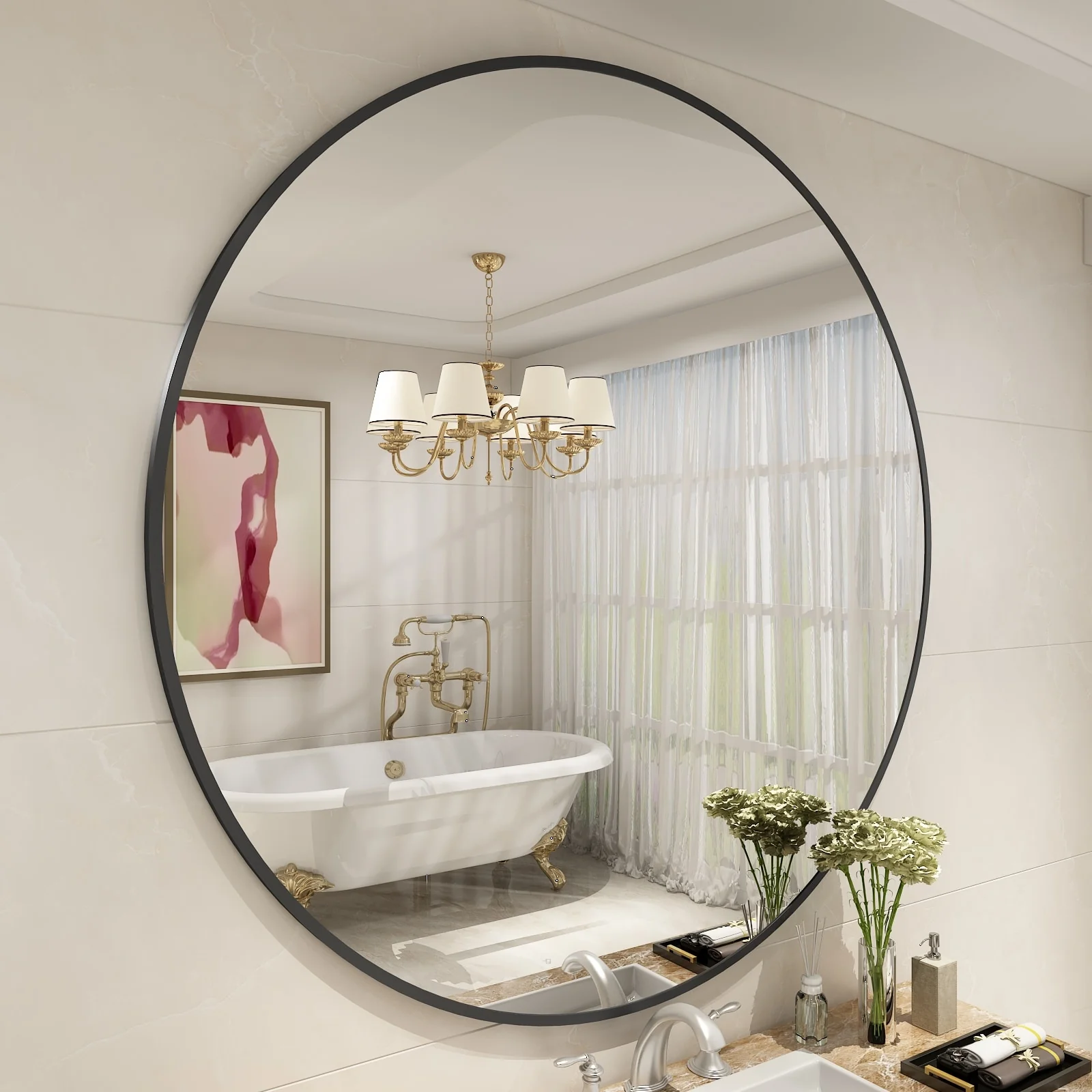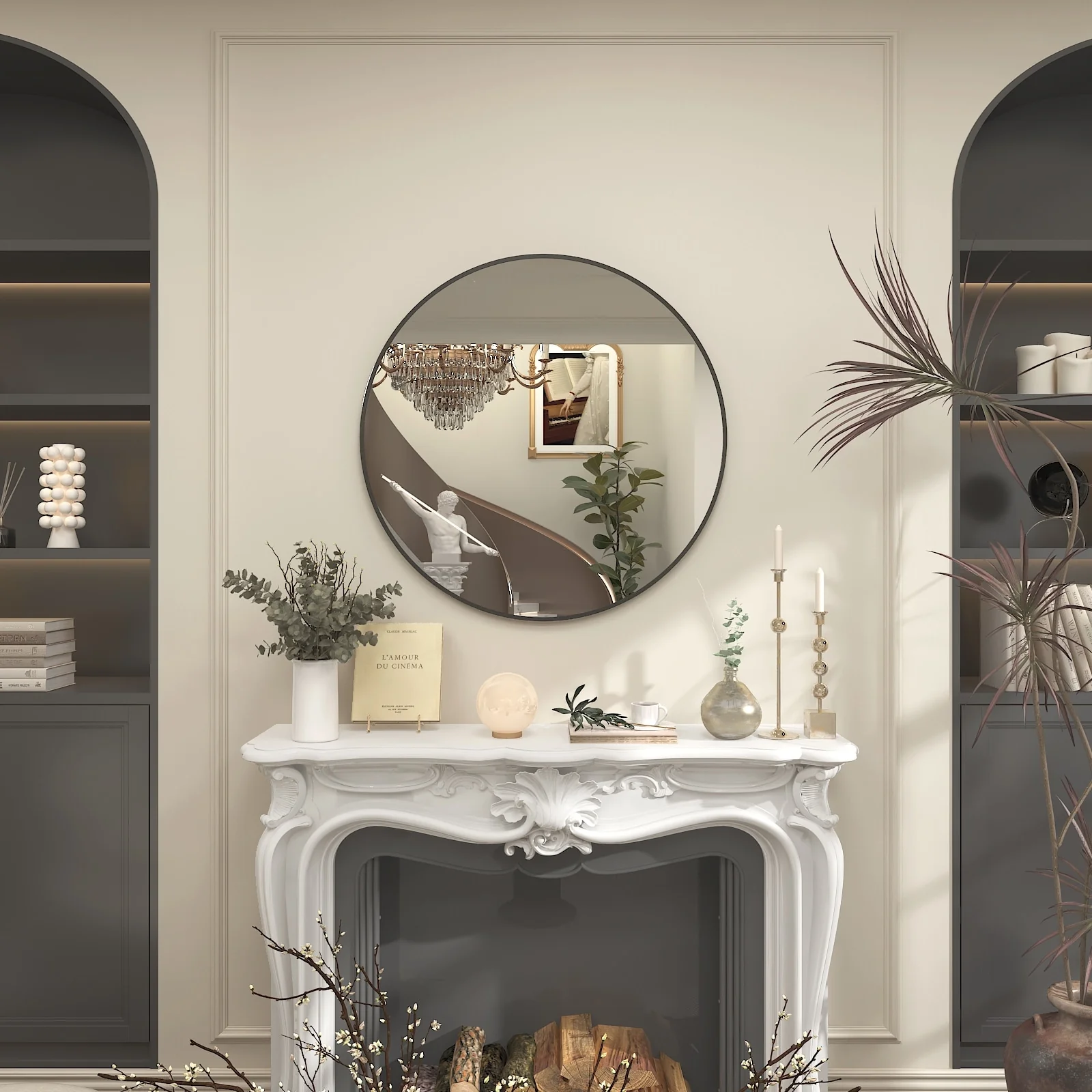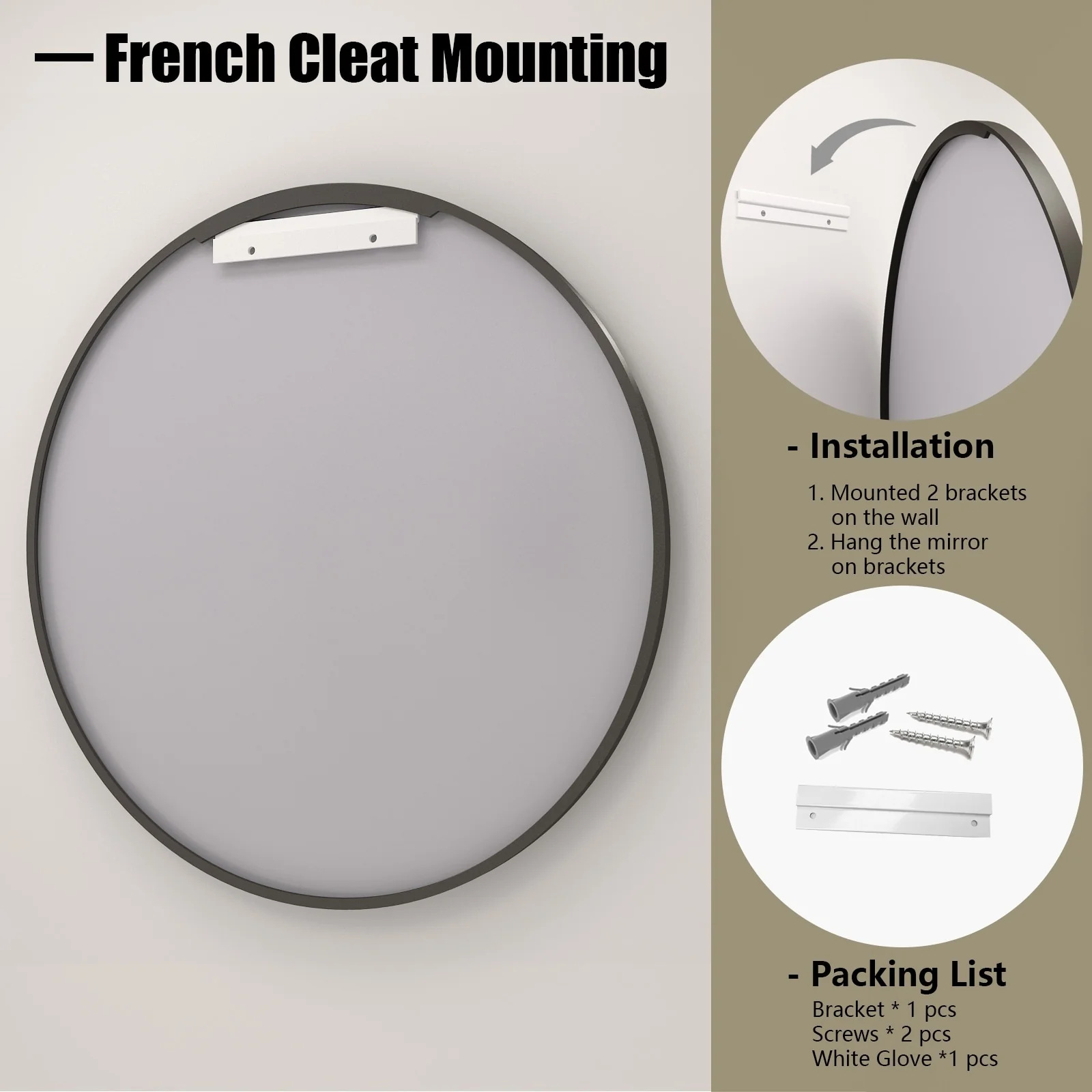Classic round black frame mirror adopts powder coating aluminum alloy frame which makes it a brushed metal texture, waterproof and rustproof. Our Copper-free silver wall mirror is HD reflection with no distortion. Our mirror can be wall mounted horizontally or vertically with French Cleat mounting bracket. It is suitable for various decoration styles and scenarios.
