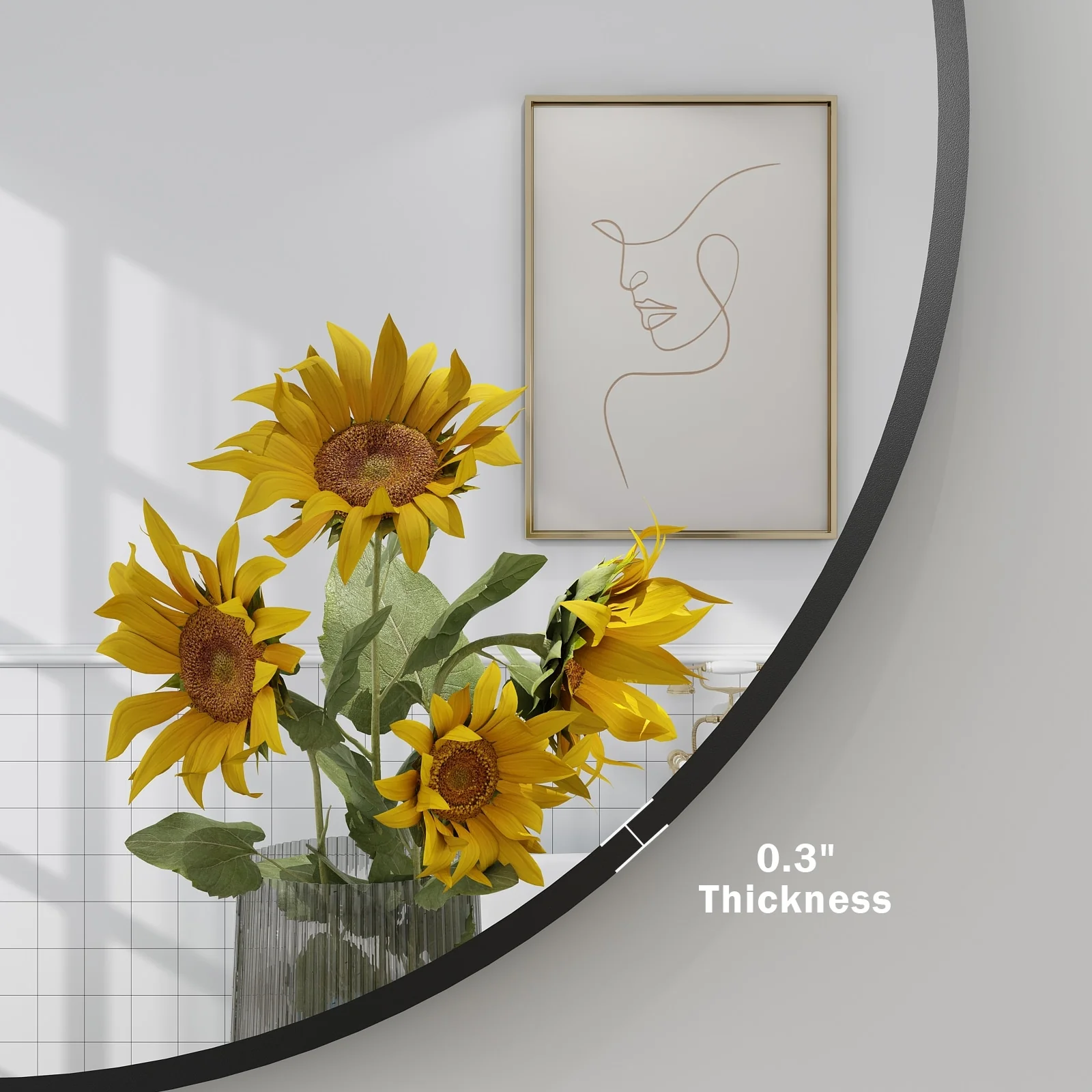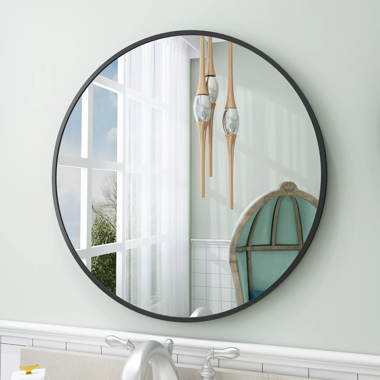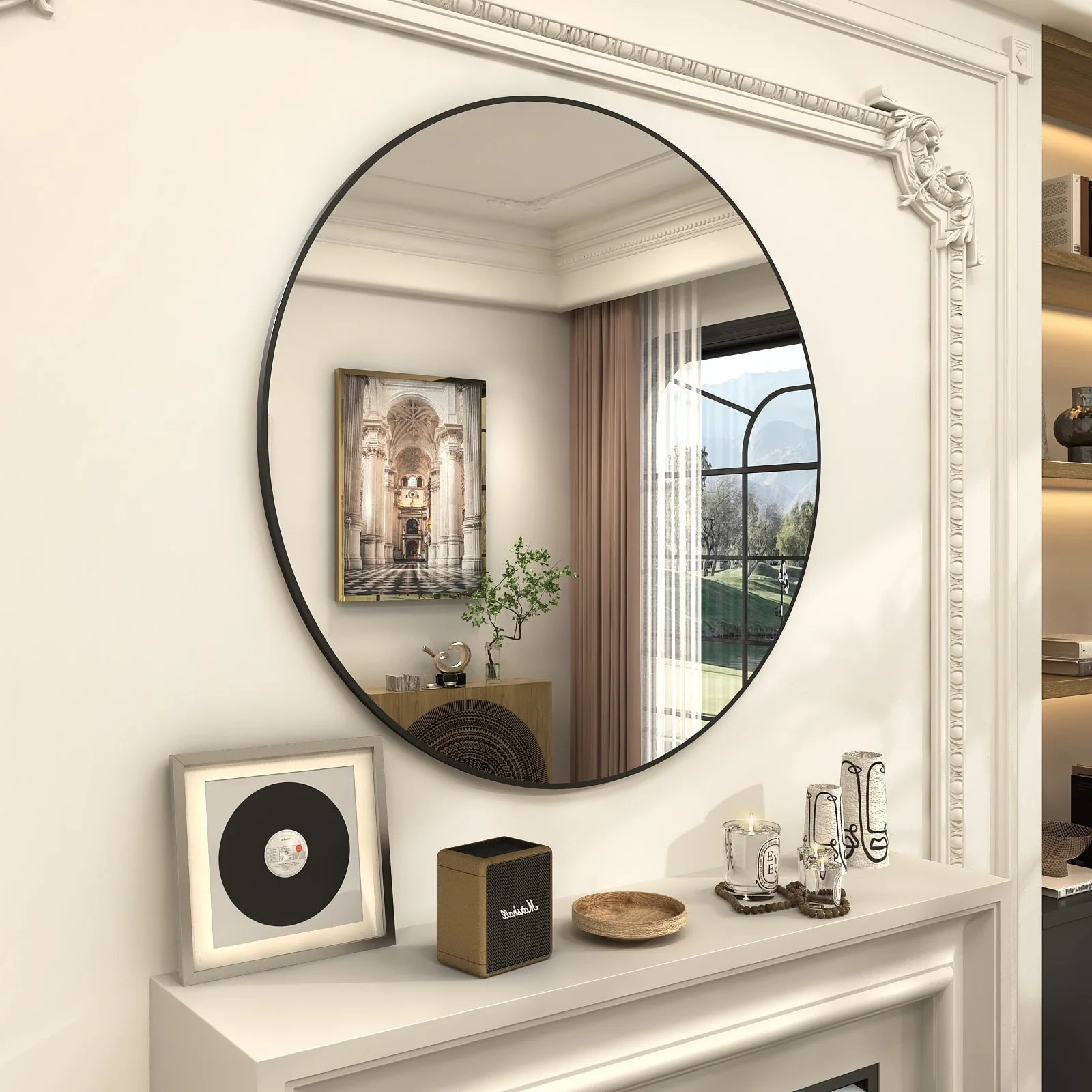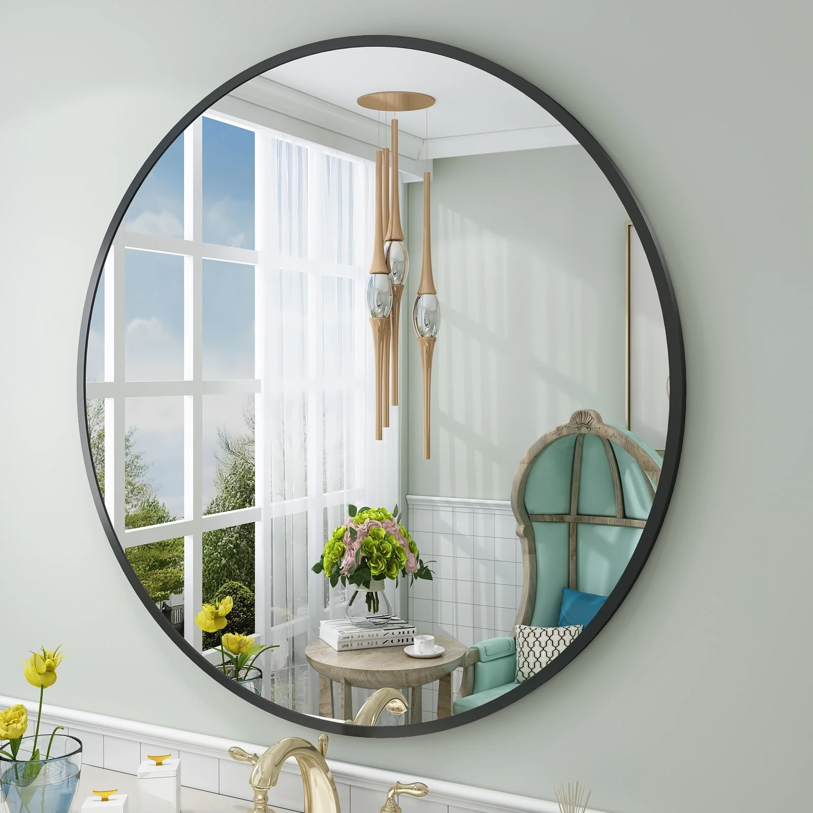 Classic round black frame mirror adopts powder coating aluminum alloy frame which makes it a brushed metal texture, waterproof and rustproof. Our Copper-free silver wall mirror is HD reflection with no distortion. Our mirror can be wall mounted horizontally or vertically with French Cleat mounting bracket. It is suitable for various decoration styles and scenarios.