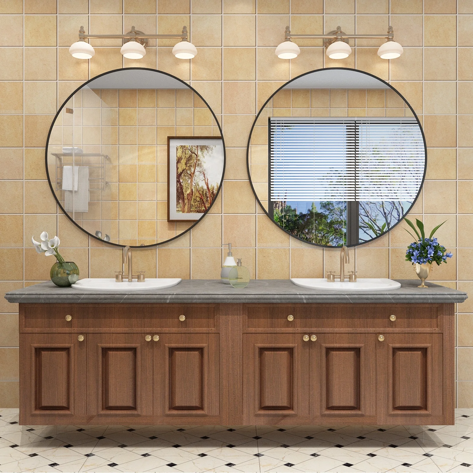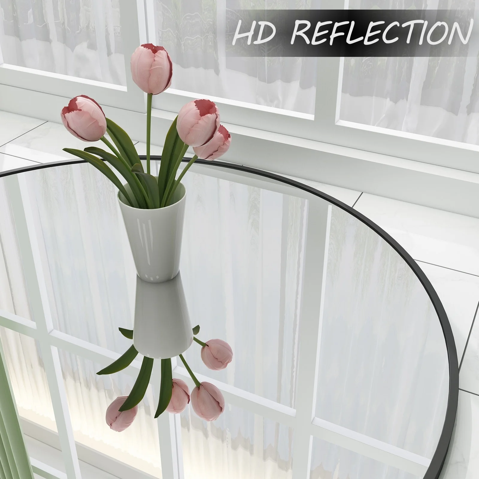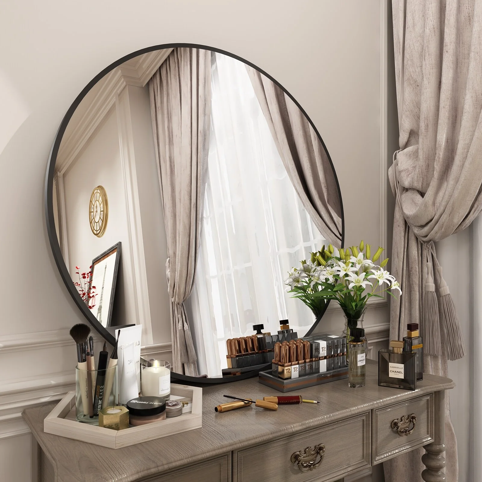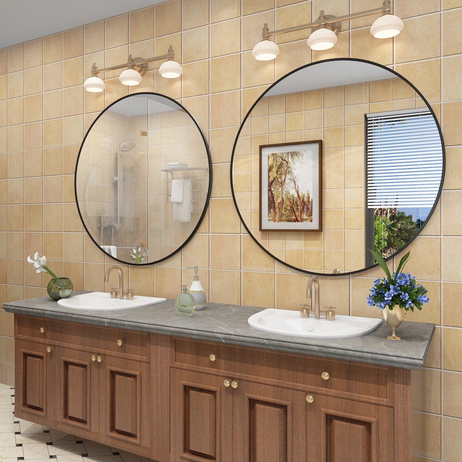 Classic round black frame mirror adopts powder coating aluminum alloy frame which makes it a brushed metal texture, waterproof and rustproof. Our Copper-free silver wall mirror is HD reflection with no distortion. Our mirror can be wall mounted horizontally or vertically with French Cleat mounting bracket. It is suitable for various decoration styles and scenarios.