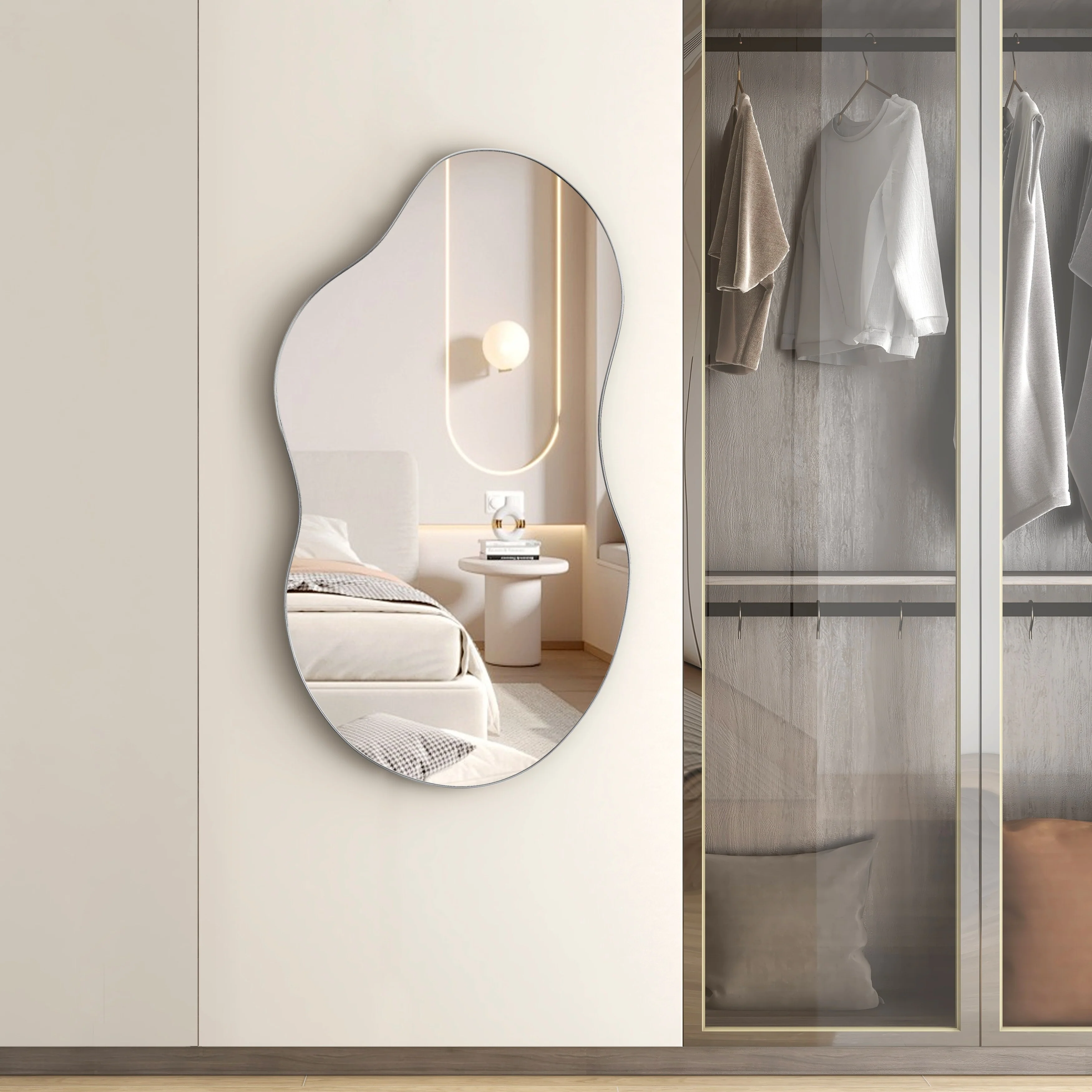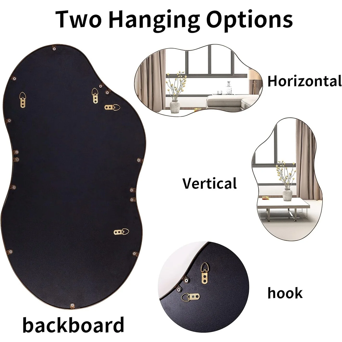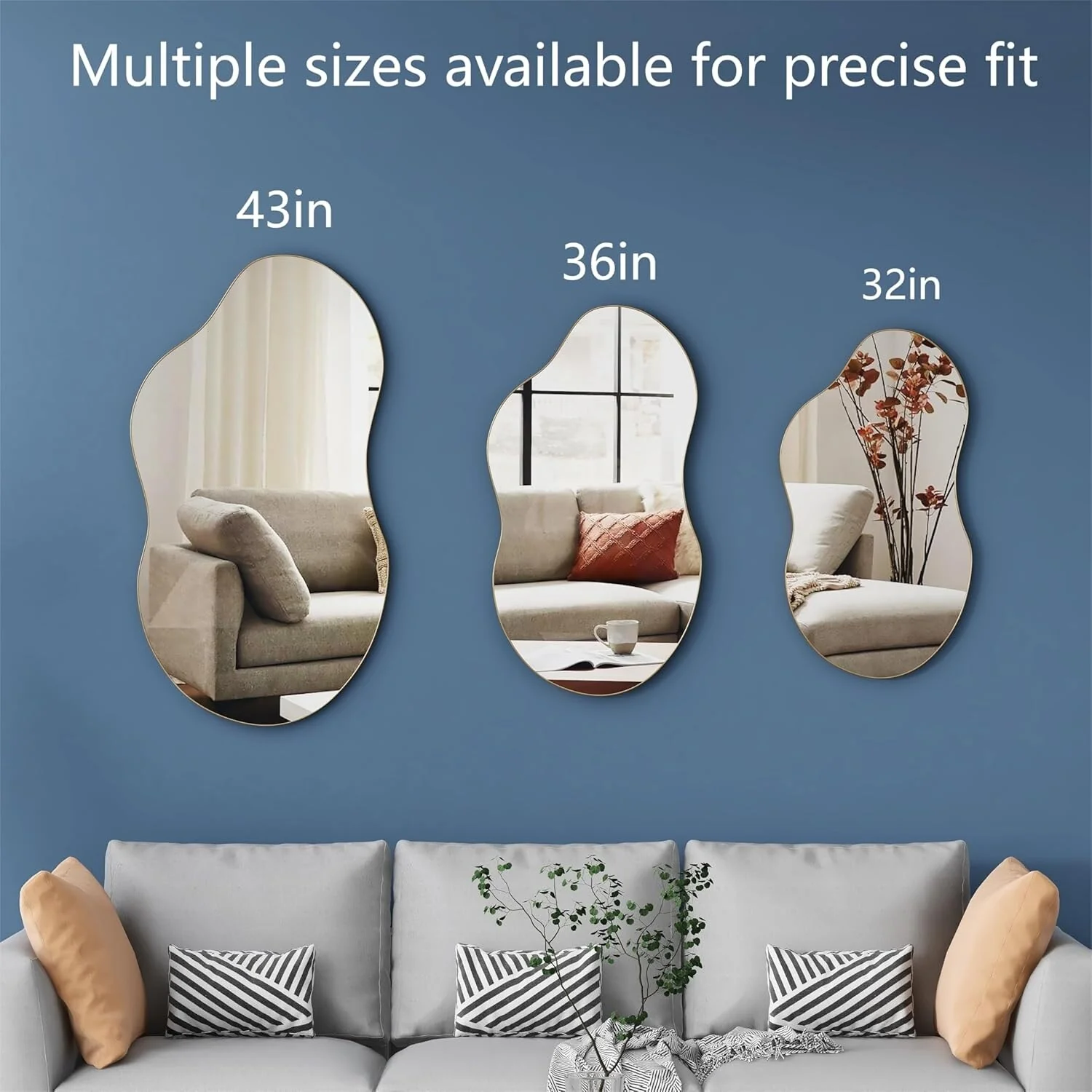 - 【Multiple Choices】: This irregular mirror is available in bronze, black and silver, and the sizes are 32 inches, 36 inches and 43 inches respectively. Perfect choice to meet your space needs.