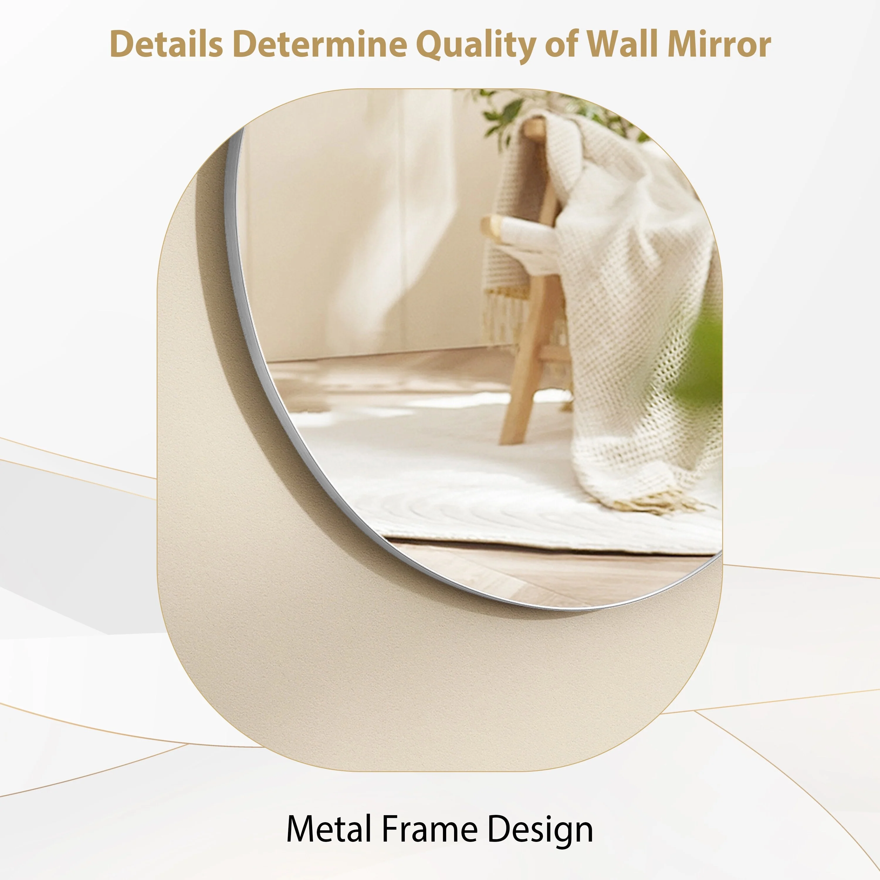 - 【Exquisite Frame】:Our wall accent mirror is made of sturdy solid stainless steel wood grain frame,the surface of the frame is smooth,colorfast,no odor, safe and environmentally friendly,the corrosion-resistant frame material gives traditional wall mirrors a more refined shape and longer life.