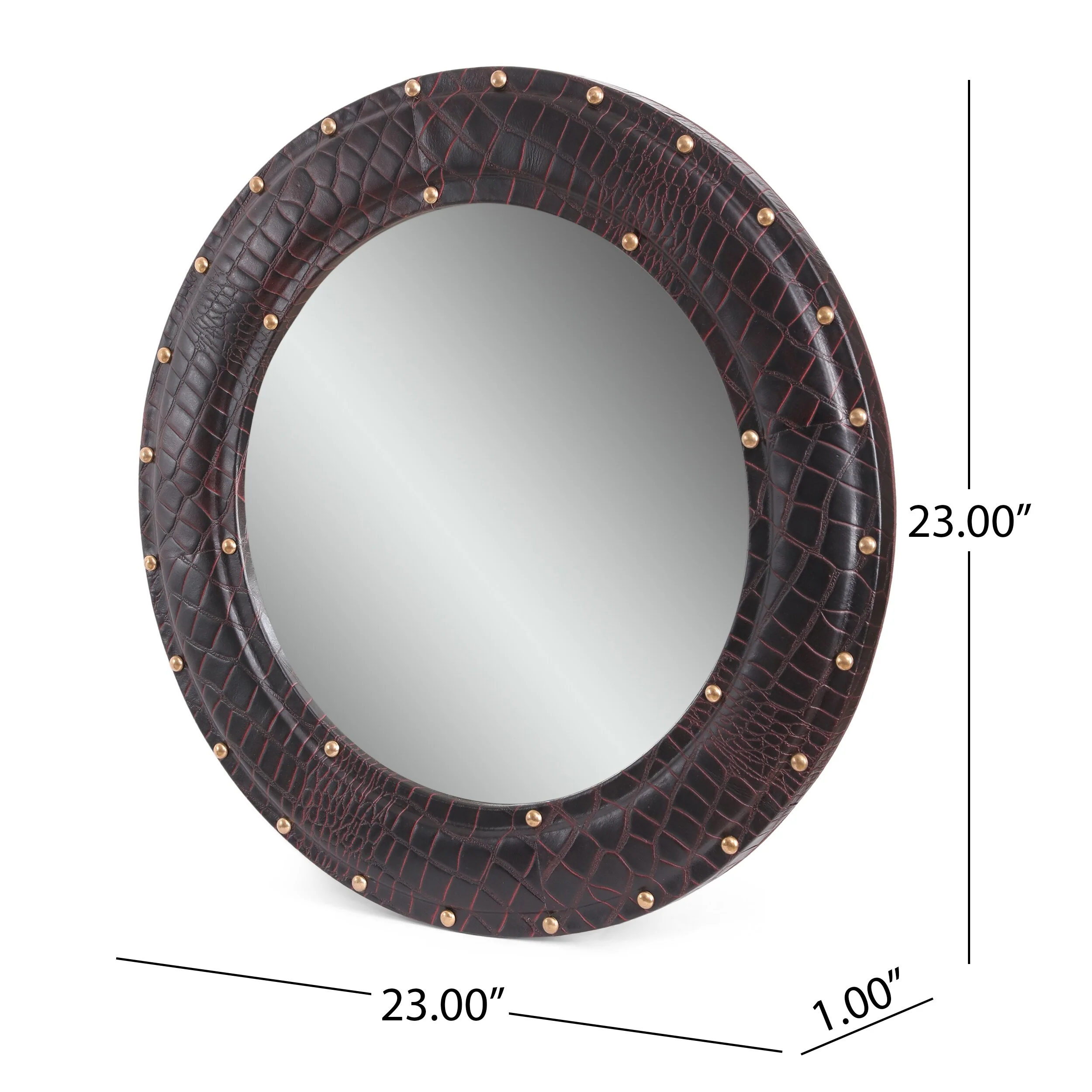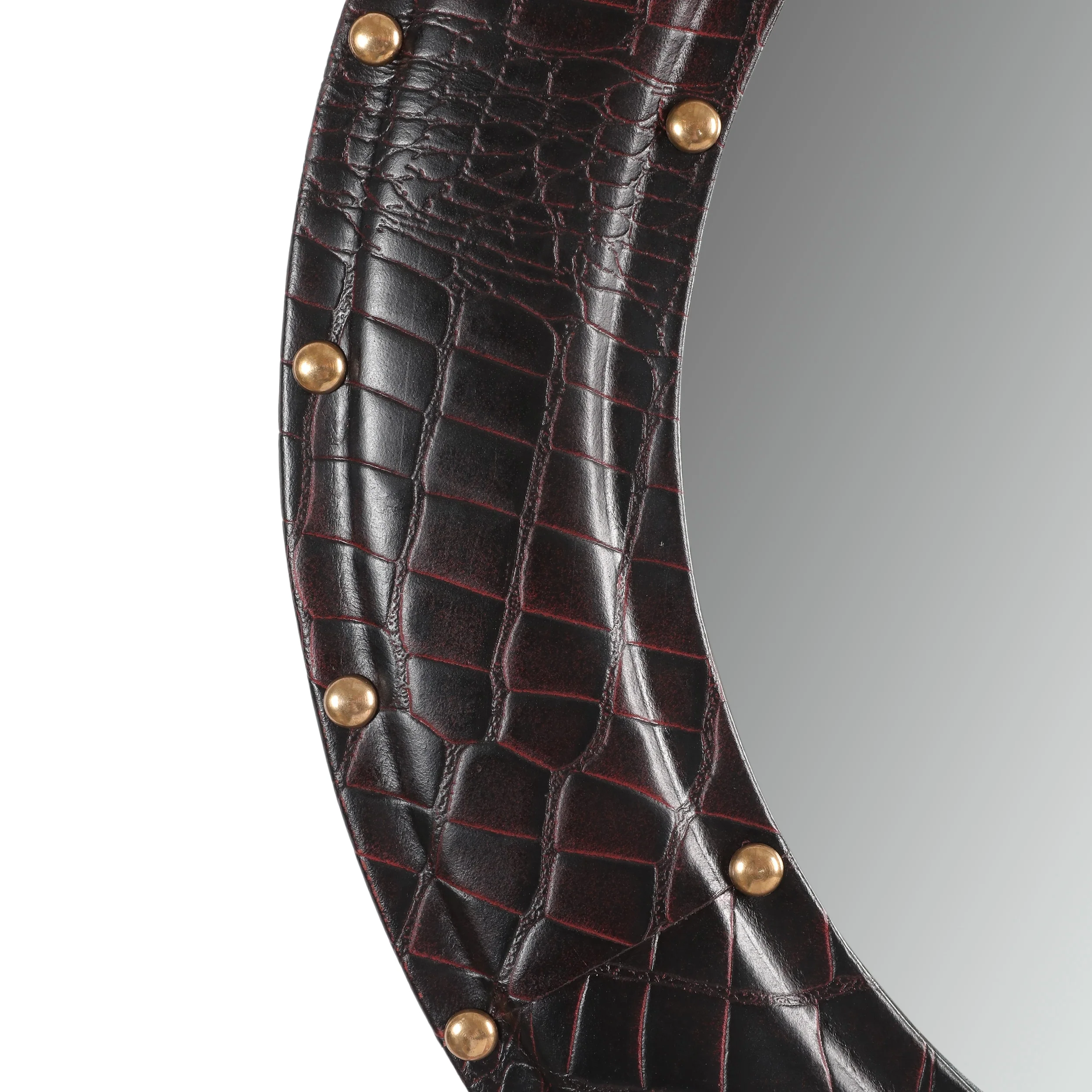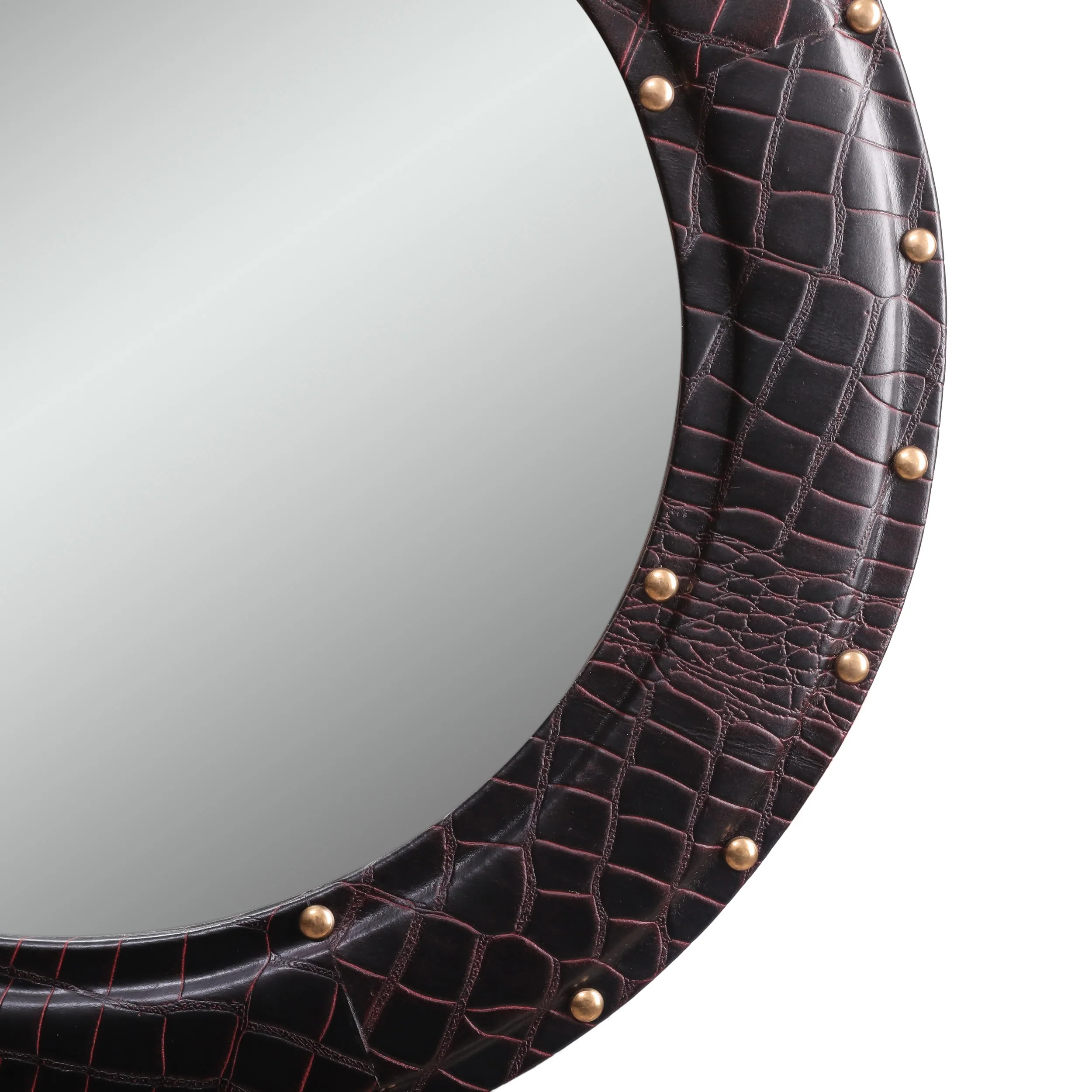LEATHER FRAME: The frame of this mirror is crafted with refined croco leather, offering a textured finish that also offers impressive durability. Finished with a brass-studded trim, this frame offers a wonderfully refined look to any home.