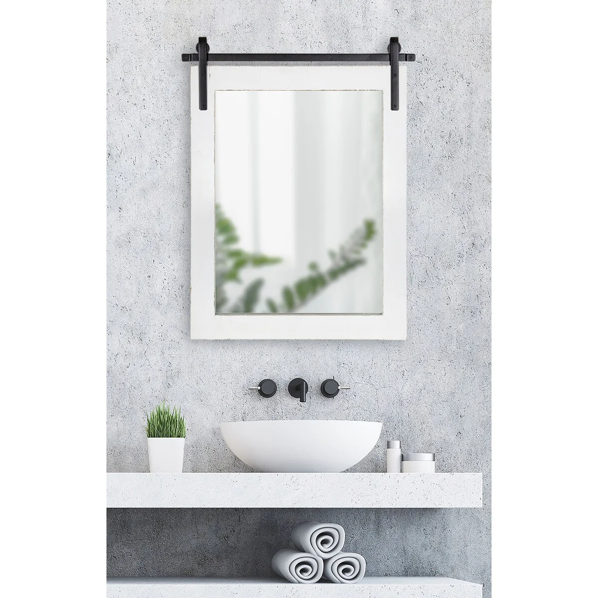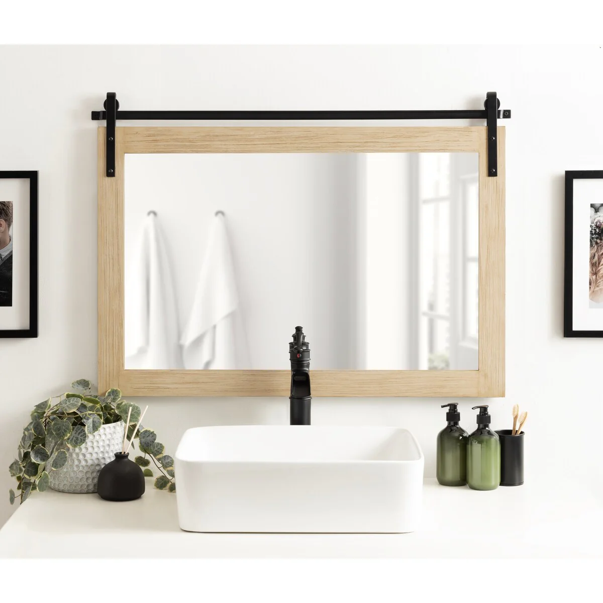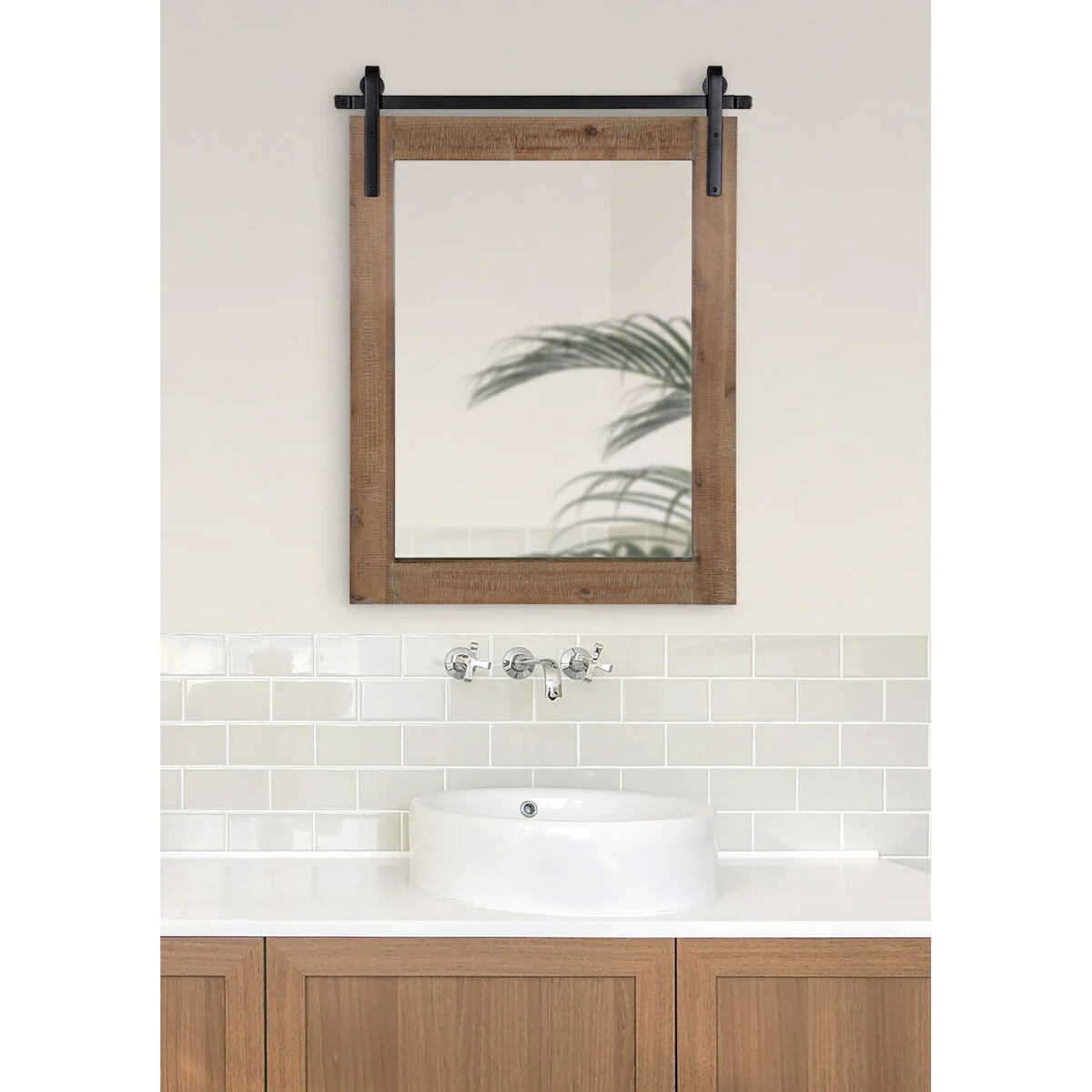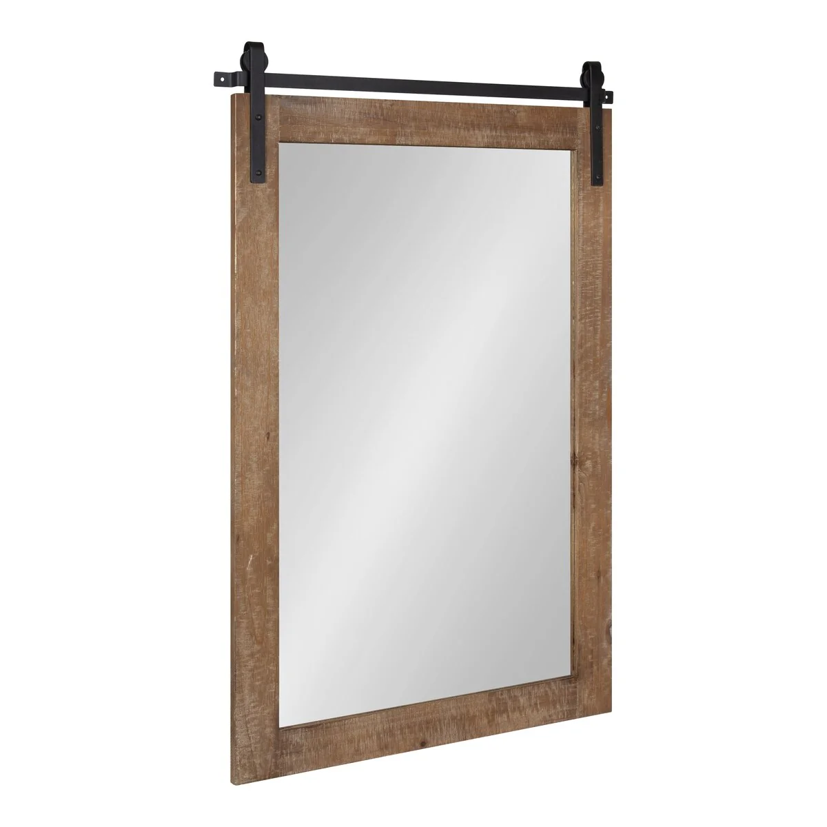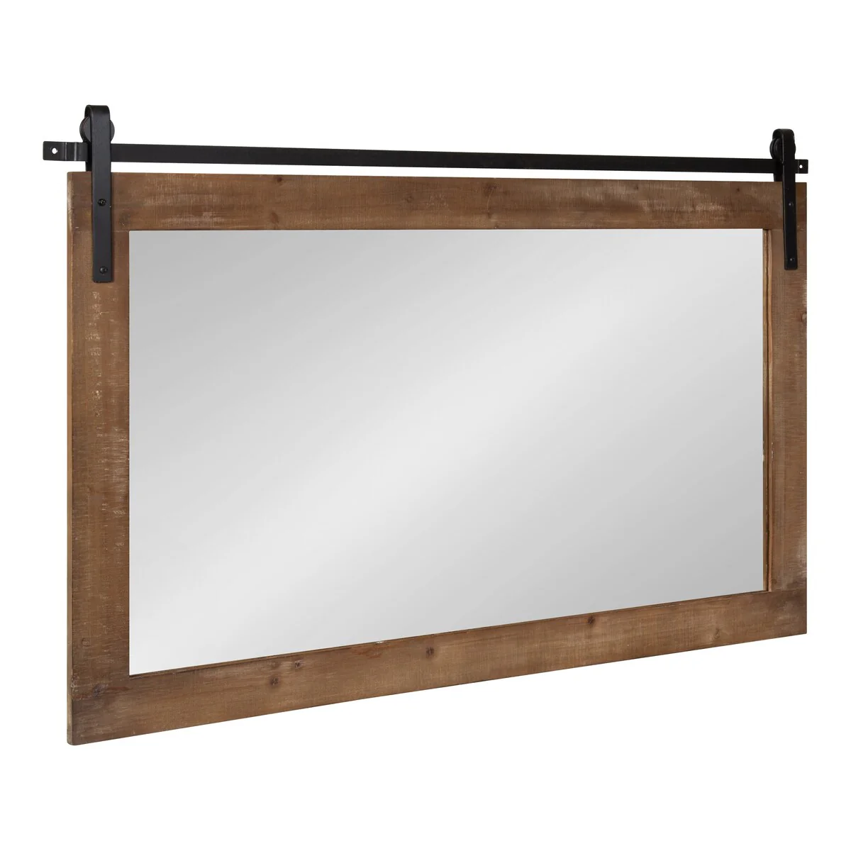 Add rustic charm to your home with the Kate and Laurel Cates Rustic Rectangular Wall Mirror. The barndoor-style mirror features a distressed wooden frame and raw iron metal brackets for an old-school, earthy feel. With a screw-in installation technique, this mirror is easy to mount and adds elegant, neutral appeal to any room.