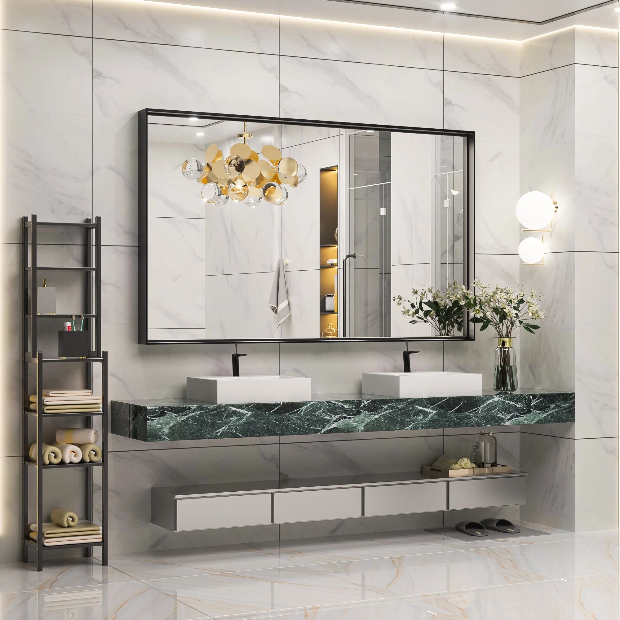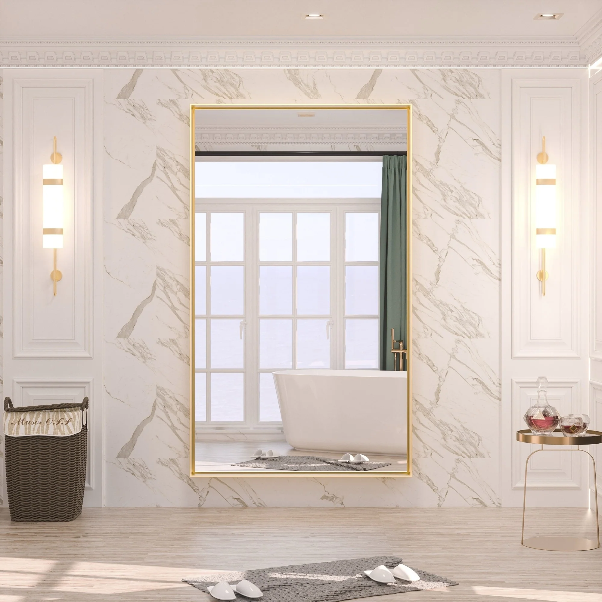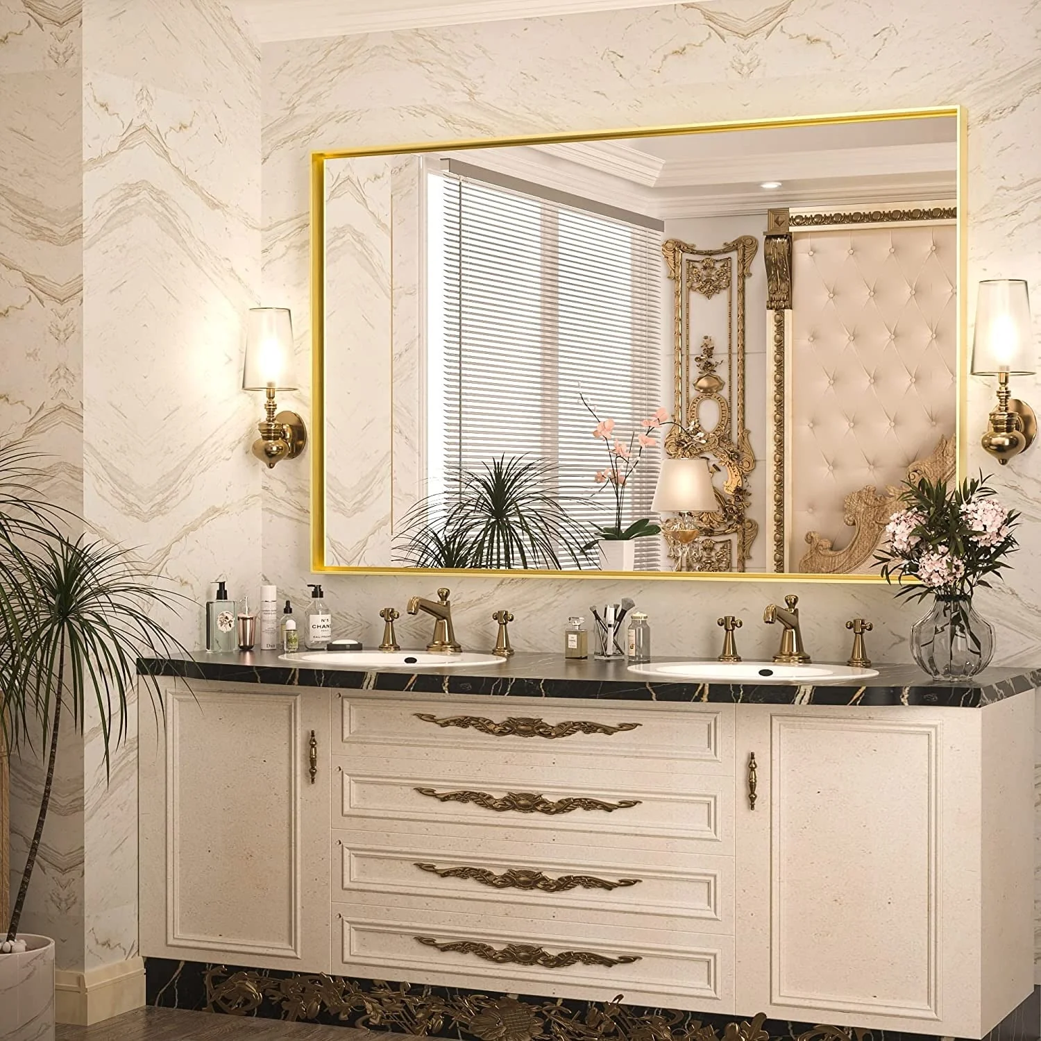 ▶Our brass gold bathroom mirror is made of HD 5mm glass, bright and anti-distortion, which provides perfect reflection. Durable Aluminum alloy frame and PVC shatterproof film would strengthen the floating glass for safety, waterproof and anti-corrosion in wet bathroom environments.