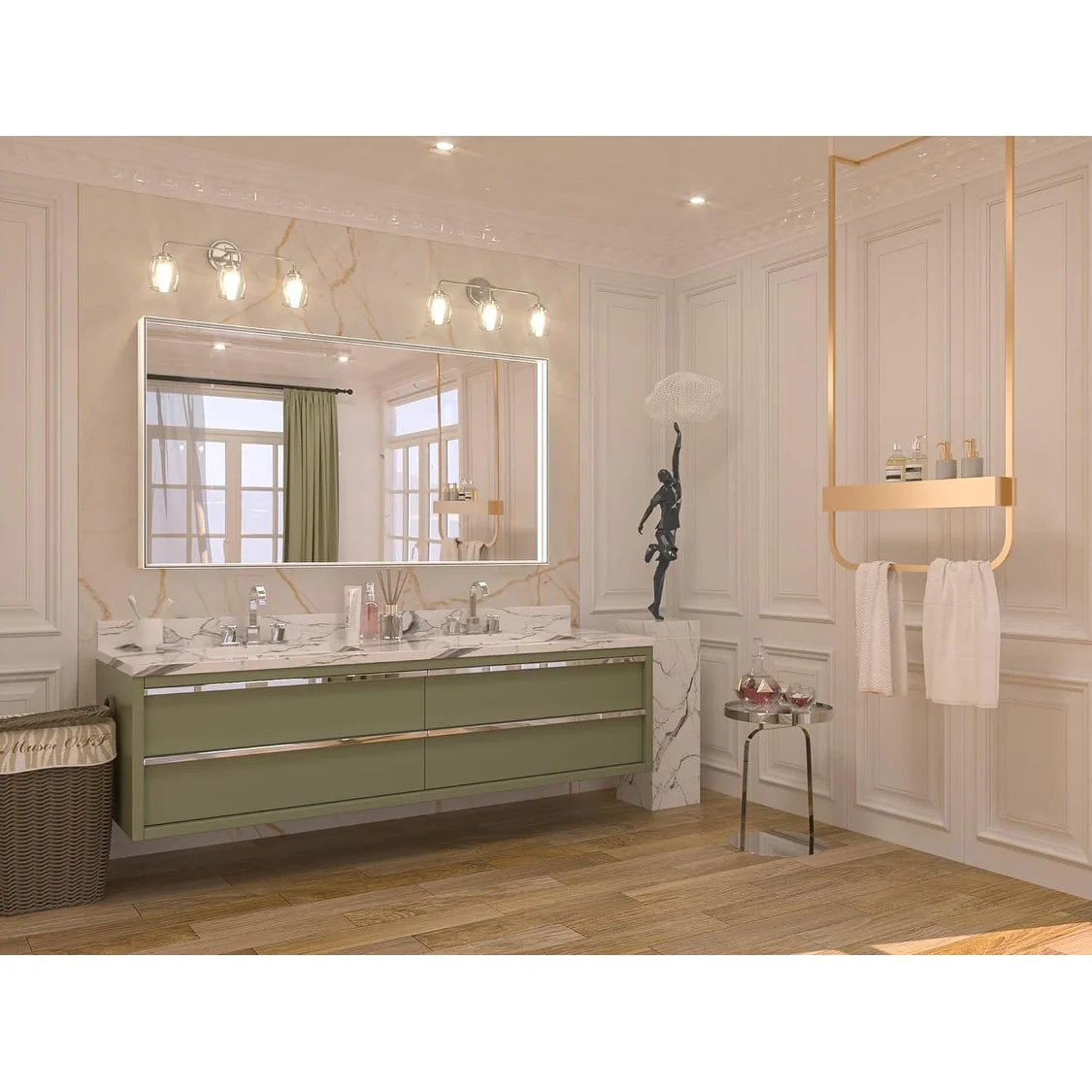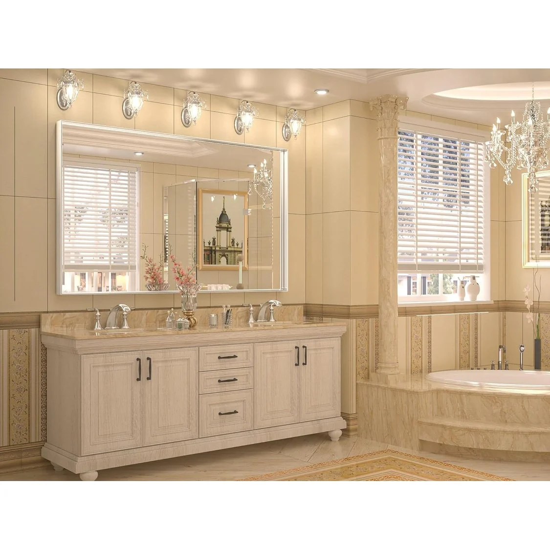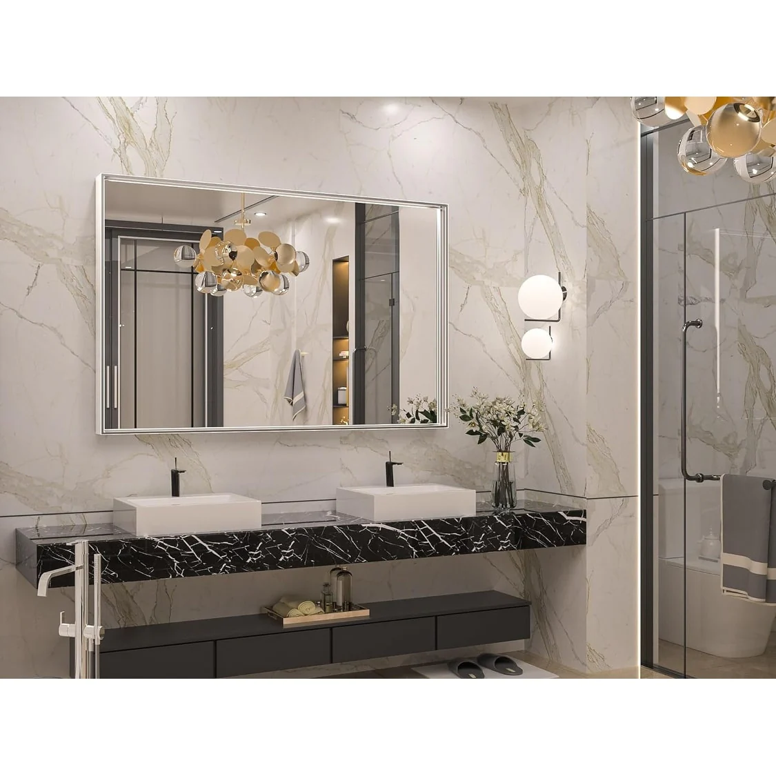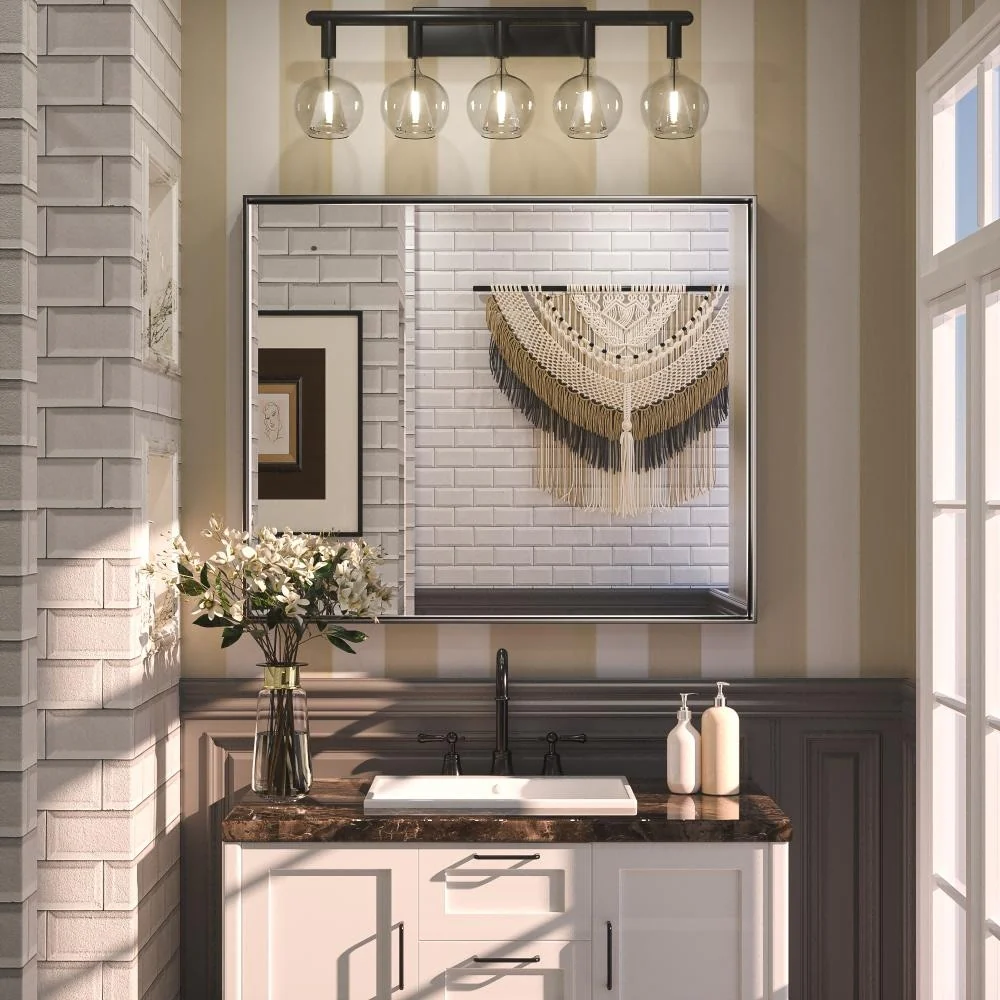▶Our brass gold bathroom mirror is made of HD 5mm glass, bright and anti-distortion, which provides perfect reflection. Durable Aluminum alloy frame and PVC shatterproof film would strengthen the floating glass for safety, waterproof and anti-corrosion in wet bathroom environments.
