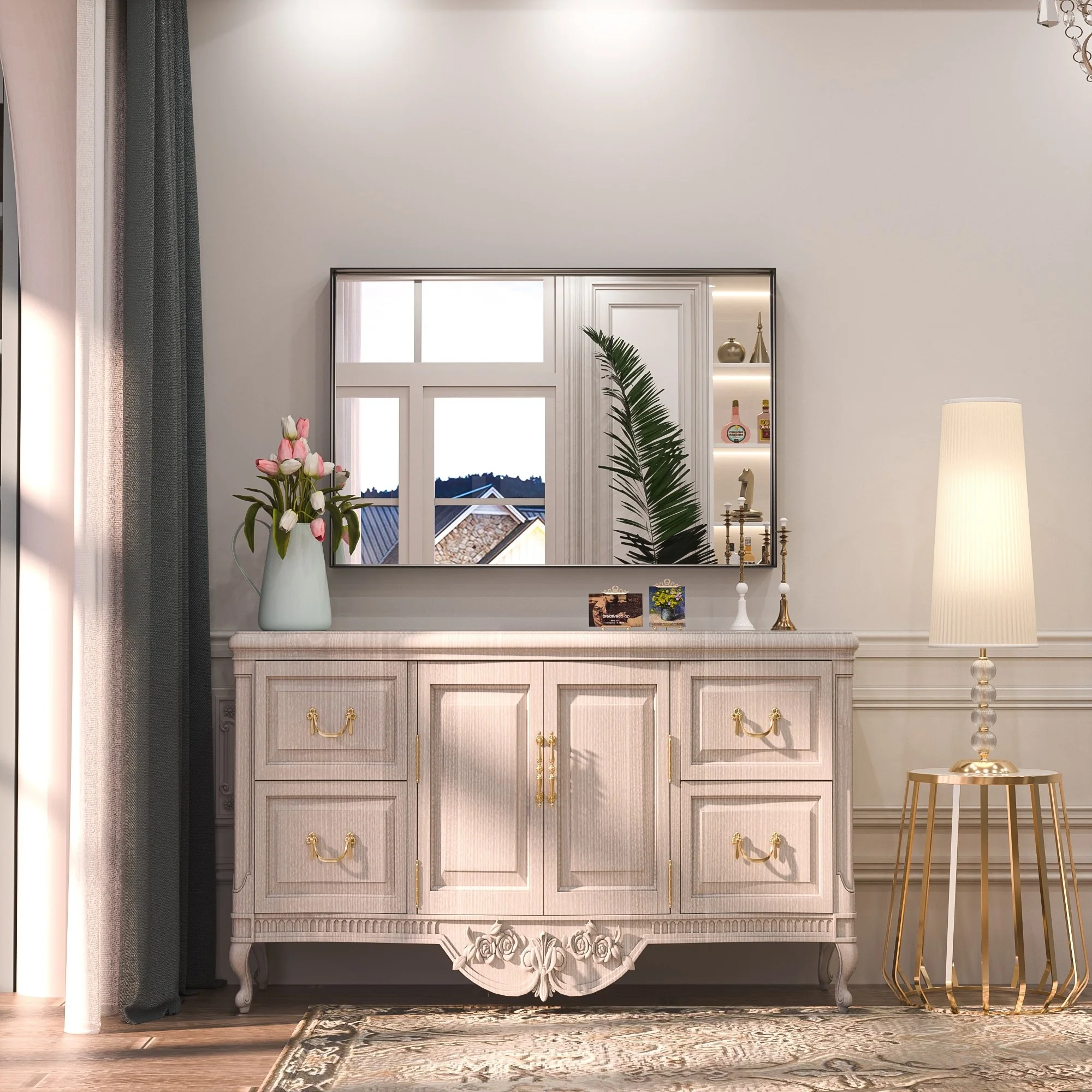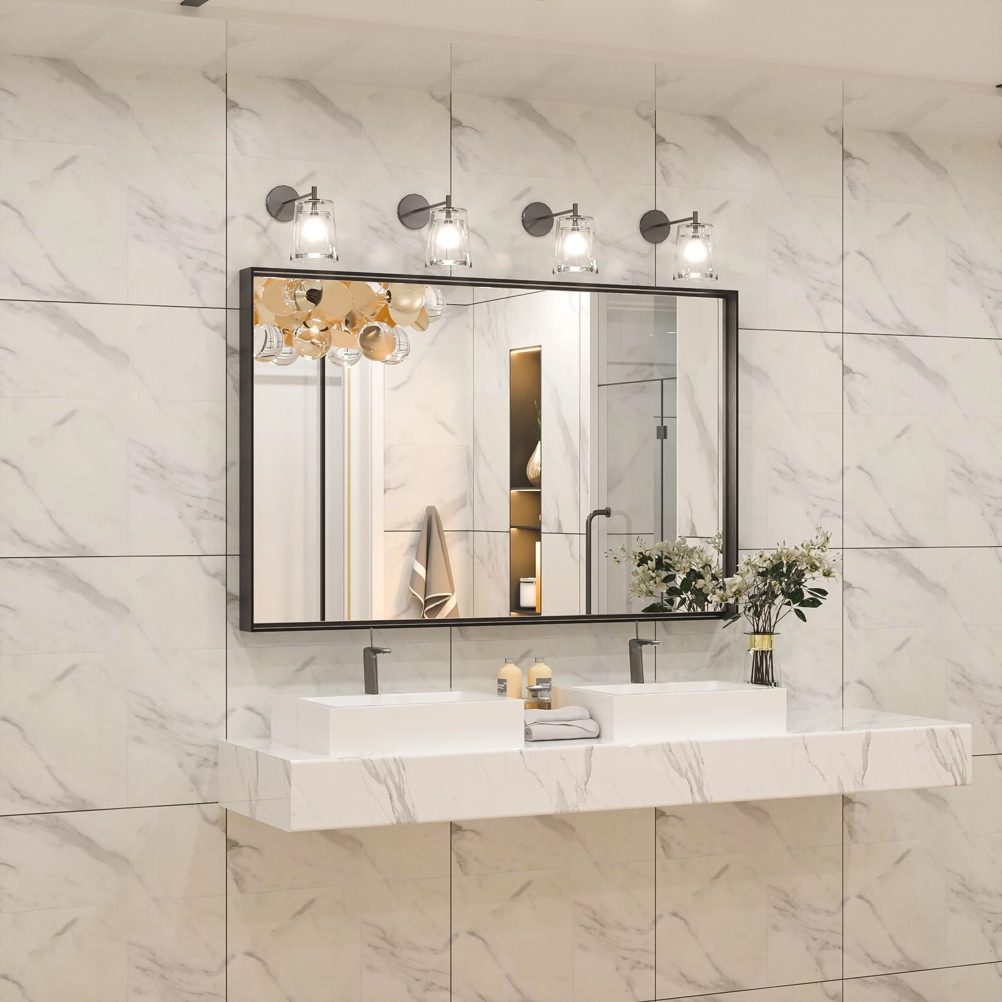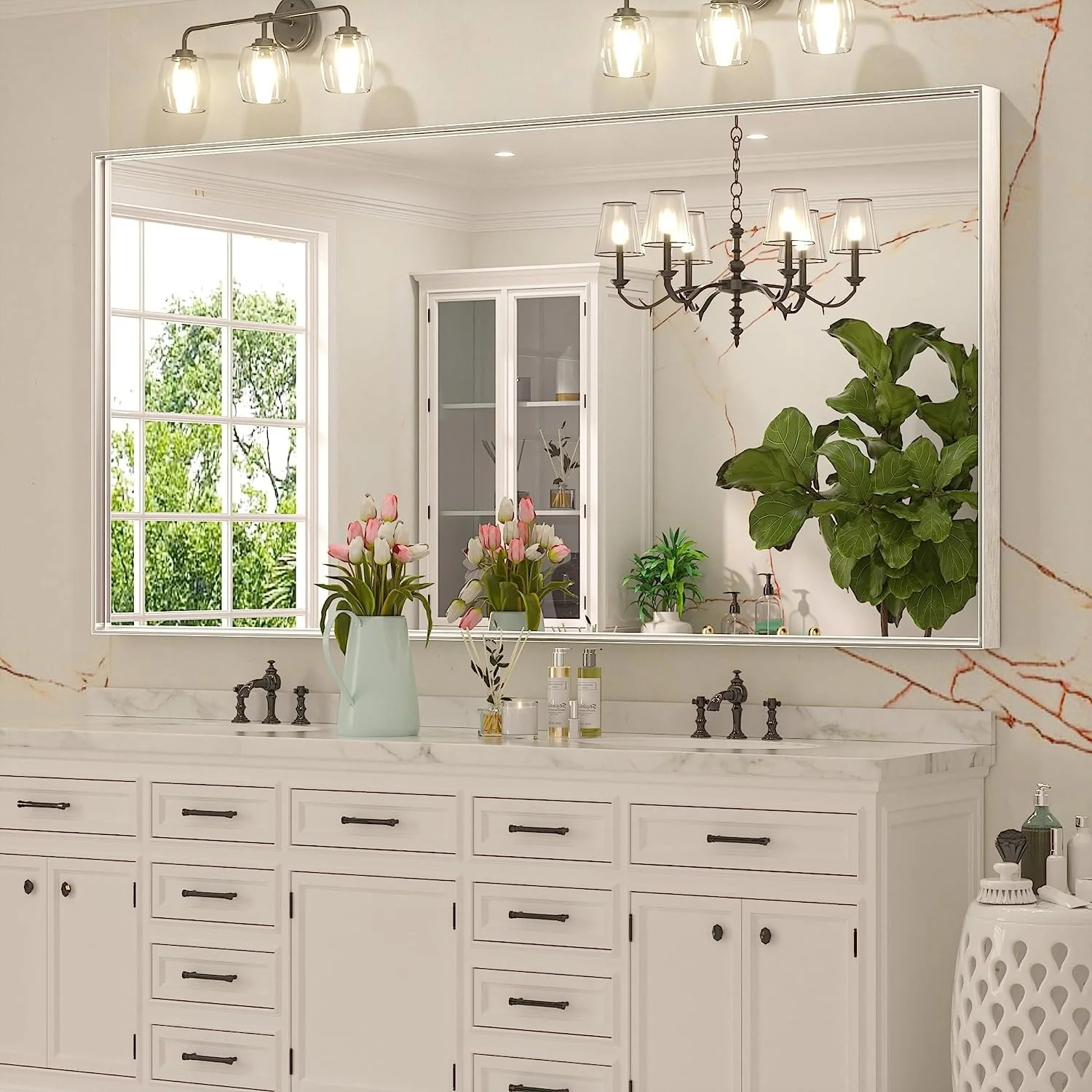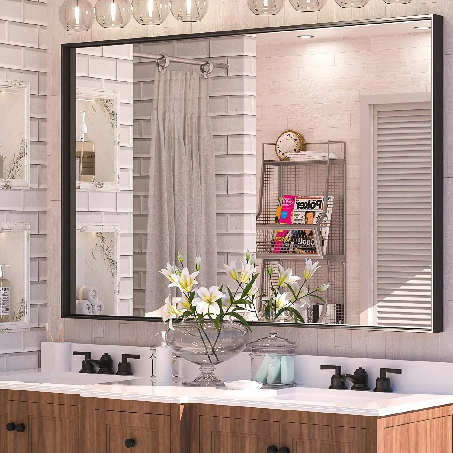 ▶The brushed metal mirror designed with 4 built-in slots on the back for hanging horizontally or vertically. Super easy to install with one French cleat bracket. Hardware Included. We have designed a sturdy 4-layer packaging for mirrors, so you don't have to worry about receiving a broken mirror.