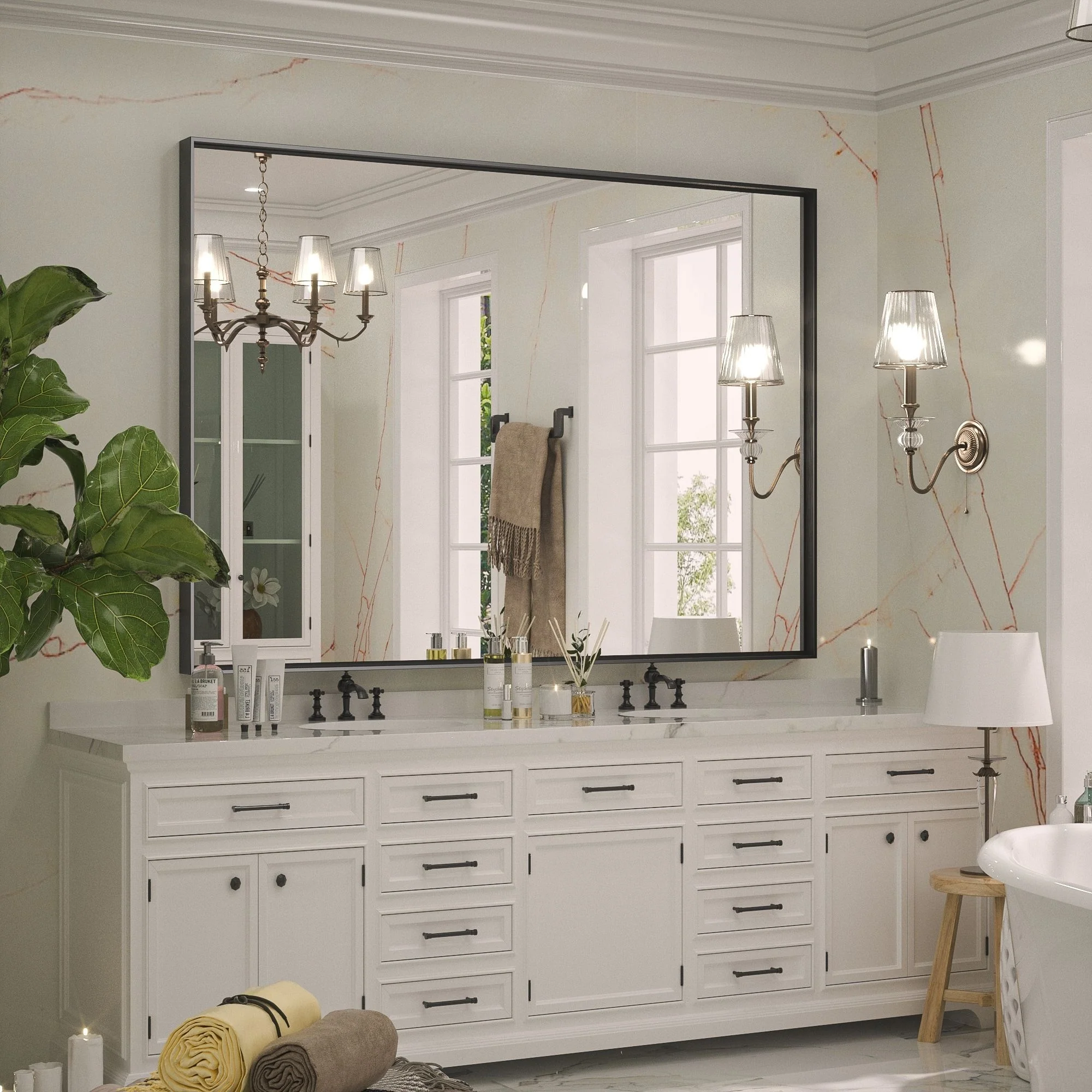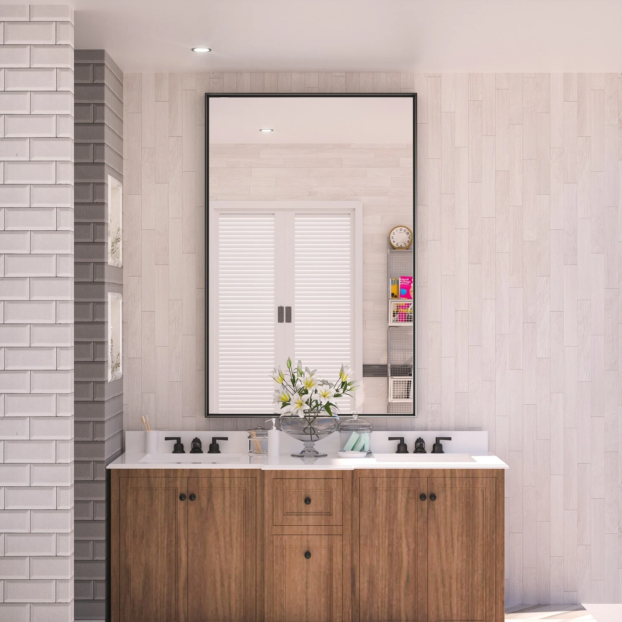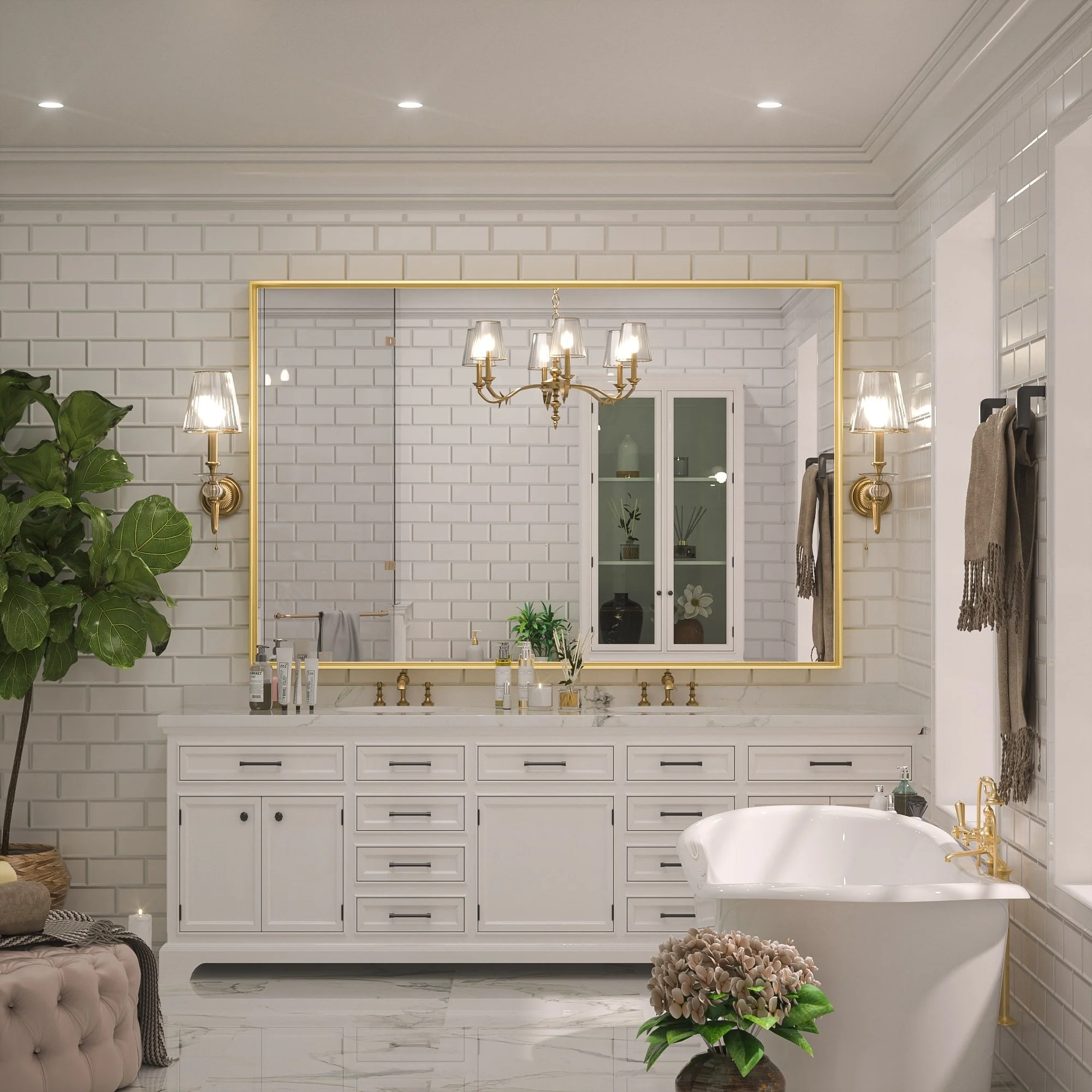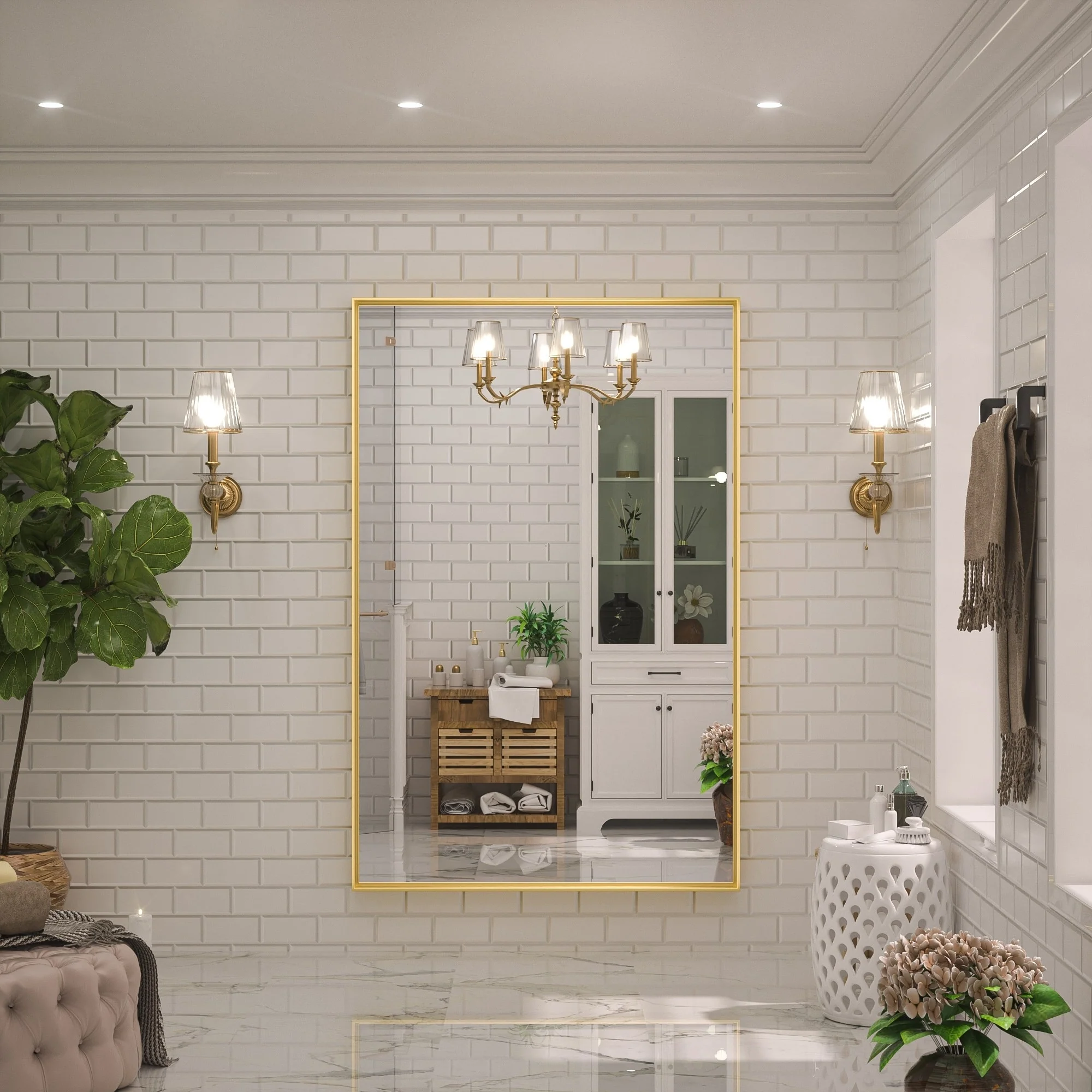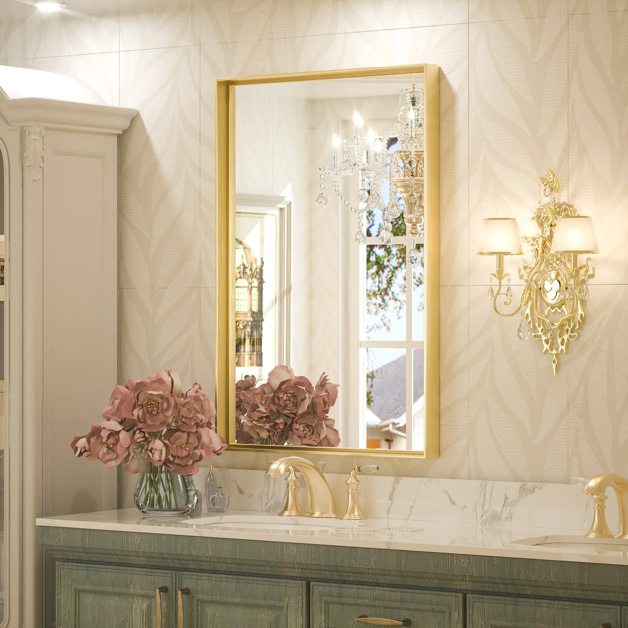 ▶The metal mirror has the most elegant brushed brass gold finish, coming with a 1.57' depth Aluminum alloy frame. With a classic square corner design and deep set design, the gold vanity mirror allows for creativity and functionality in bathroom, bedroom, entryway and anywhere else. Let your living space be an expression of your personal style, not limited to modern or contemporary, farmhouse or industrial..