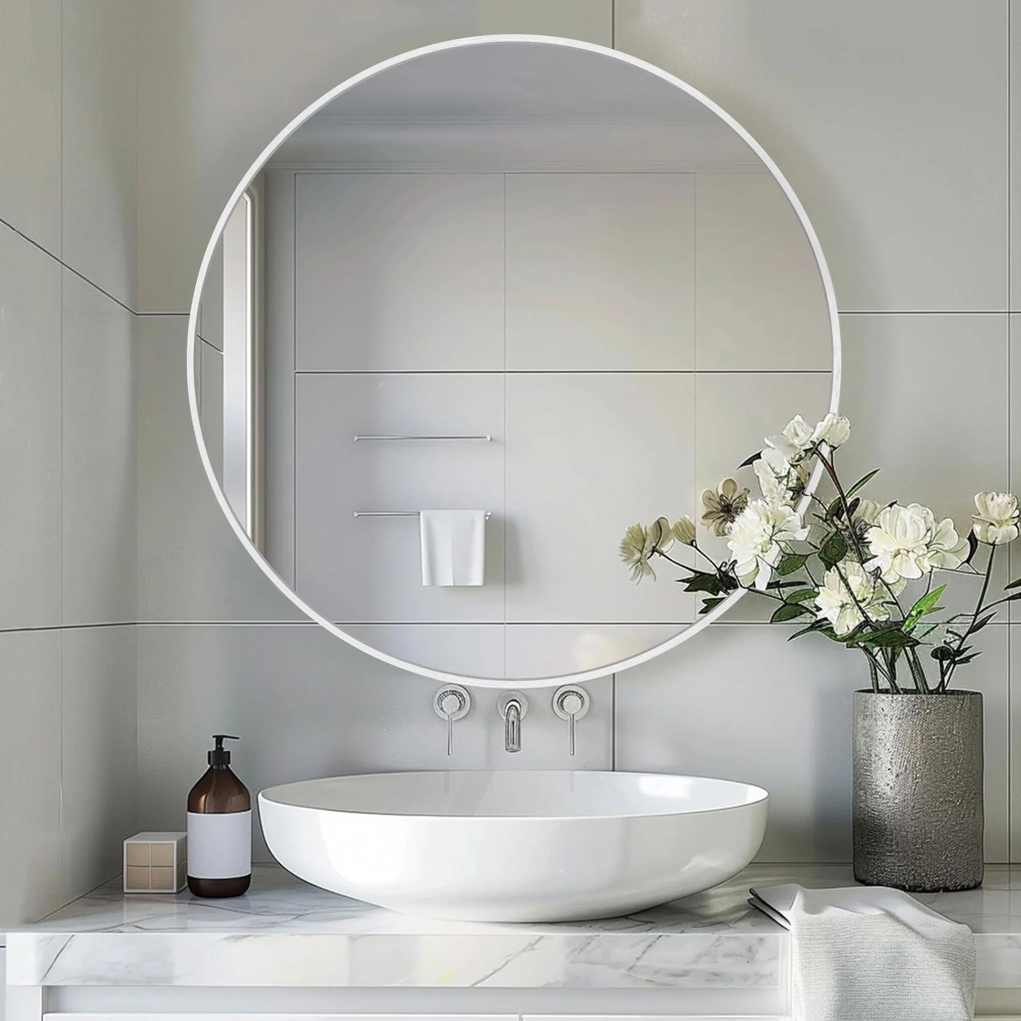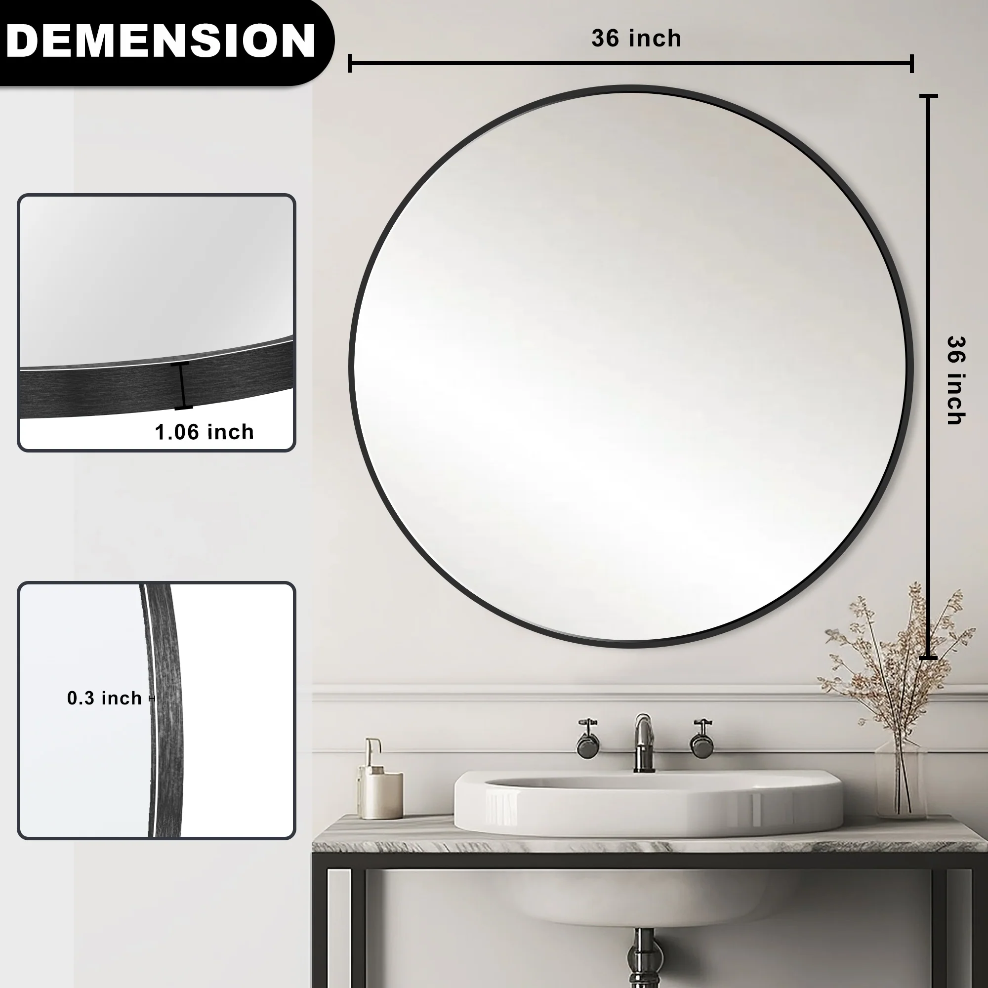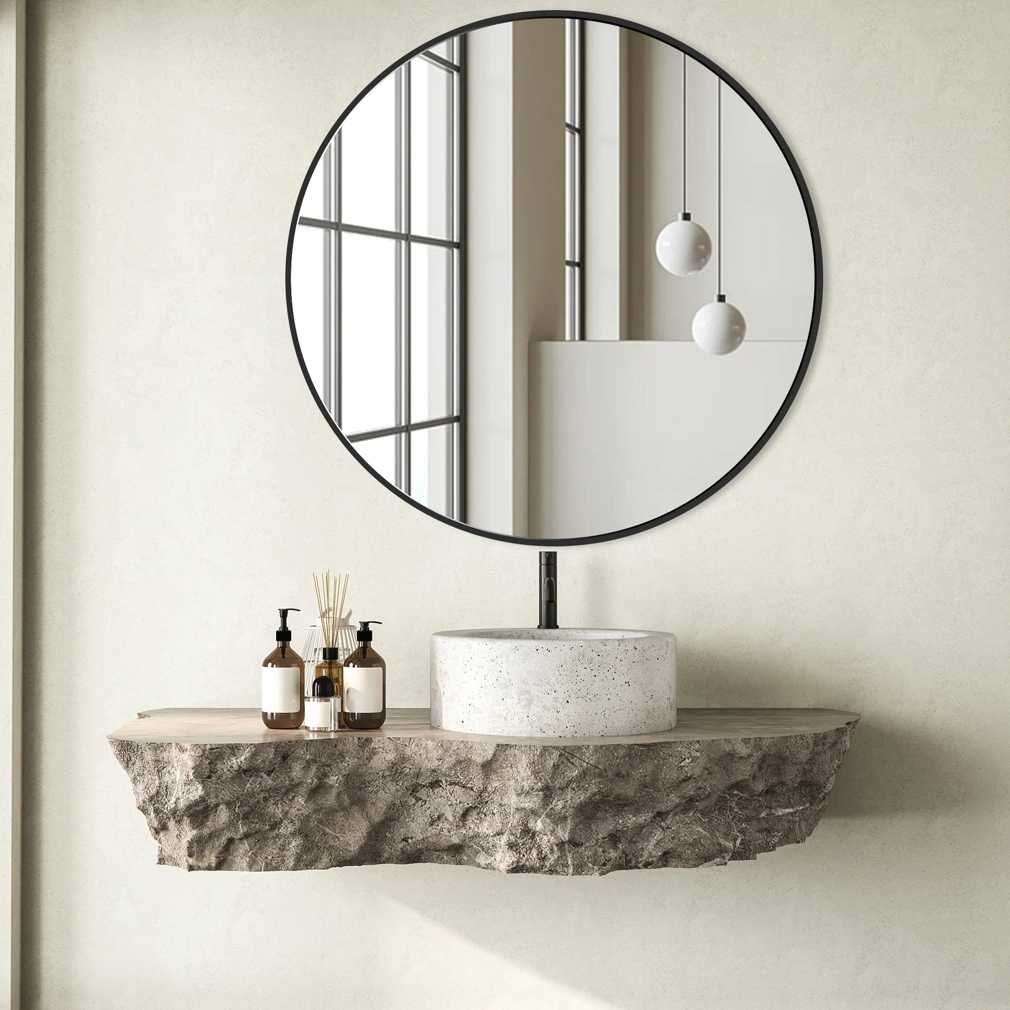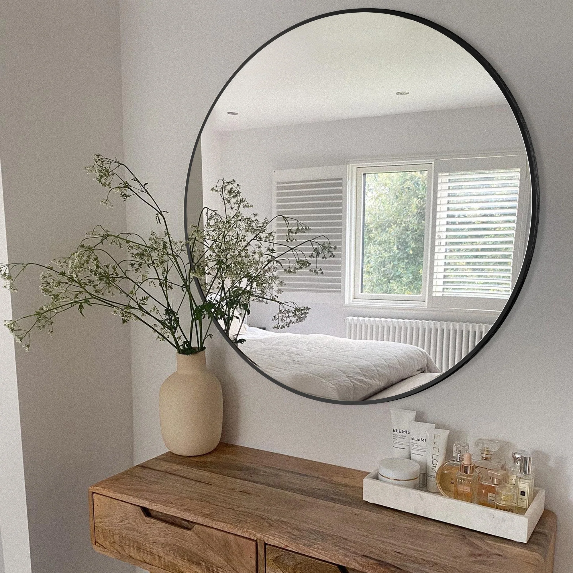If you love the round mirror trend, and are looking for some inspiration - this is the best for you. The soft shape allows the eye to move effortlessly around the room and makes a statement all at the same time. Beautifully handcrafted, our round mirror for wall hanging is handcrafted with care and attention to detail and design. The round shape and the super-thin frame create a sense of solemn order, extending visually space, depth, and light. A round mirror is placed in the center, and the totals in the surrounding area help to accentuate the three dimensionality of the composition. The American Style Minimalist Bathroom Mirror reflects mottled light and shadow when illuminated, creating a dramatic three dimensional appearance. It adds a charming accent to your walls while serving as functional wall art, completing your modern, rustic, or farmhouse room decor.